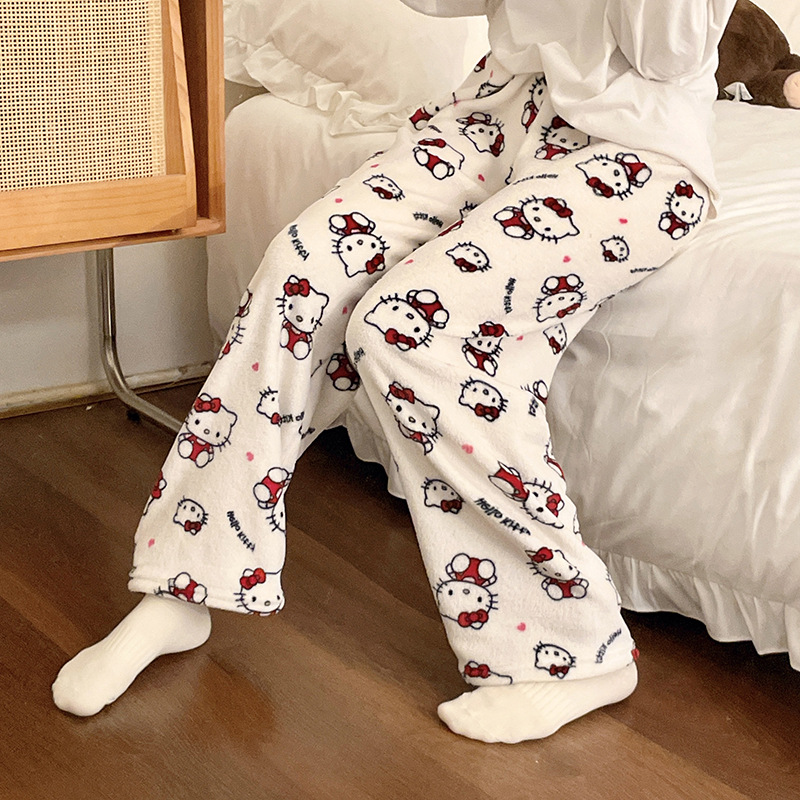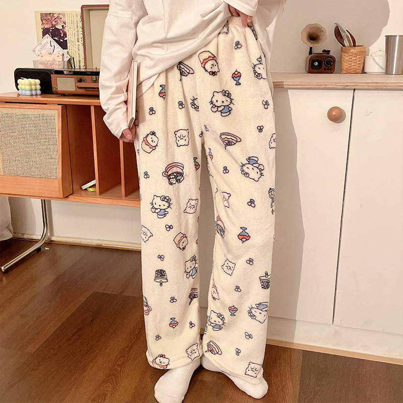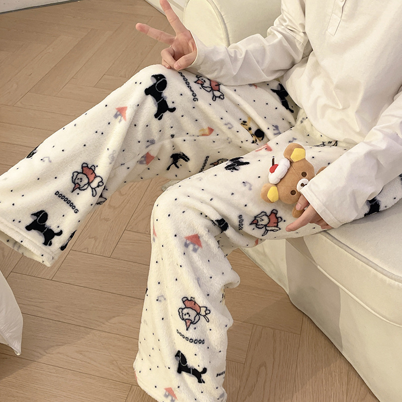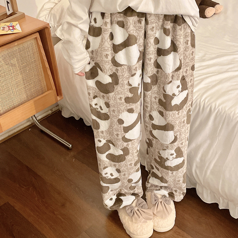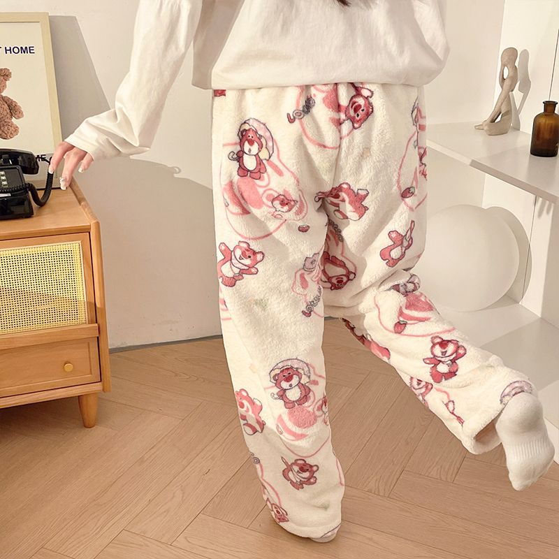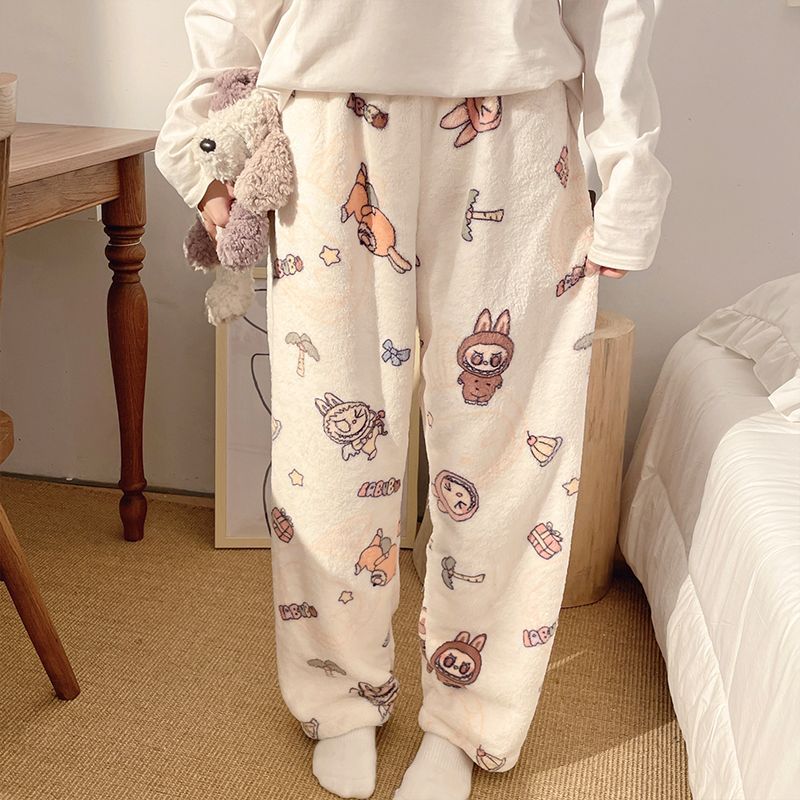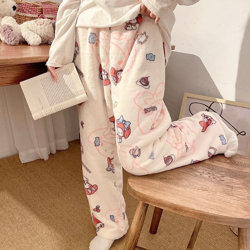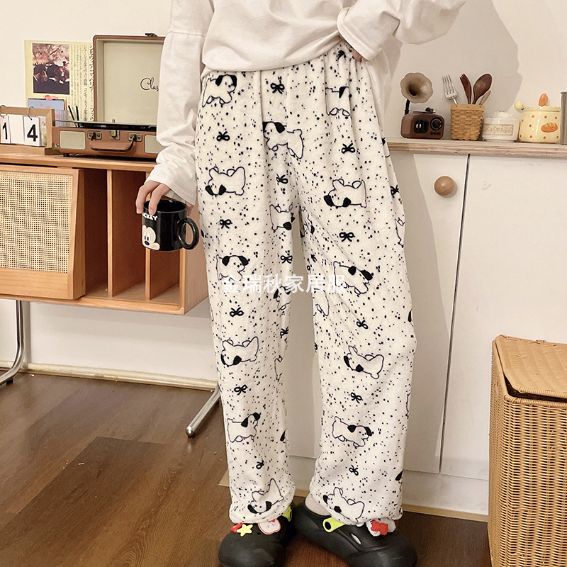 Симпатичные Мультяшные Crayon Shinchan Женские брюки Теплая коралловая фланелевая повседневная домашняя брюки