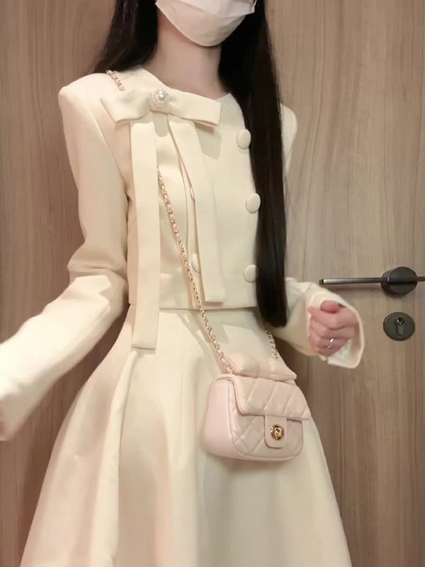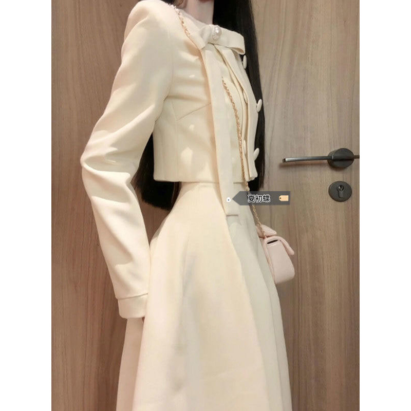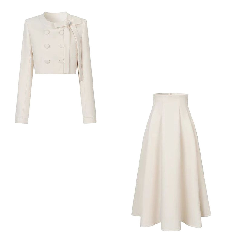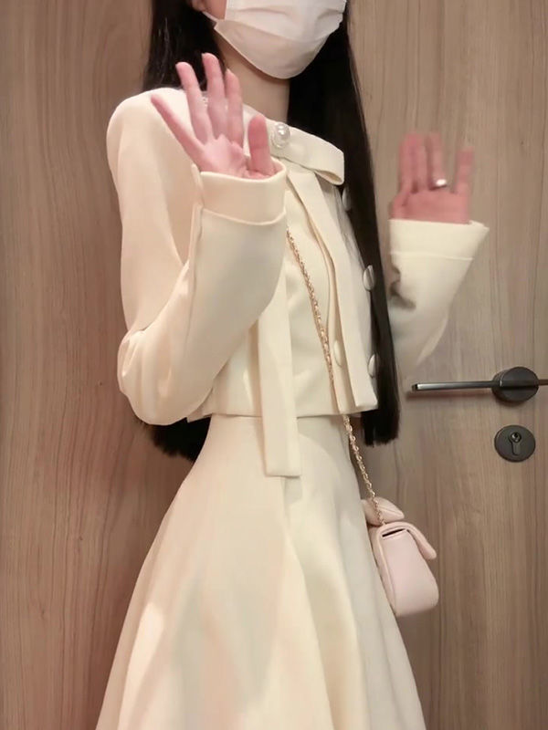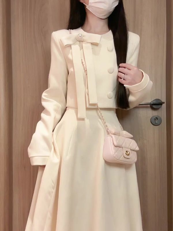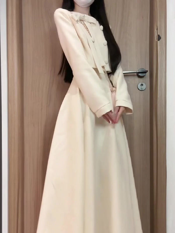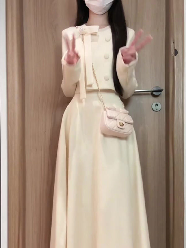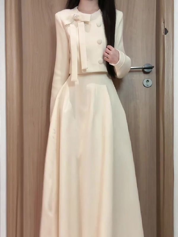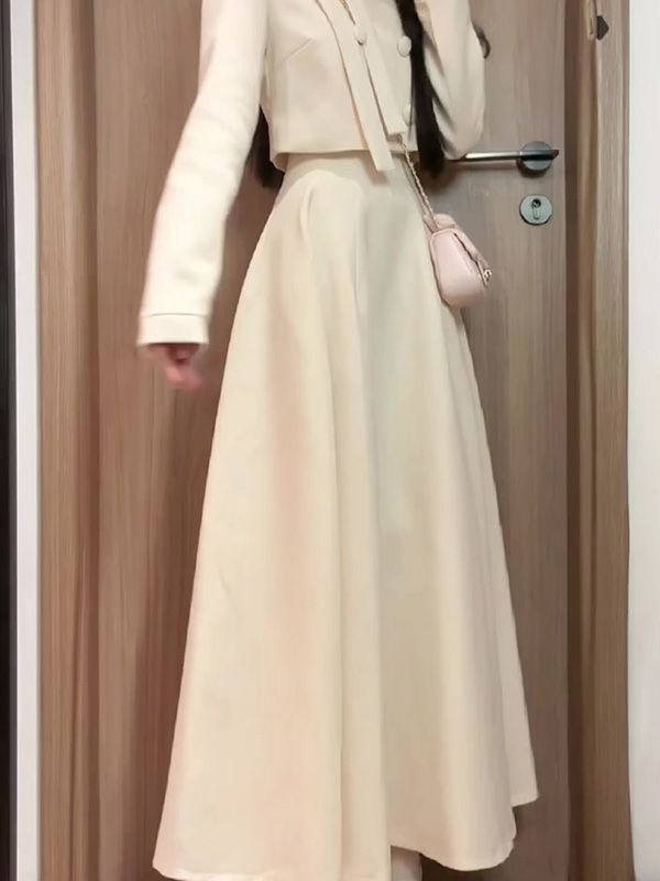 Длинные рукава Верхняя одежда + комплект из двух предметов с длинной юбкой; Куртка с длинными рукавами цельная [высококачественная ткань]; Длинная юбка половинной длины, цельная [высококачественная ткань]