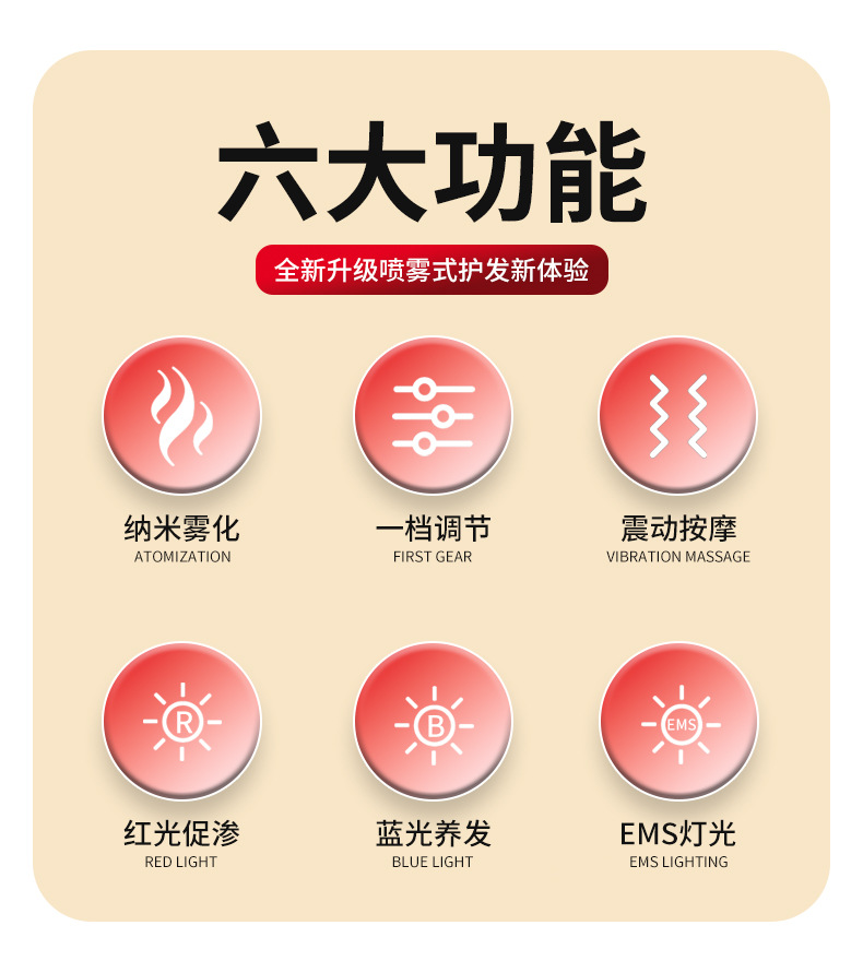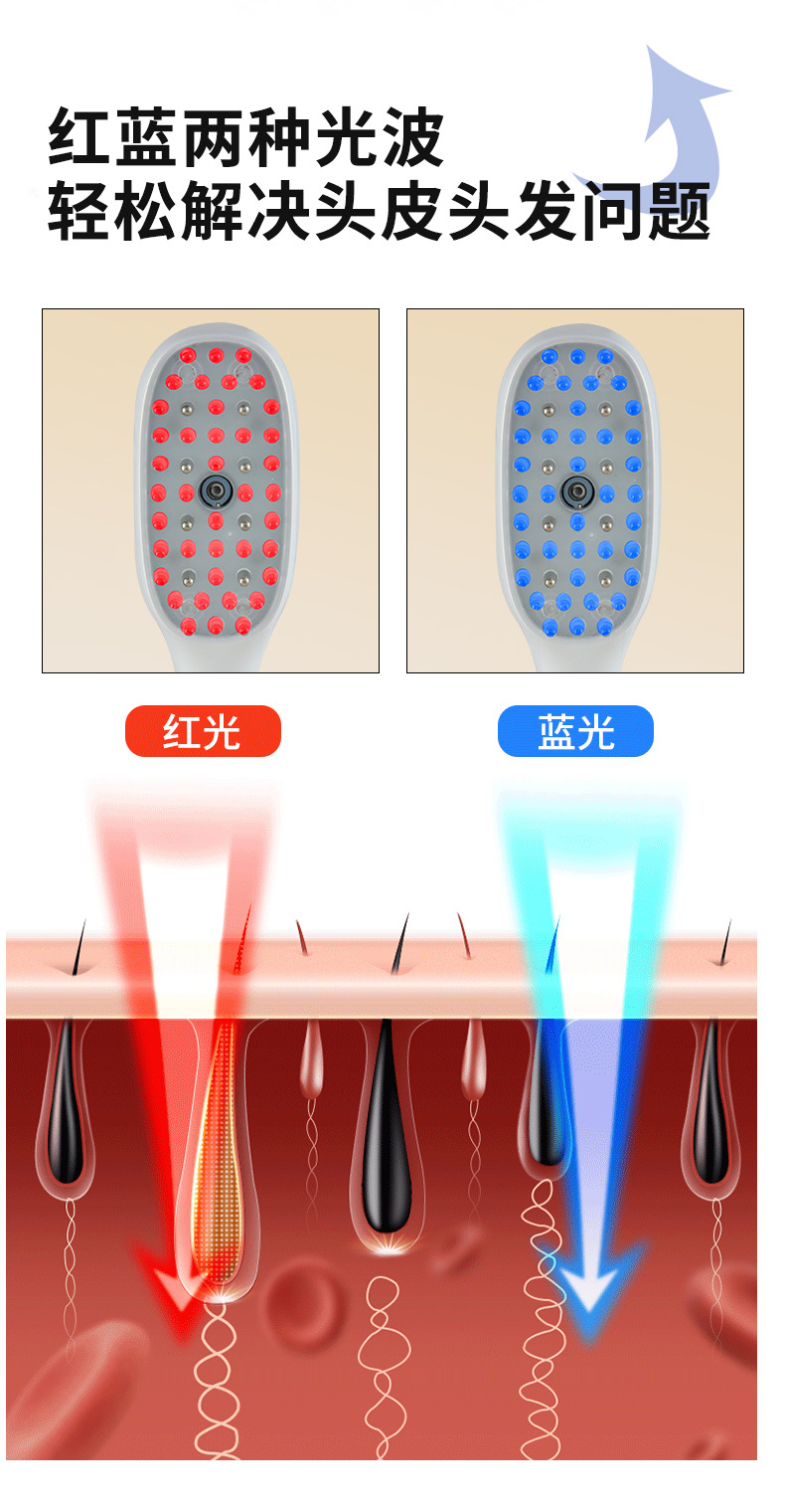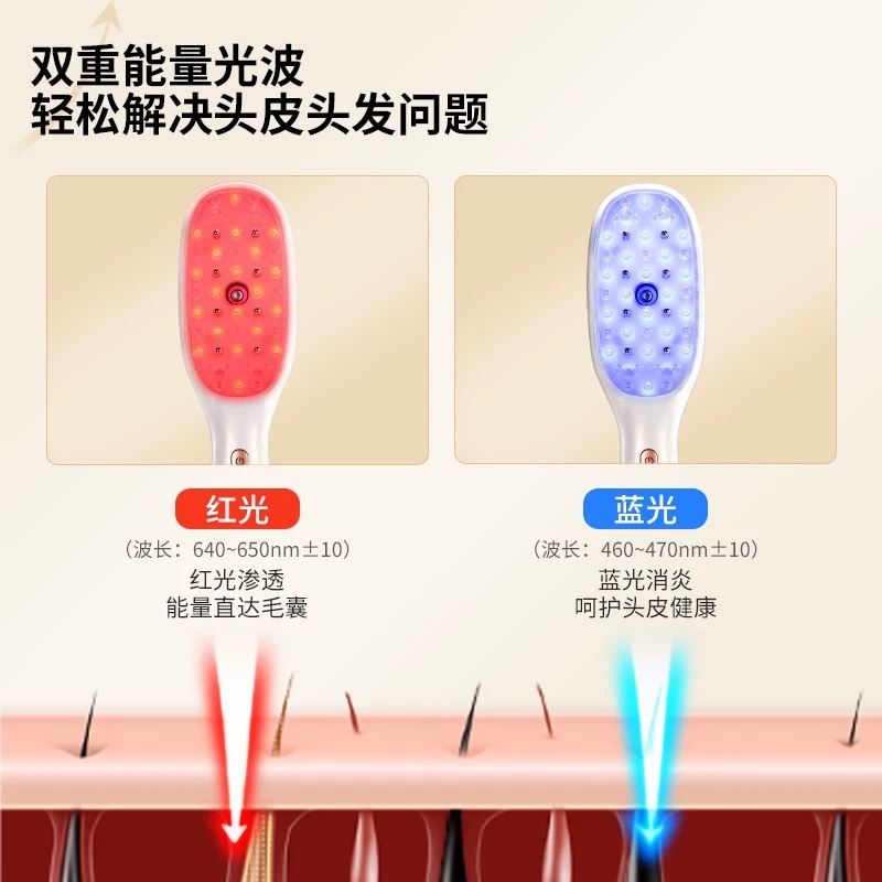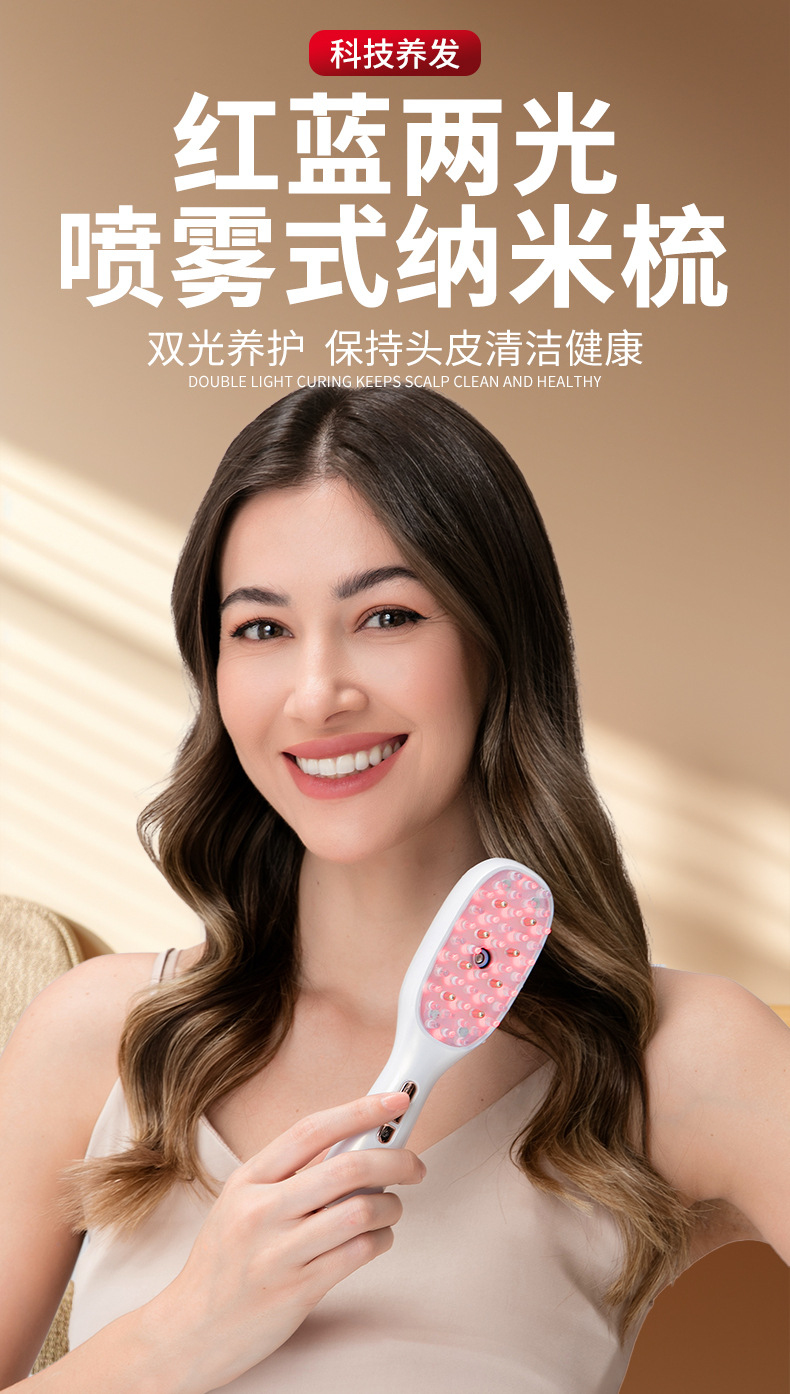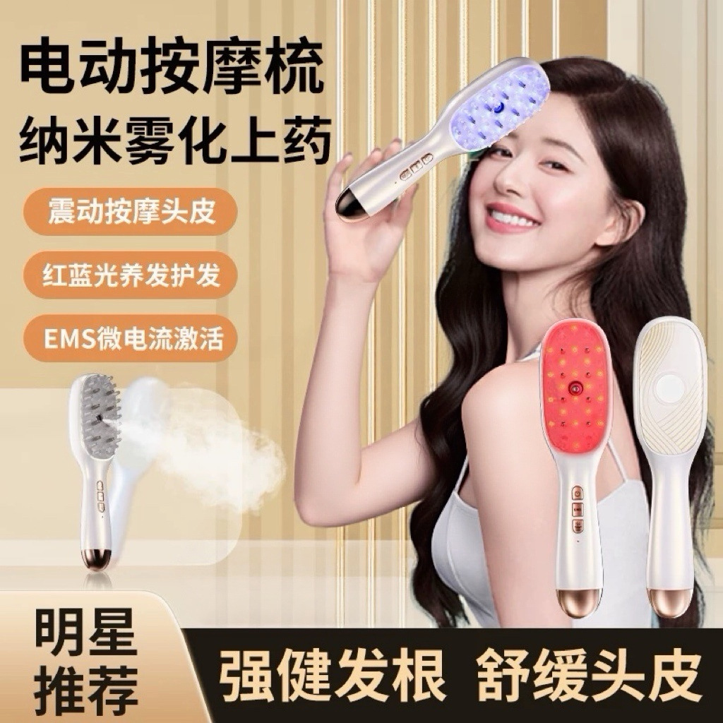 Многофункциональный массажный расческа-спрей EMS с красным и синим светом для терапии, аппликатор для кожи головы, контроль жирности, уход и защита волос