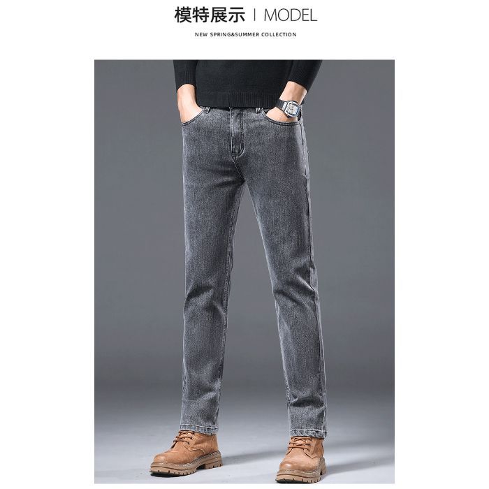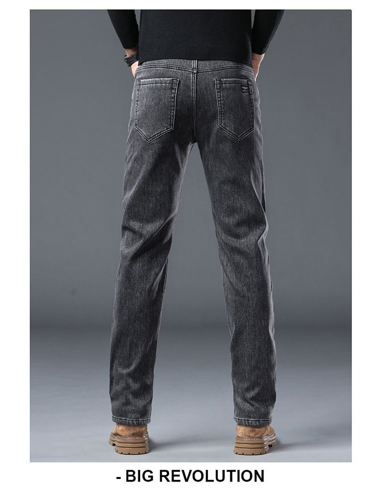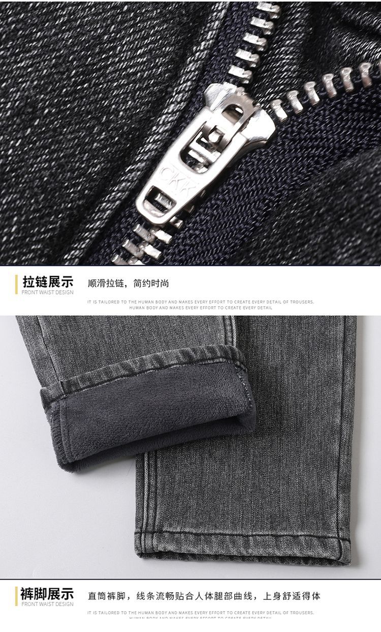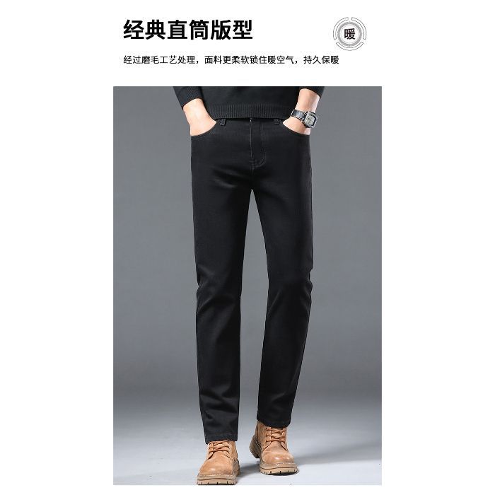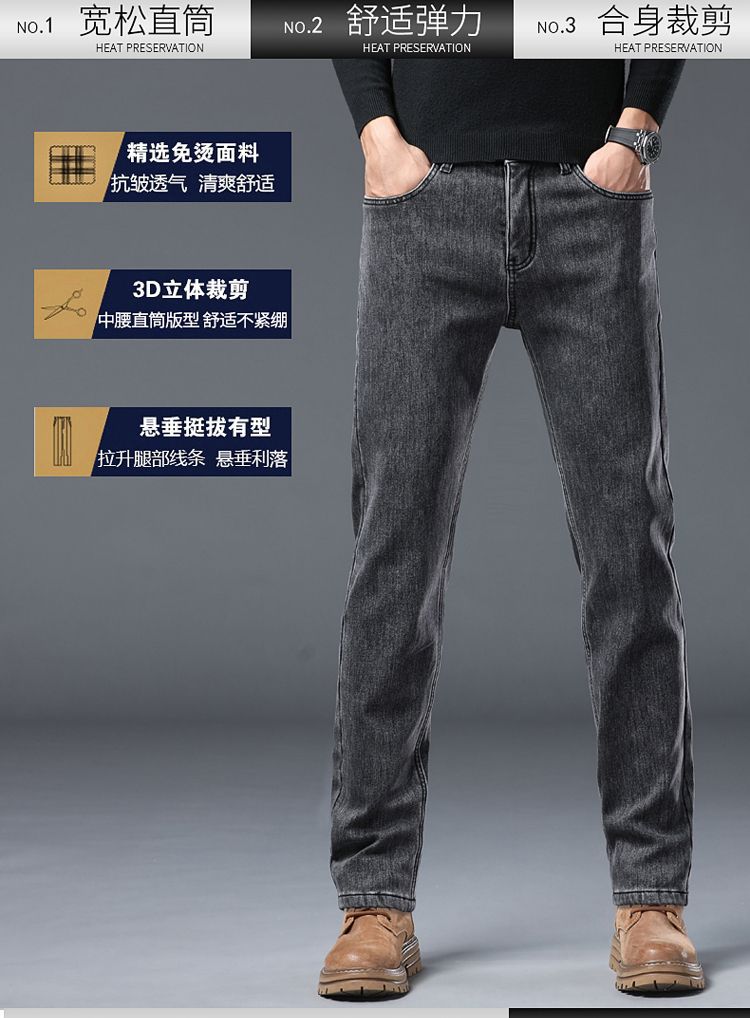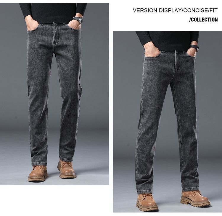 Весенние и осенние обычные джинсы мужские свободные теплые композитные бархатные зимние эластичные бархатные повседневные джинсовые брюки
