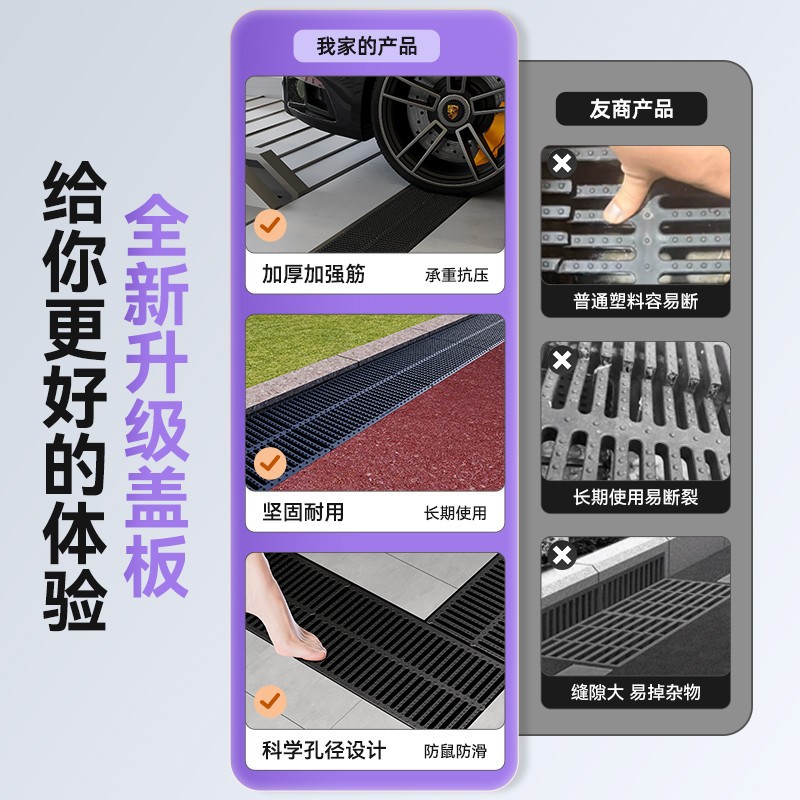 Крышка дренажного канала, сливной канал для кухни, канализационный лоток, пластиковая решетка, решетка для ливневой канализации, универсальная крышка для траншей.