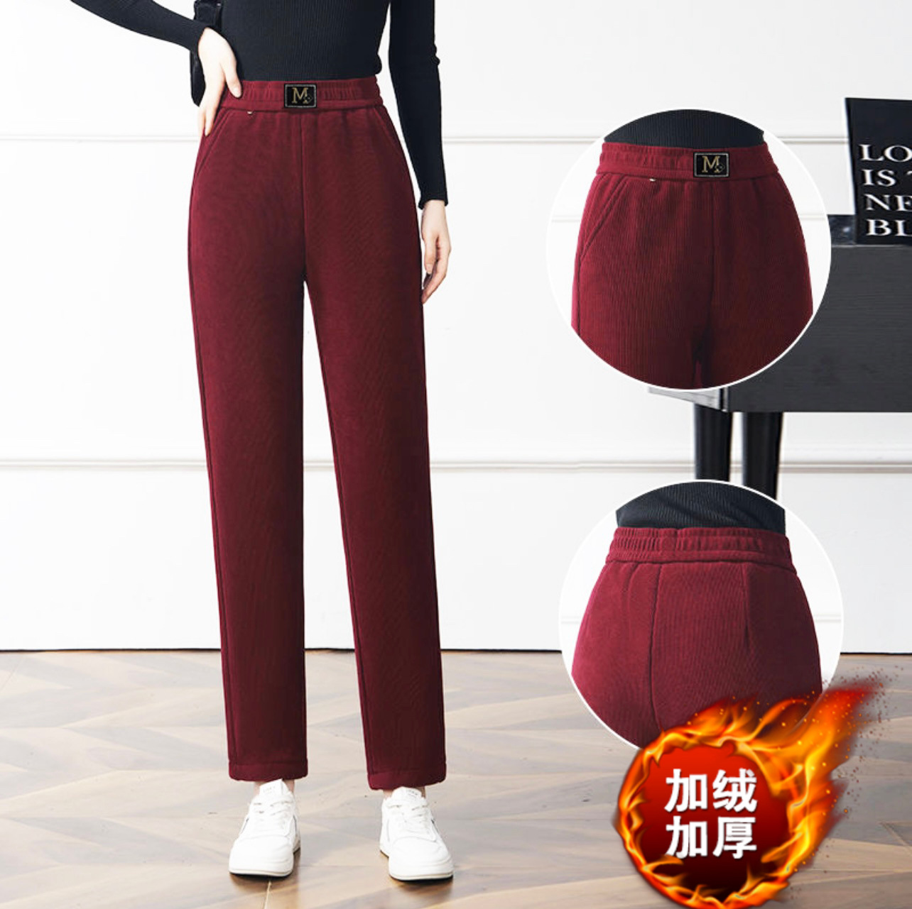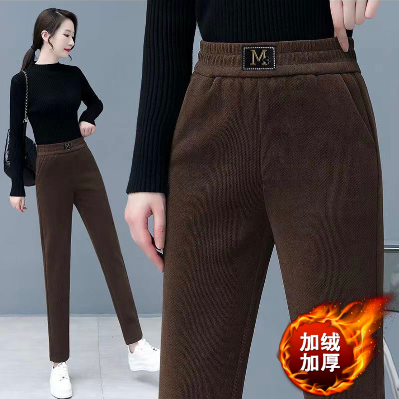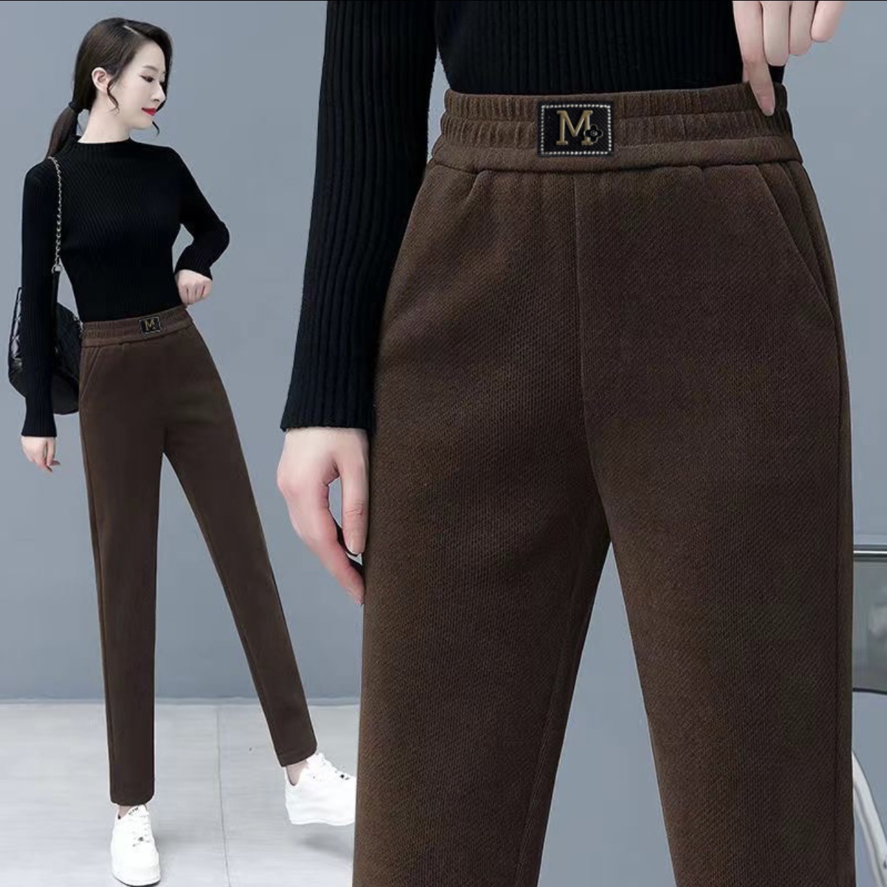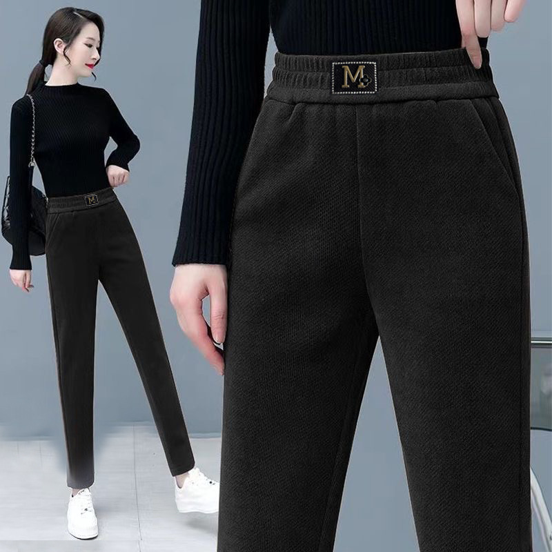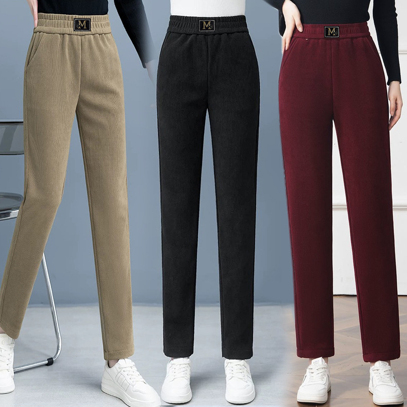 Повседневные брюки среднего и пожилого возраста мамы укороченные 2024 осень и зима новые женские брюки с высокой талией свободные повседневные брюки редьки