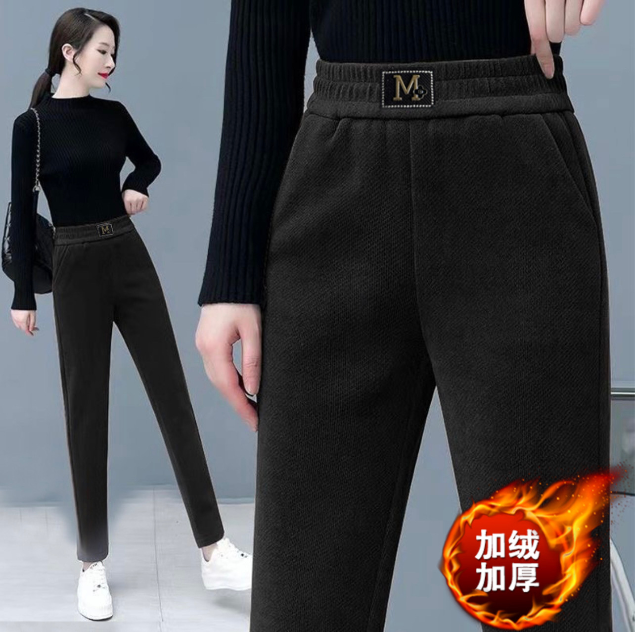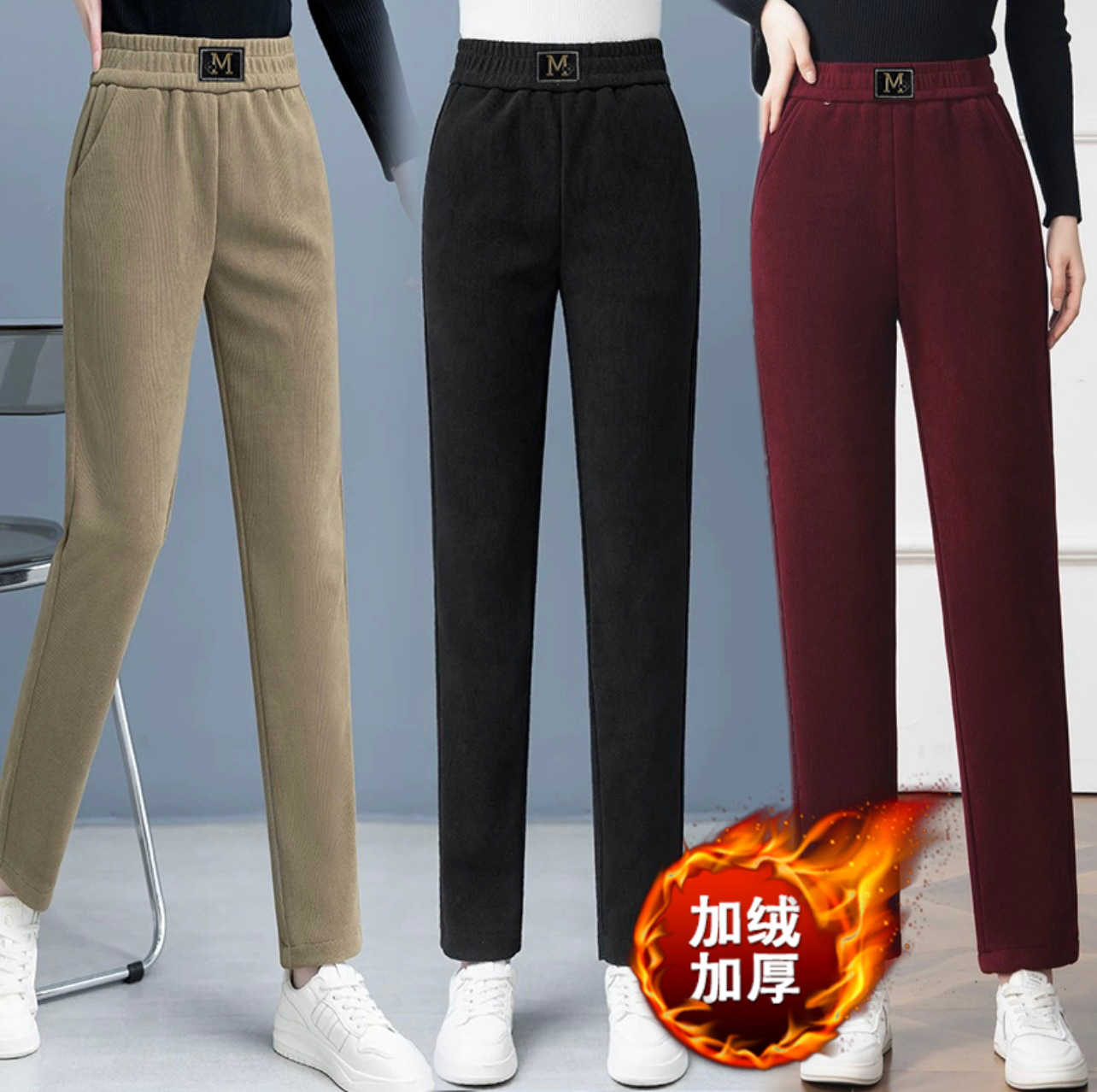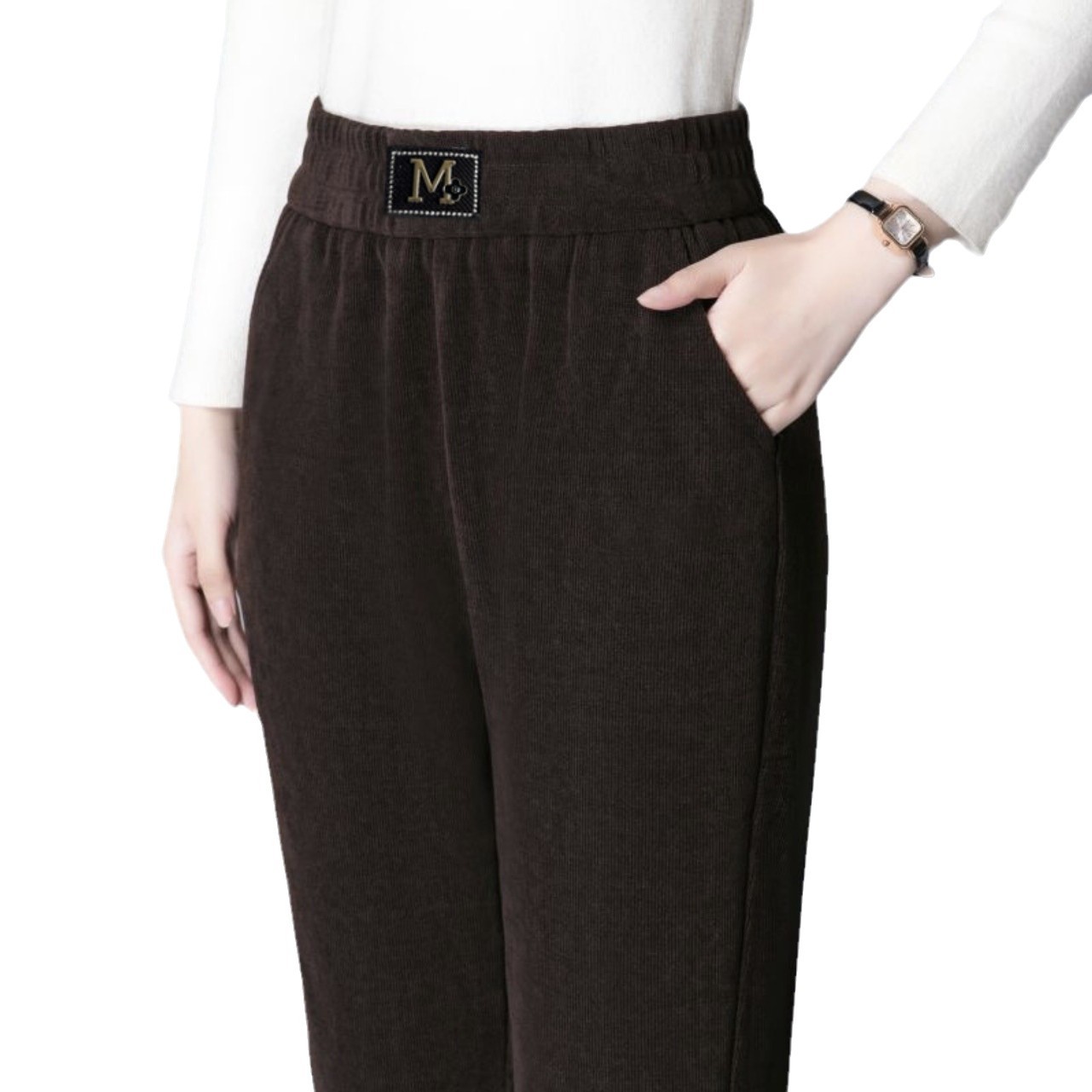Повседневные брюки среднего и пожилого возраста мамы укороченные 2024 осень и зима новые женские брюки с высокой талией свободные повседневные брюки редьки