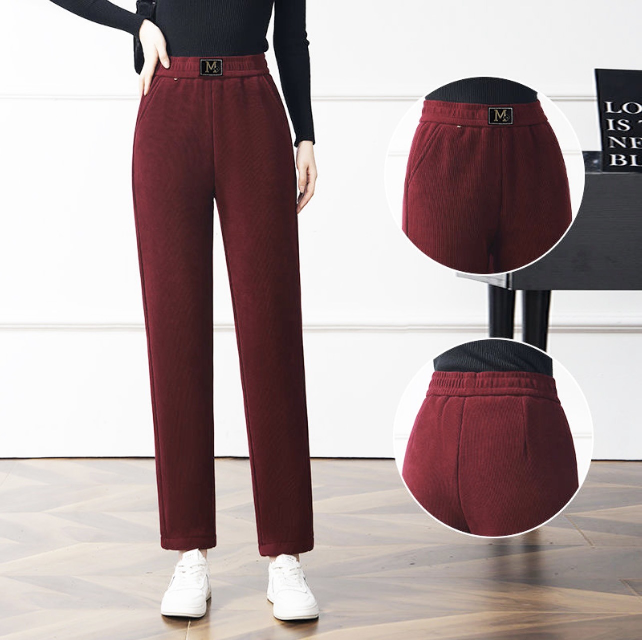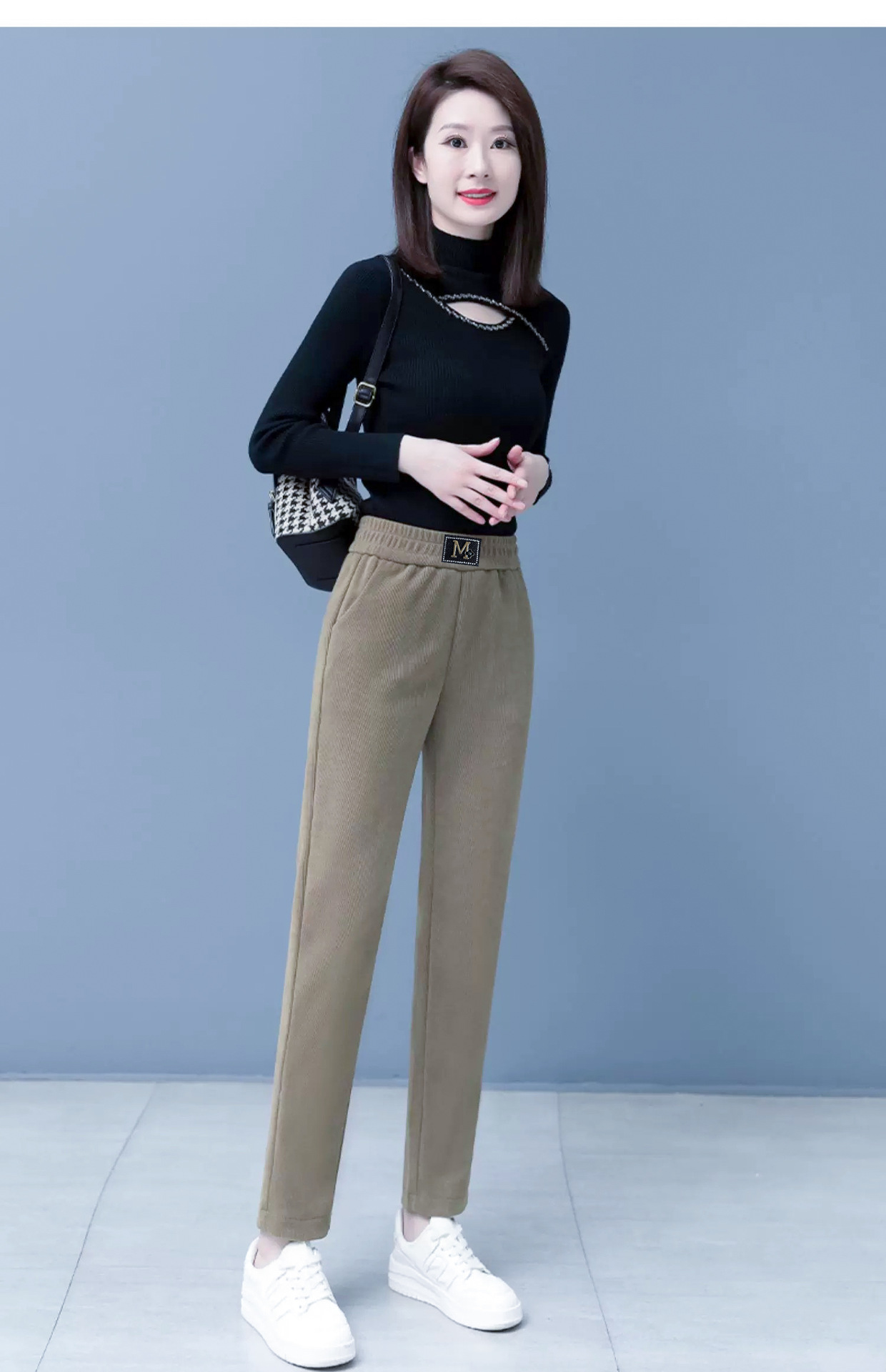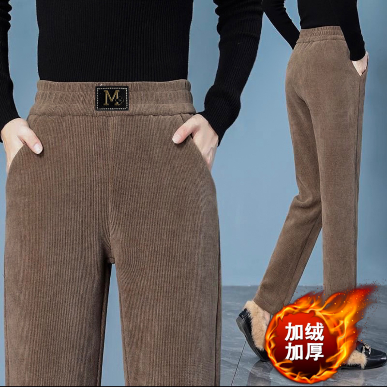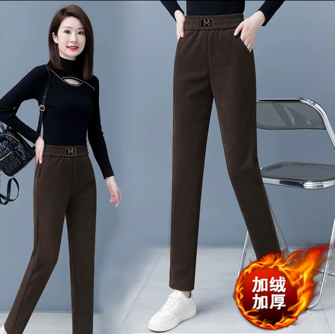 Повседневные брюки среднего и пожилого возраста мамы укороченные 2024 осень и зима новые женские брюки с высокой талией свободные повседневные брюки редьки