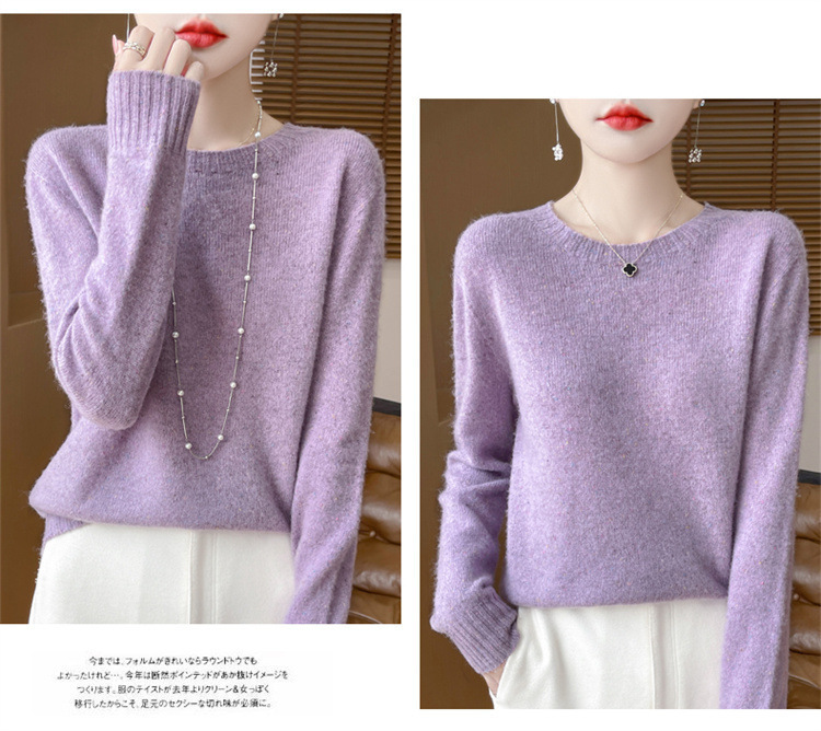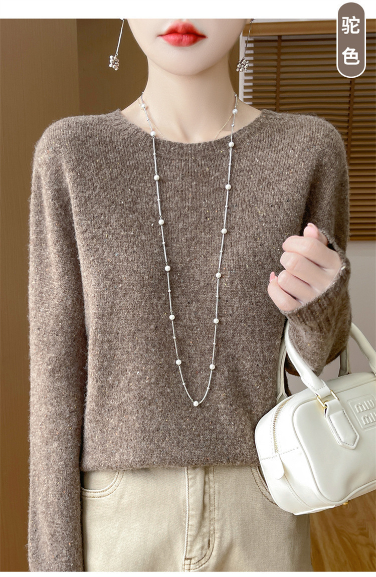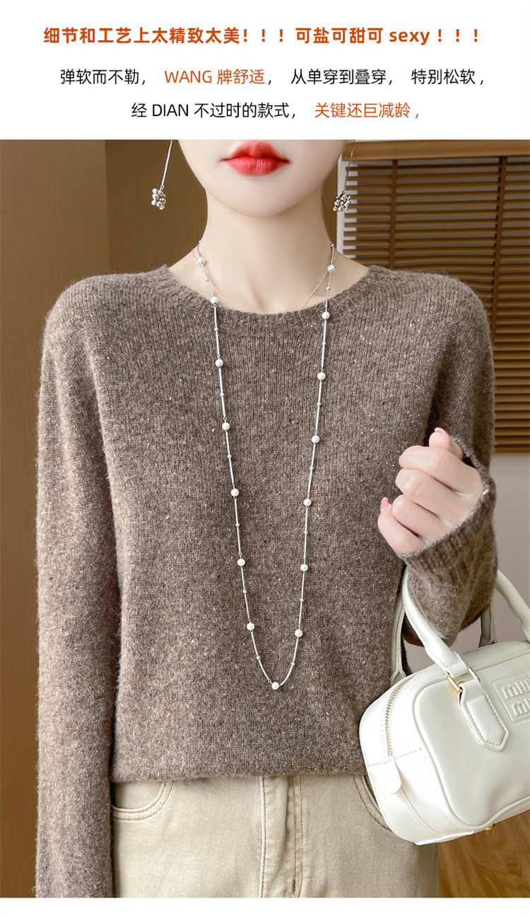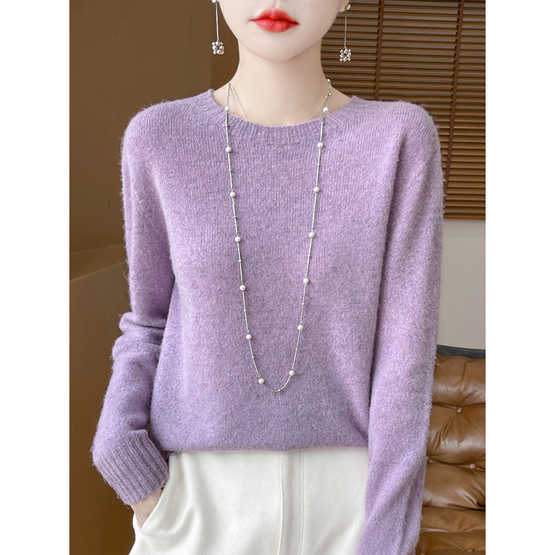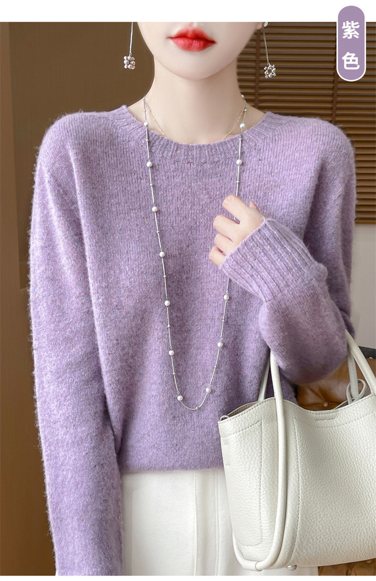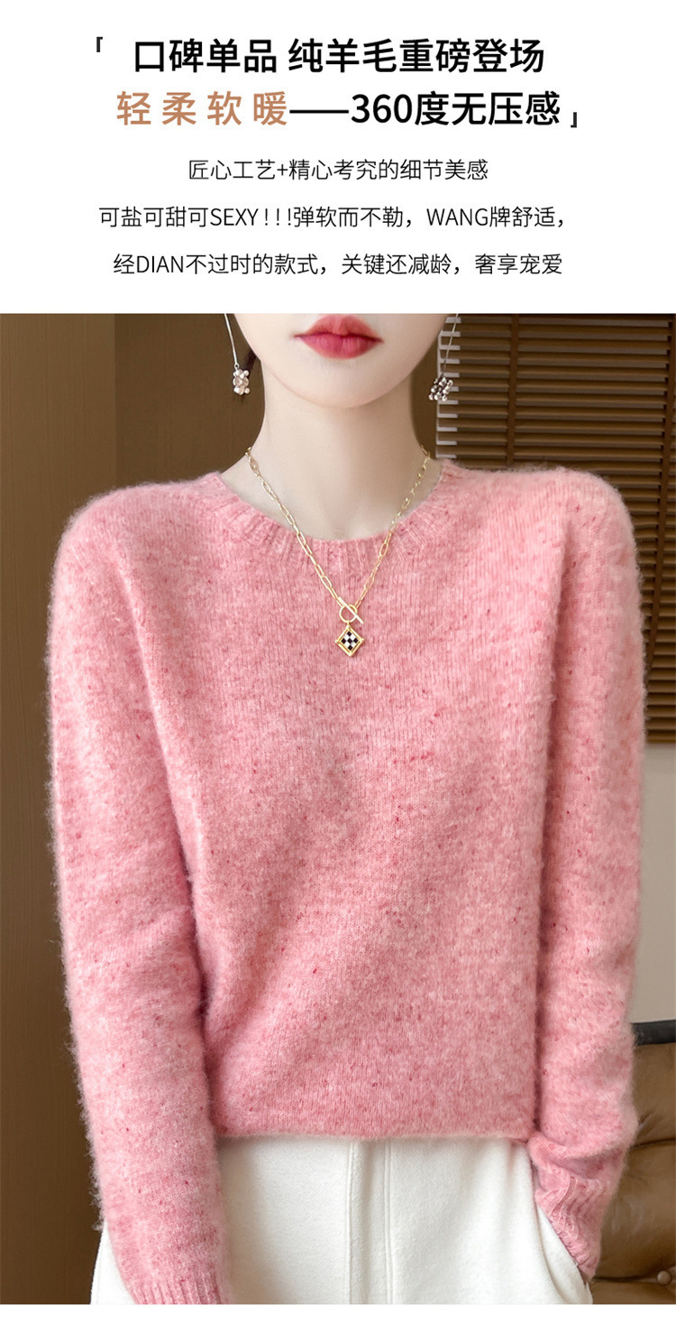 24 чистый шерстяной свитер женский низкий округлый воротник