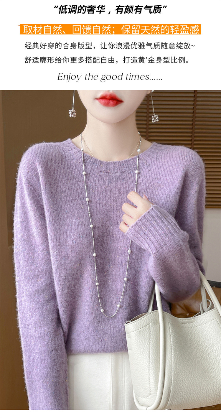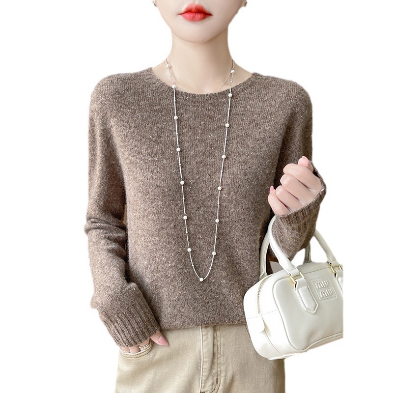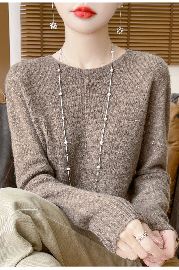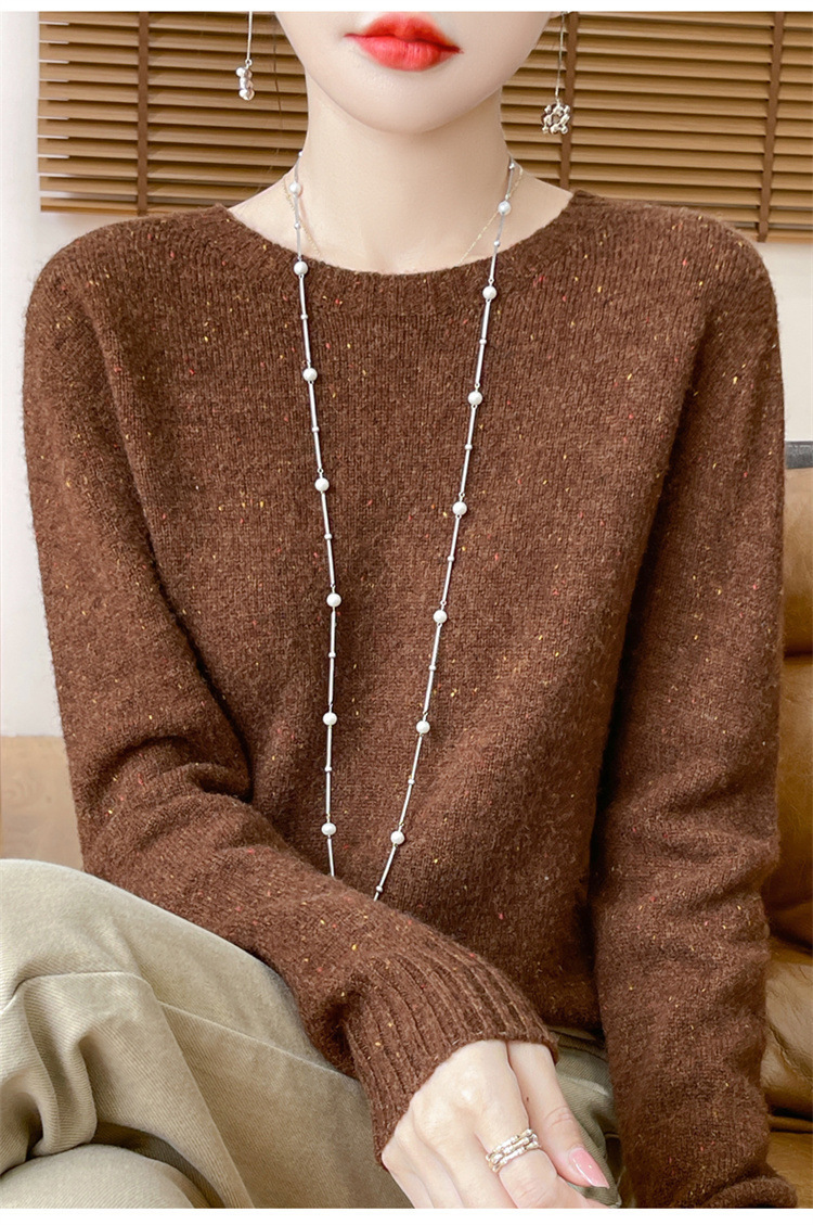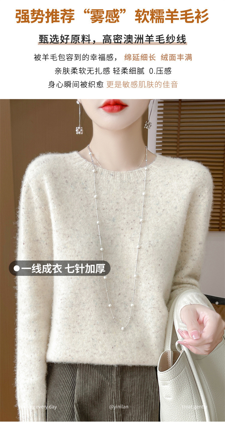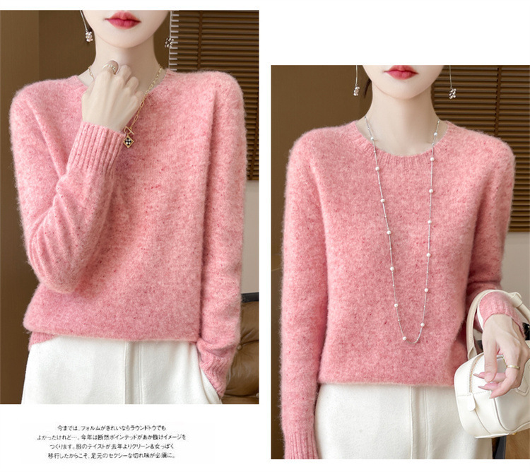 24 чистый шерстяной свитер женский низкий округлый воротник