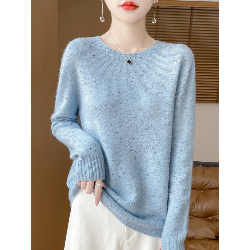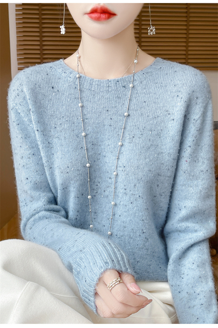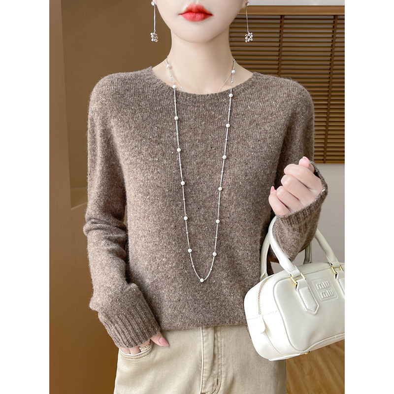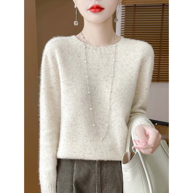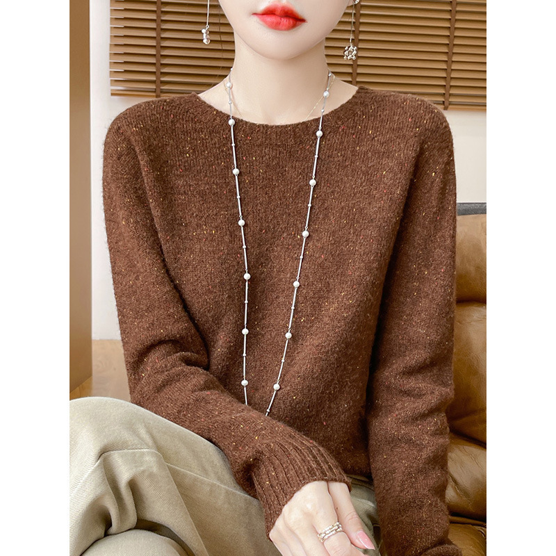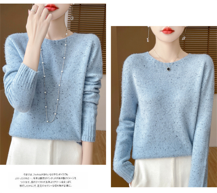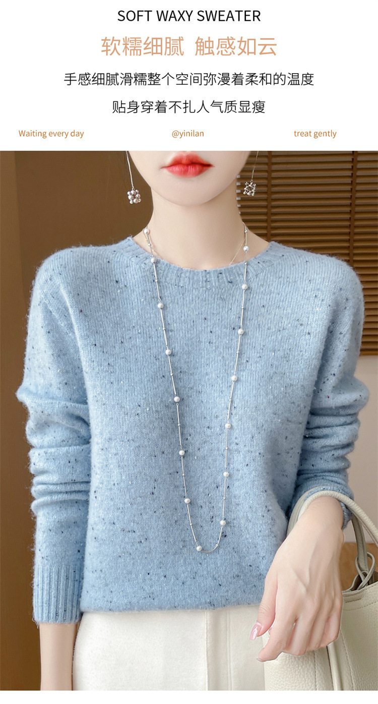 24 чистый шерстяной свитер женский низкий округлый воротник