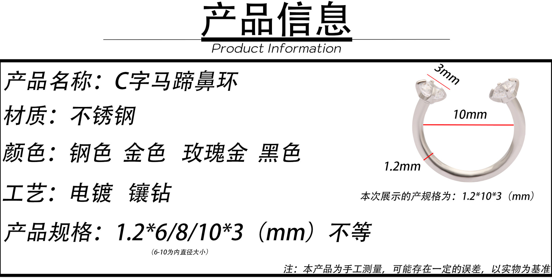 1.2*6*3(mm); 1.2*8*3(mm); 1.2*10*3(mm)