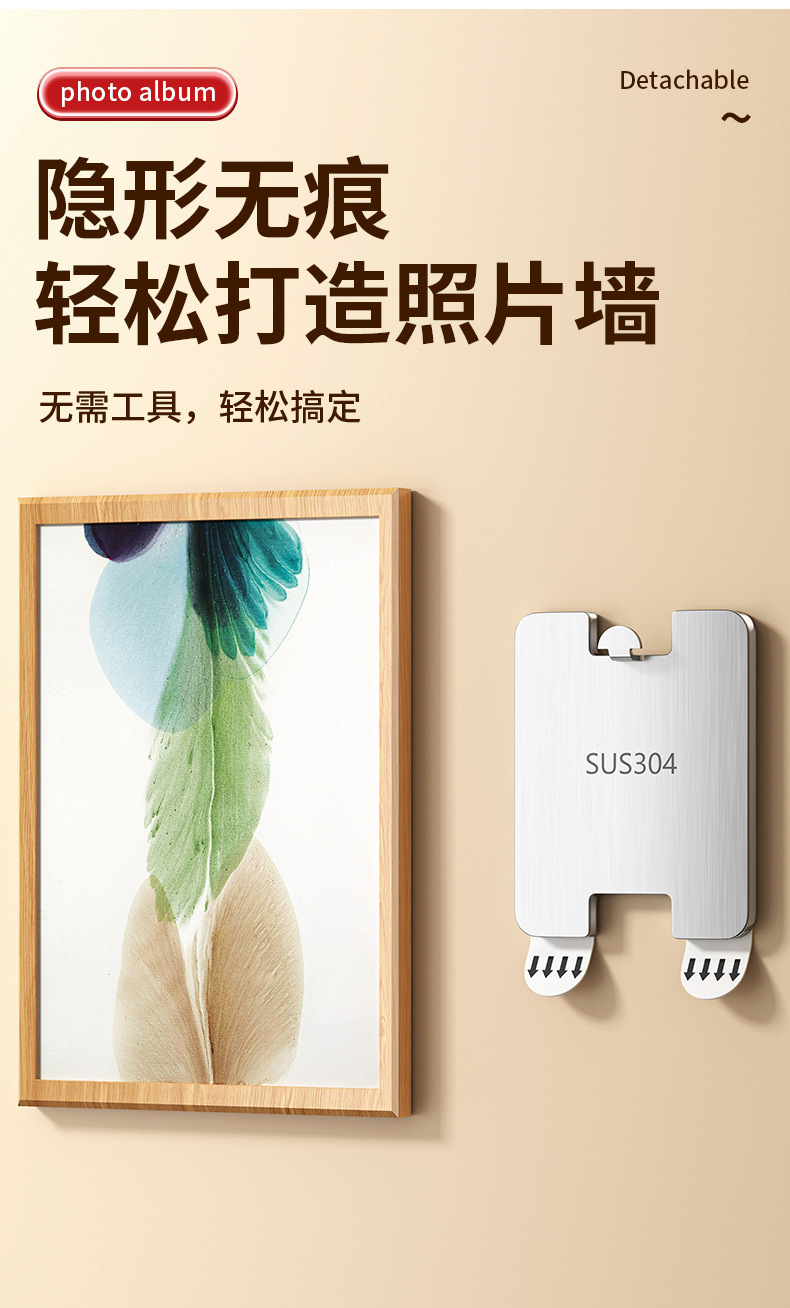 Крючки для настенных росписей, липкие крючки, без перфорации, бесследные, прочные крючки для картин, липкие крючки, металлические крючки для гостиной, вешалки из нержавеющей стали.