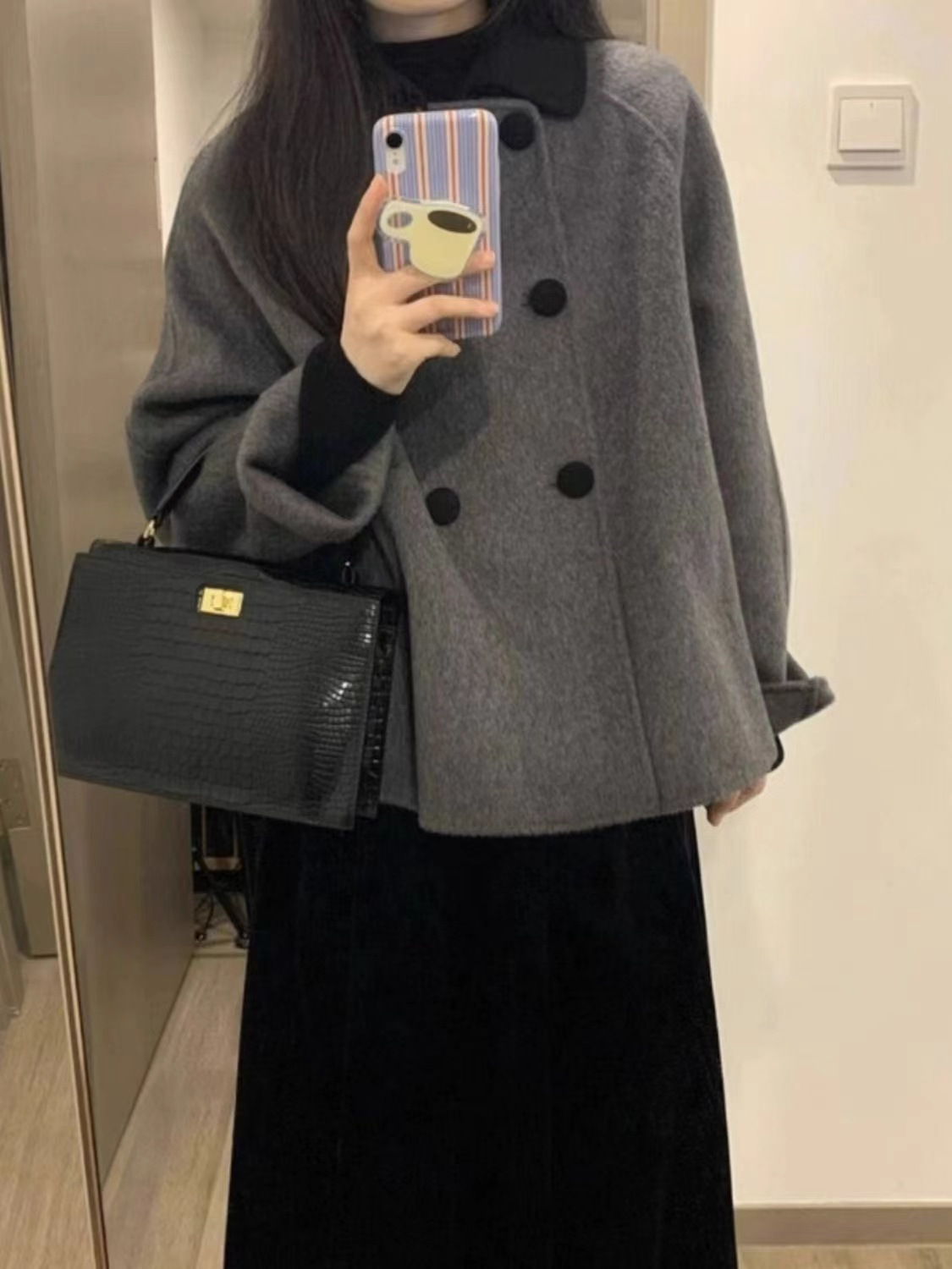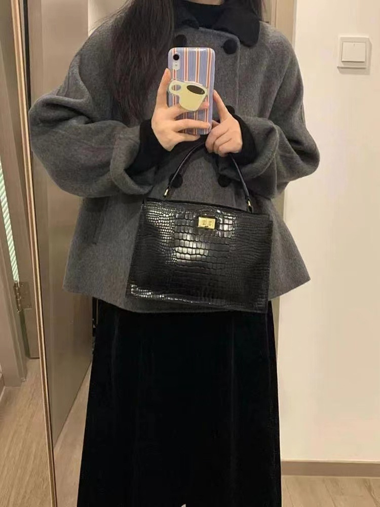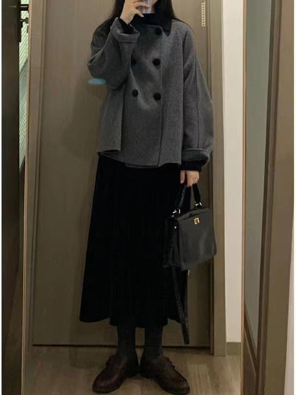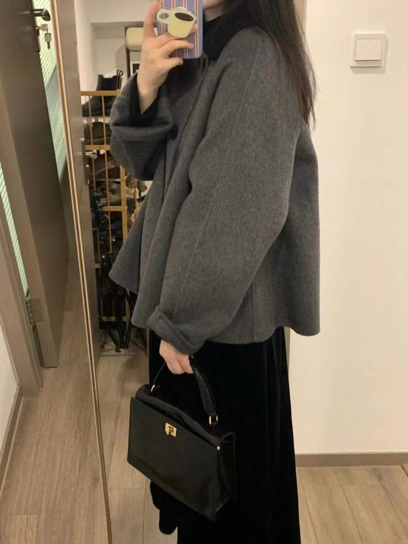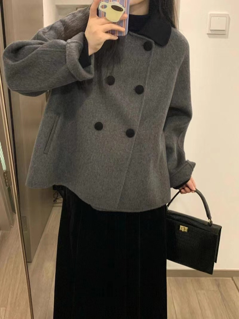 Серое короткое шерстяное пальто для женщин, осень и зима, кукольный воротник, утолщенная миниатюрная корейская шерстяная куртка в стиле Хепберн в стиле ретро.