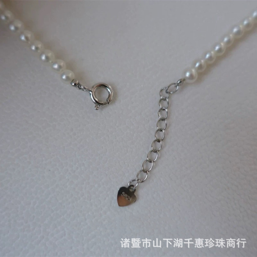 Ожерелье из натурального пресноводного жемчуга Чжуцзи, 3-4 мм, идеально круглые, на цепочке из серебра S925, детская цепочка, полуфабрикат, для самостоятельного изготовления