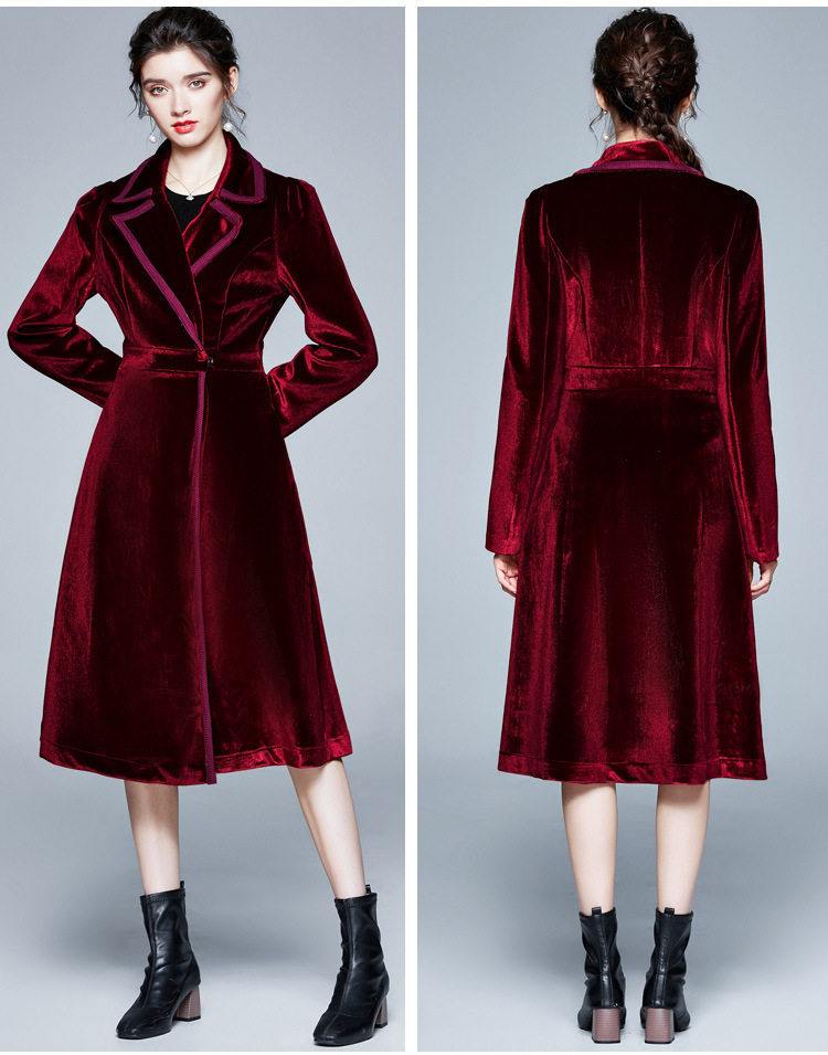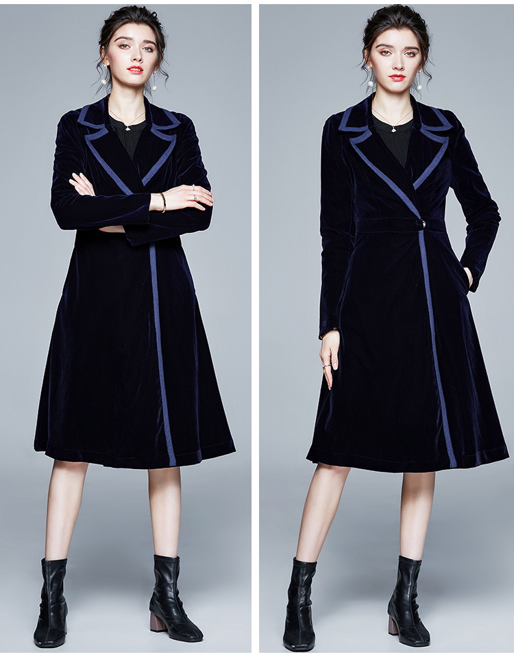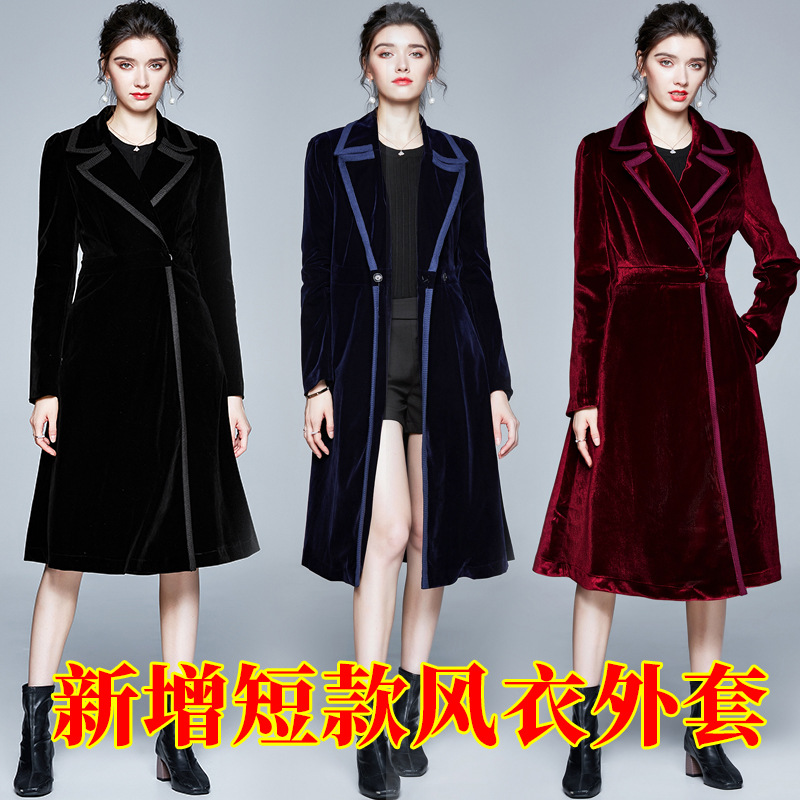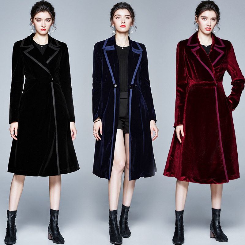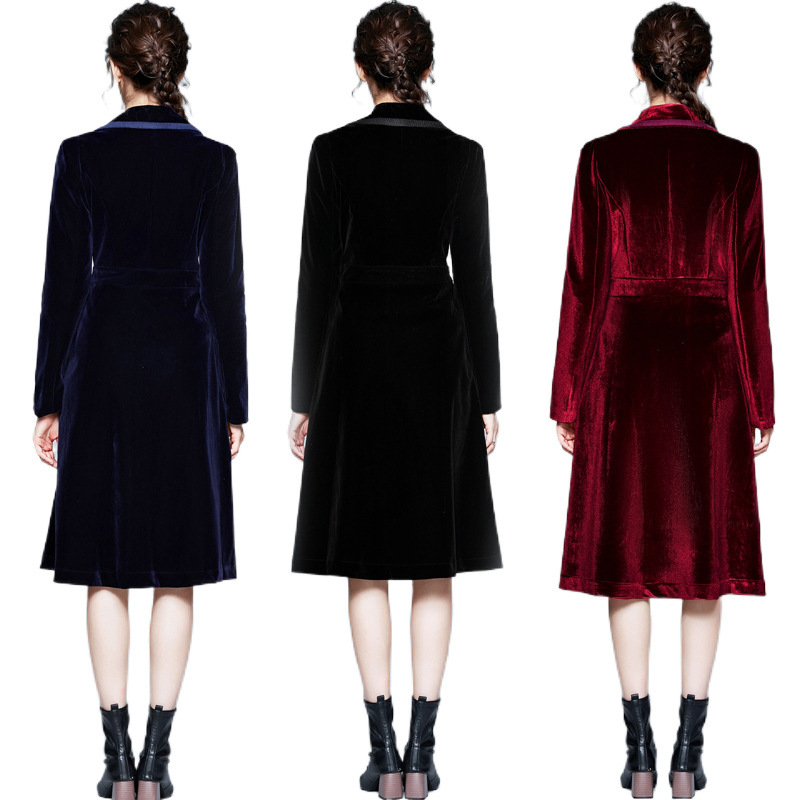 Европейские и американские настоящие фотосессия бархатная ветровка длинная юбка куртка 8882 синий 8885 винно-красный черный