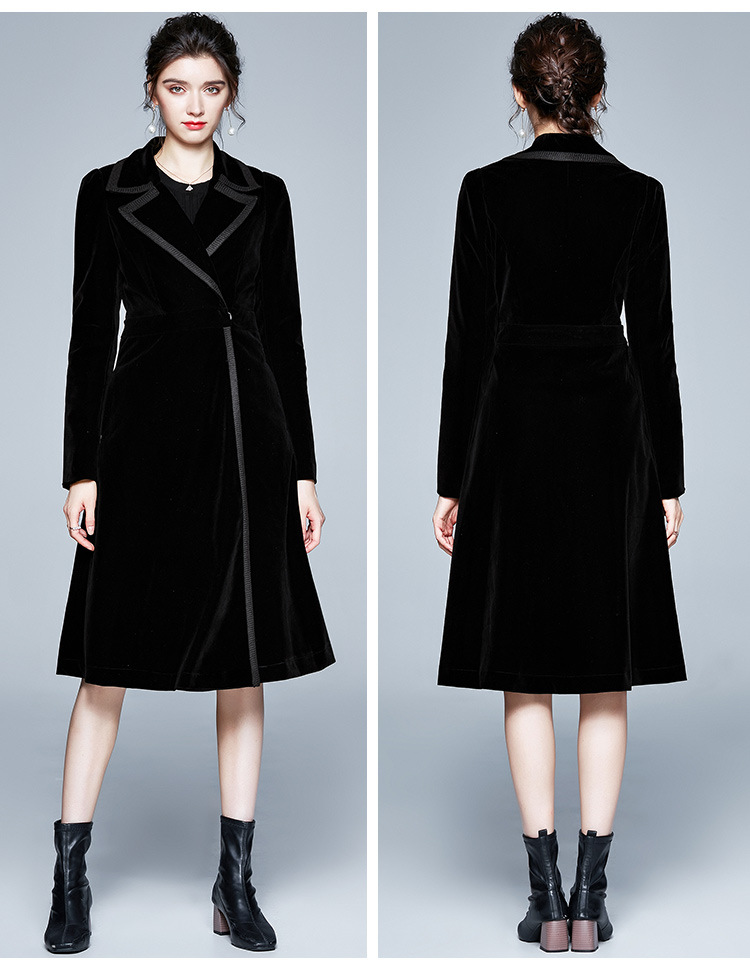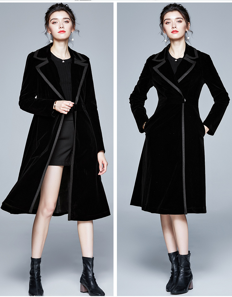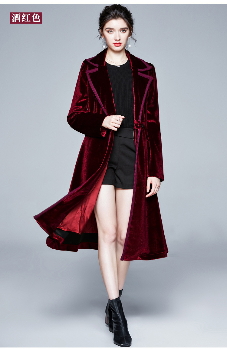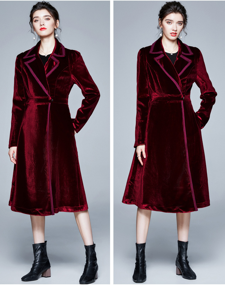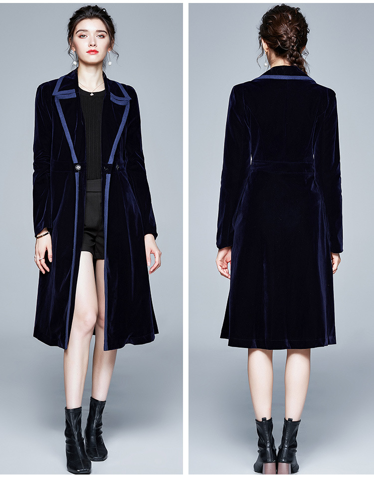 Европейские и американские настоящие фотосессия бархатная ветровка длинная юбка куртка 8882 синий 8885 винно-красный черный