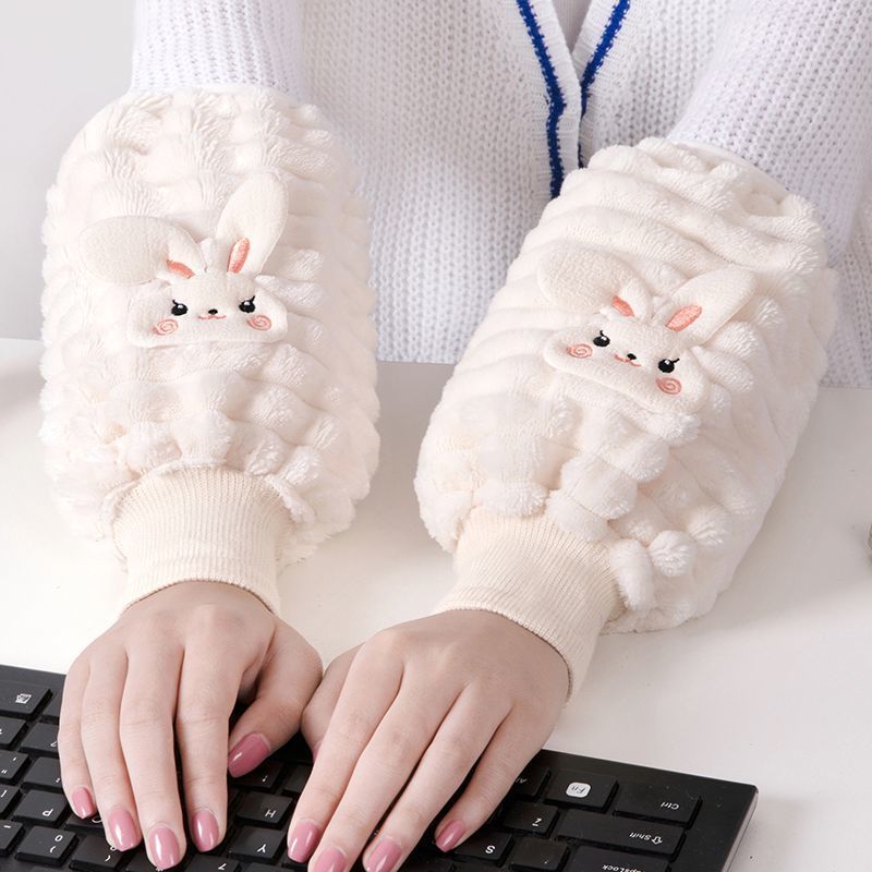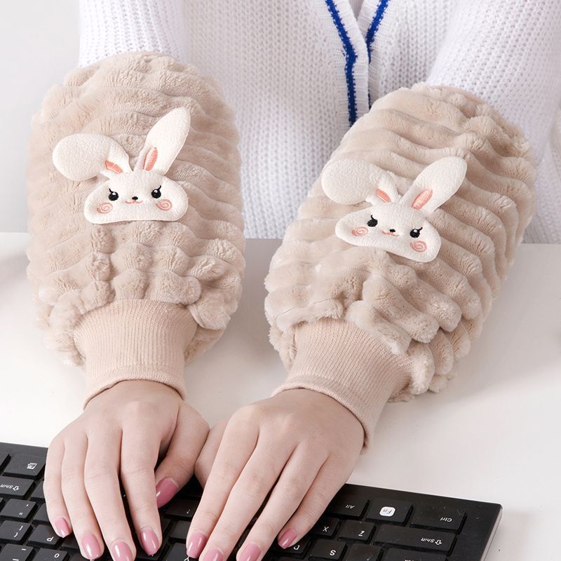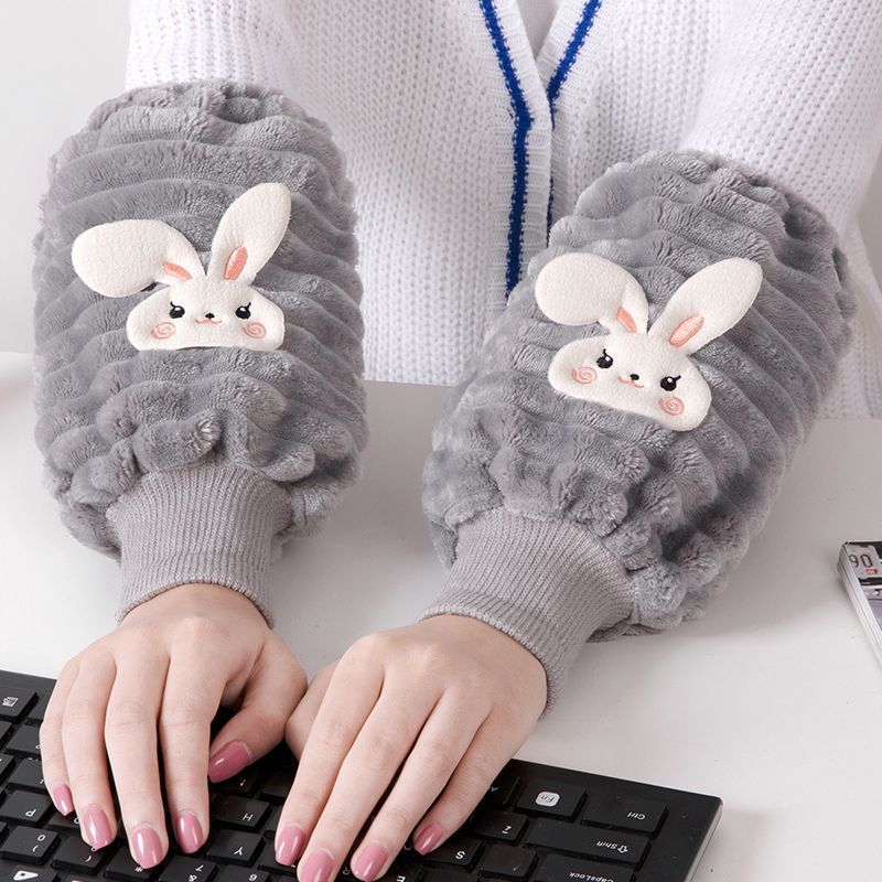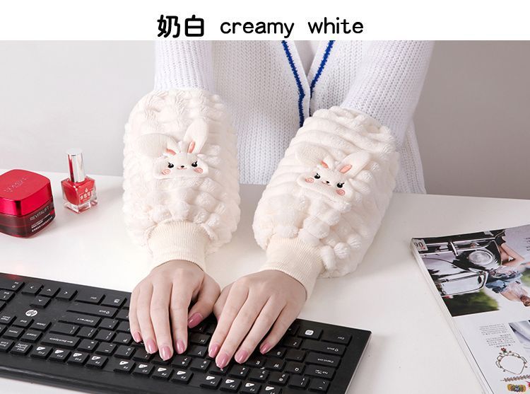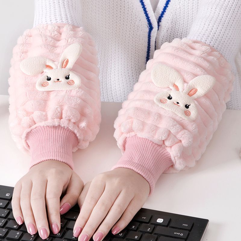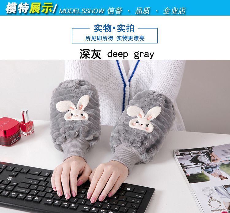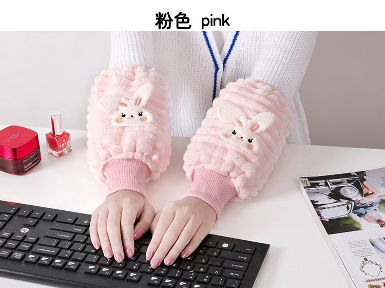 Теплые флисовые детские чехлы на рукава с короткими рукавами и рисунком кролика, милые защитные чехлы для осенне-зимних пуховиков, защищающие от грязи и пятен.