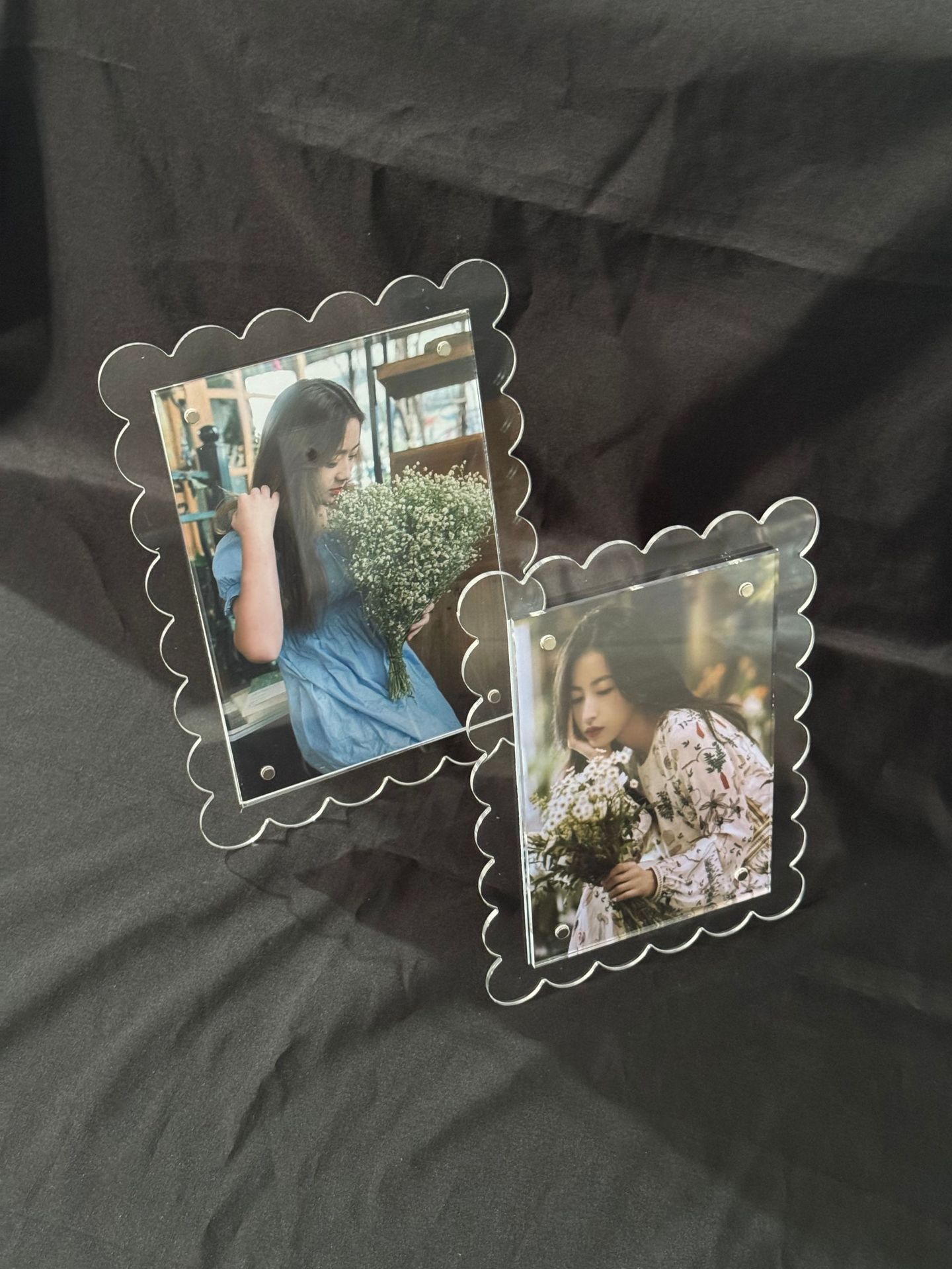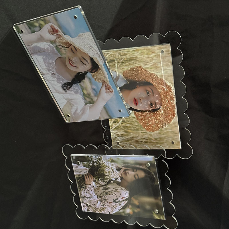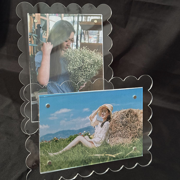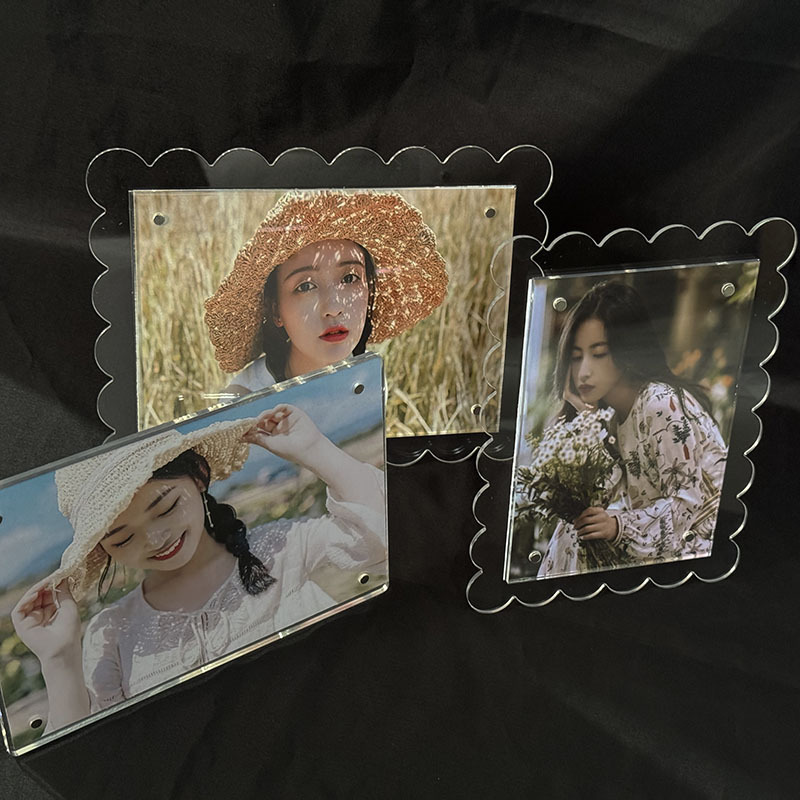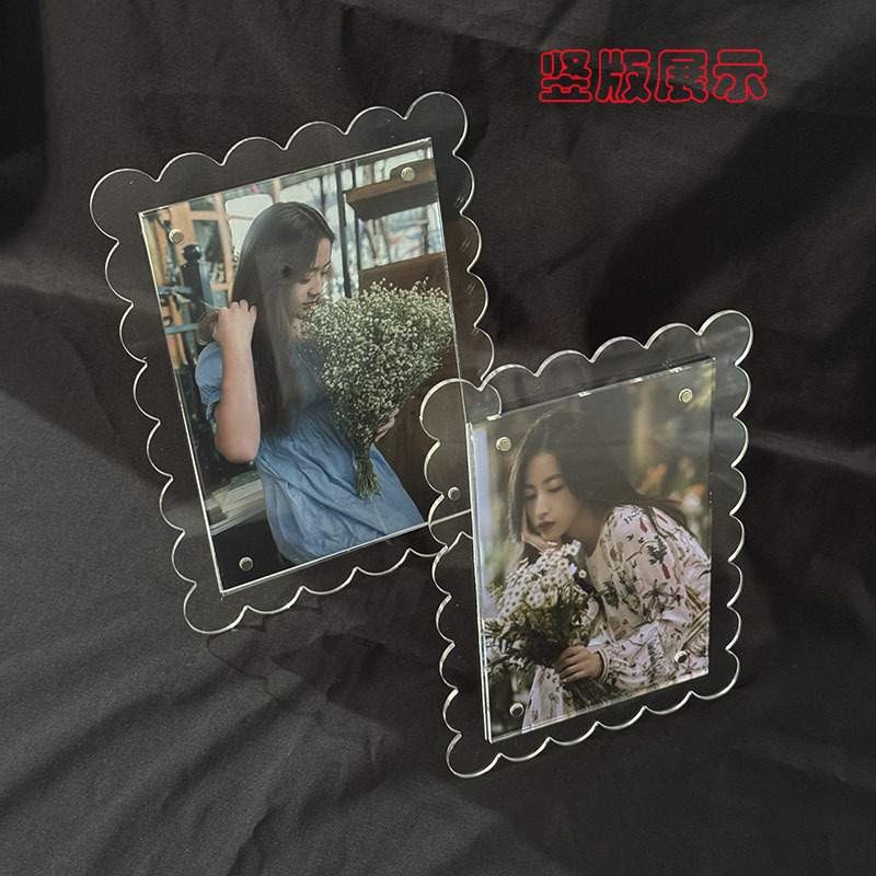 Прямые поставки с фабрики: акриловая магнитная рамка для фото с кружевной волнистой формой, прозрачная рамка для картин, декоративная подставка для стола.