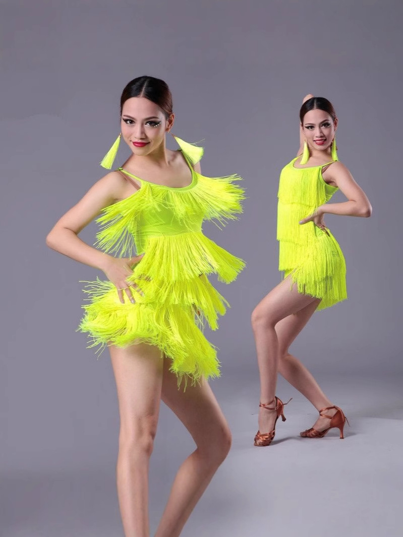 Новый детский латинский танец платье с бахрокой для девочек