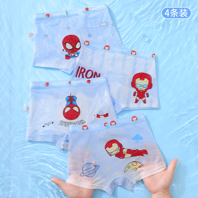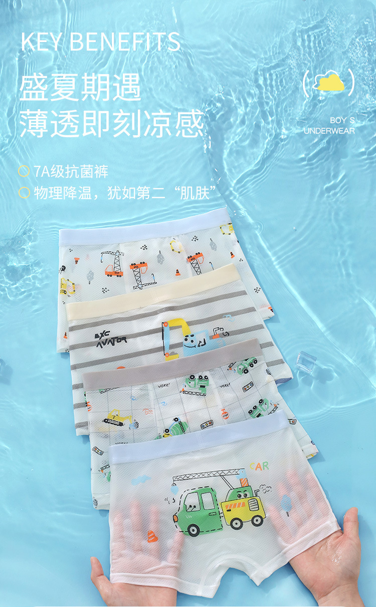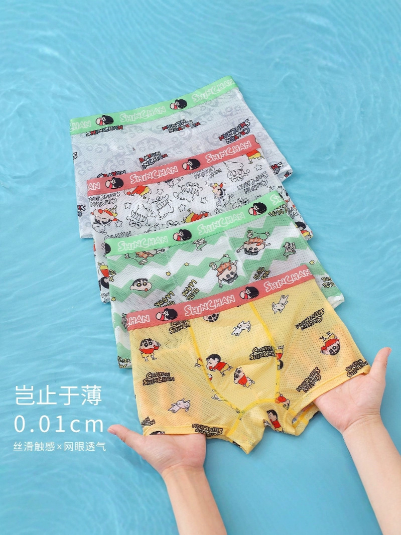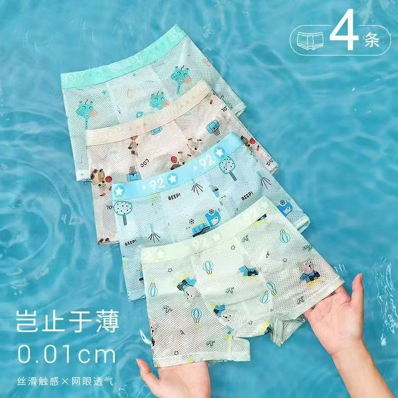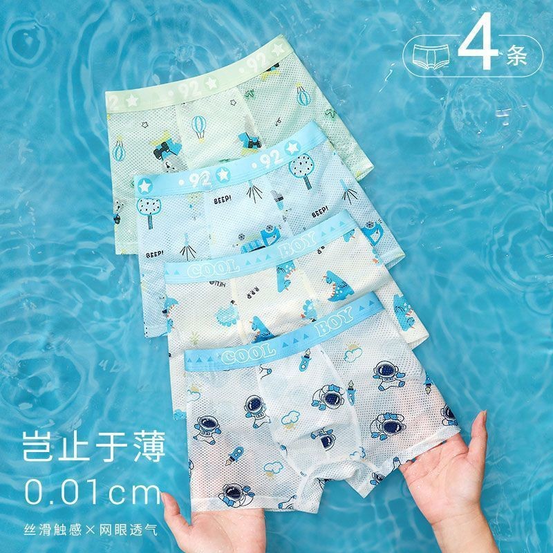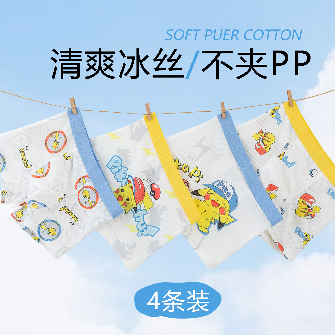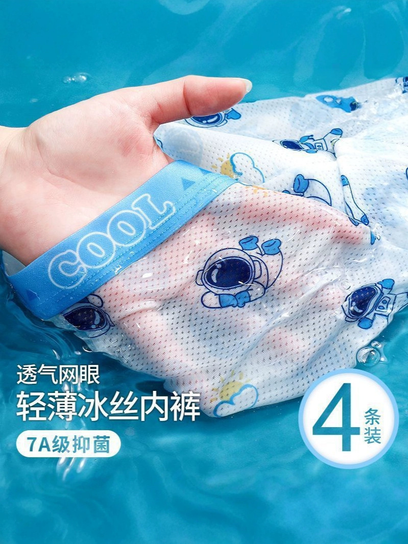Оптовая продажа летних детских трусиков для мальчиков средней талии и детей среднего возраста тонкие ледяные шелковые антибактериальные дышащие четырехугольные брюки
