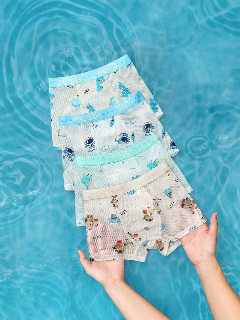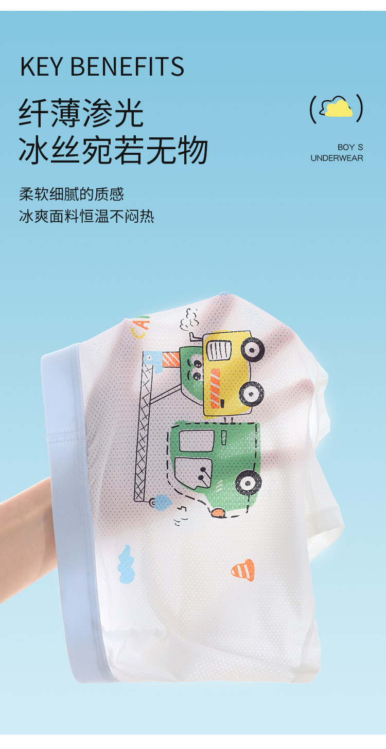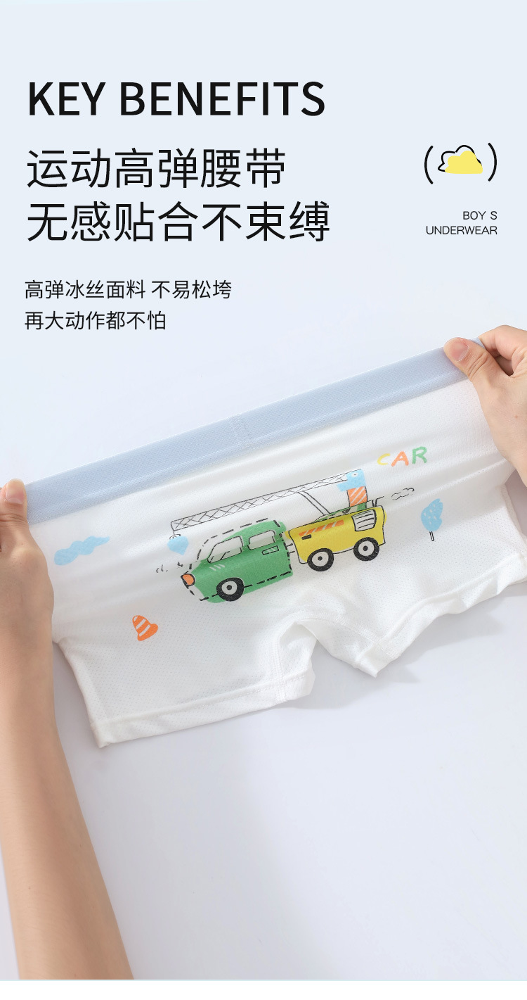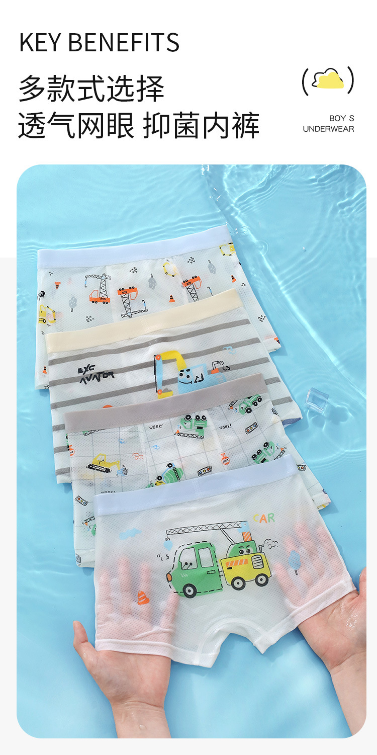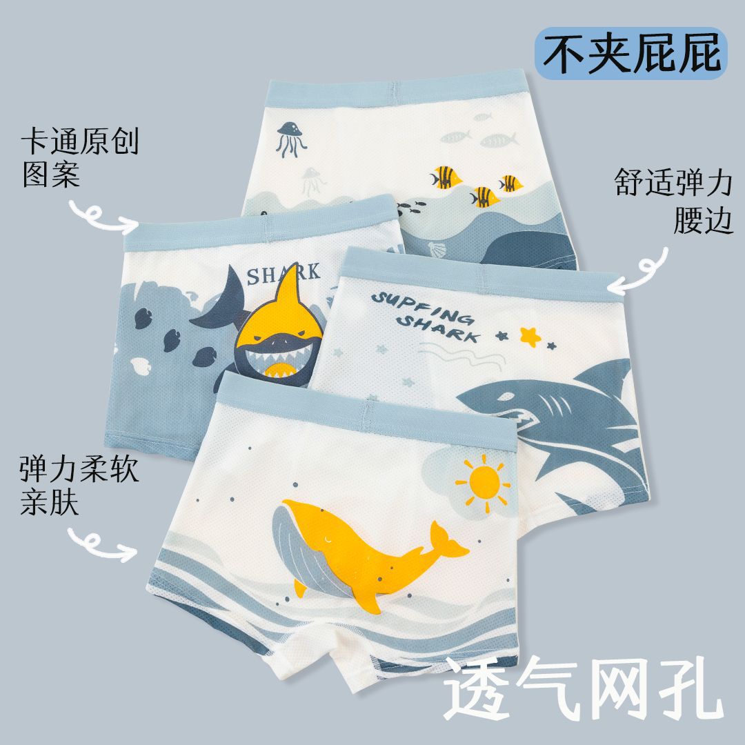 Оптовая продажа летних детских трусиков для мальчиков средней талии и детей среднего возраста тонкие ледяные шелковые антибактериальные дышащие четырехугольные брюки