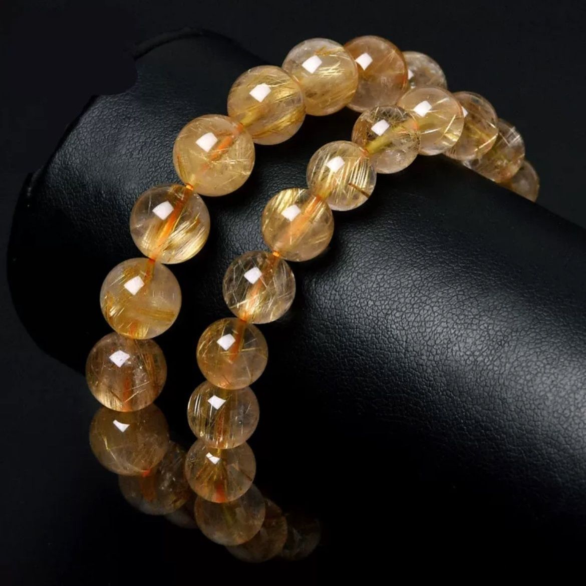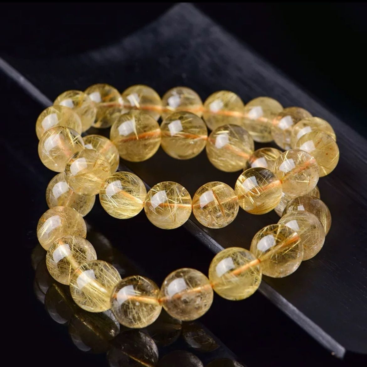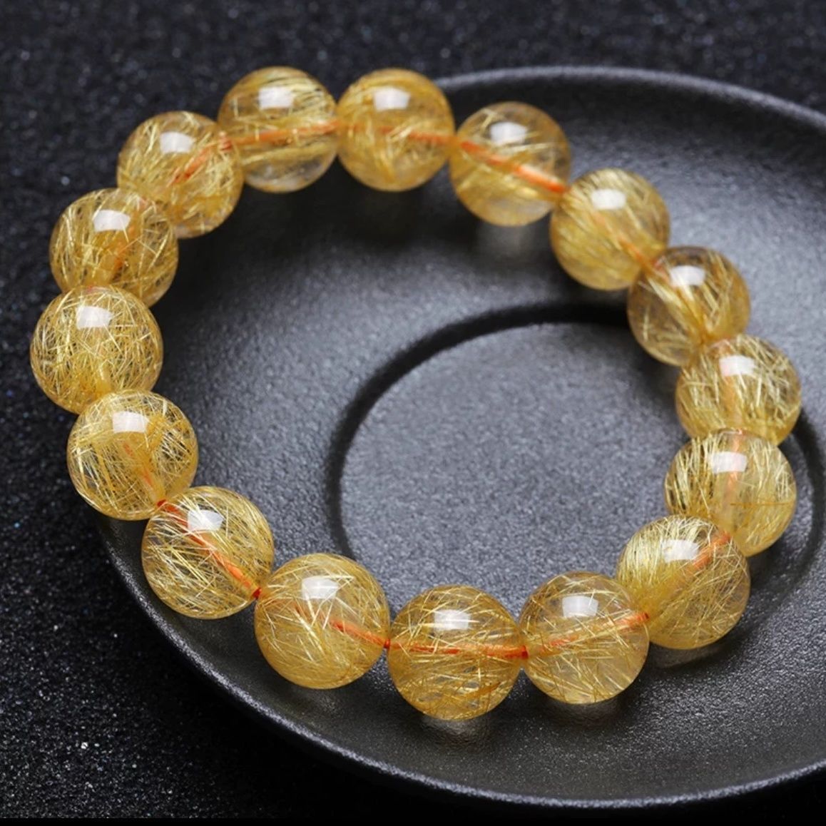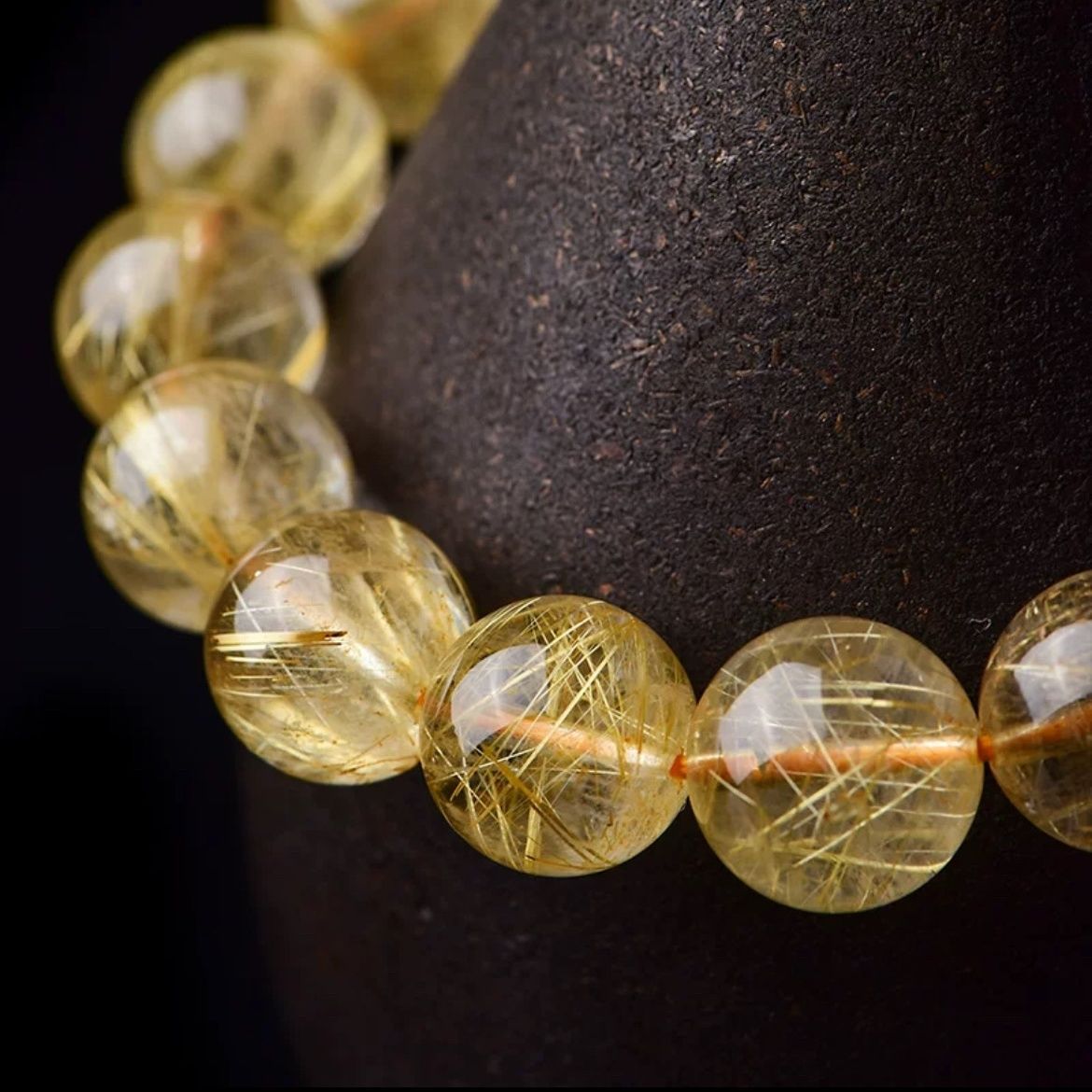 Браслет из натурального титана со светлыми кристаллами Бразильское происхождение для мужчин и женщин Браслет с кристаллами удачи Золотой необработанный камень Желтые волосы Кристалл благородный