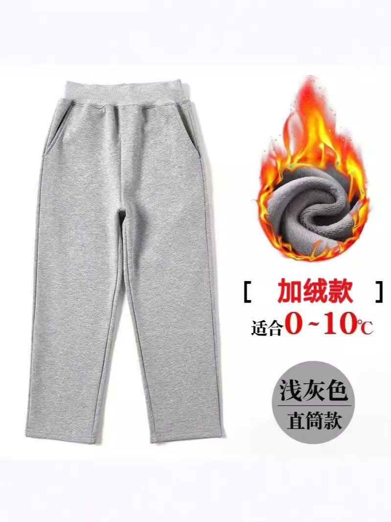 Детская серая школьная форма брюки для школьников спортивные брюки для мальчиков длинные брюки для девочек весной и осенью бархатные светло-серые школьные брюки