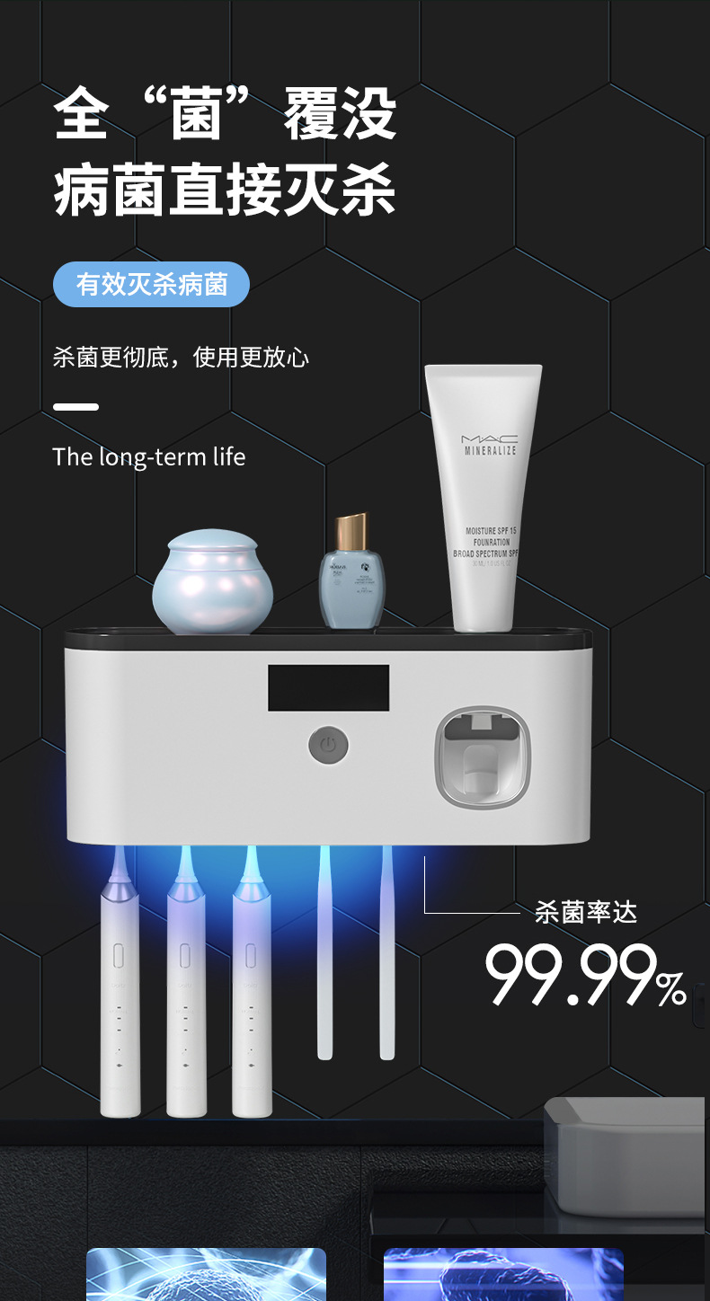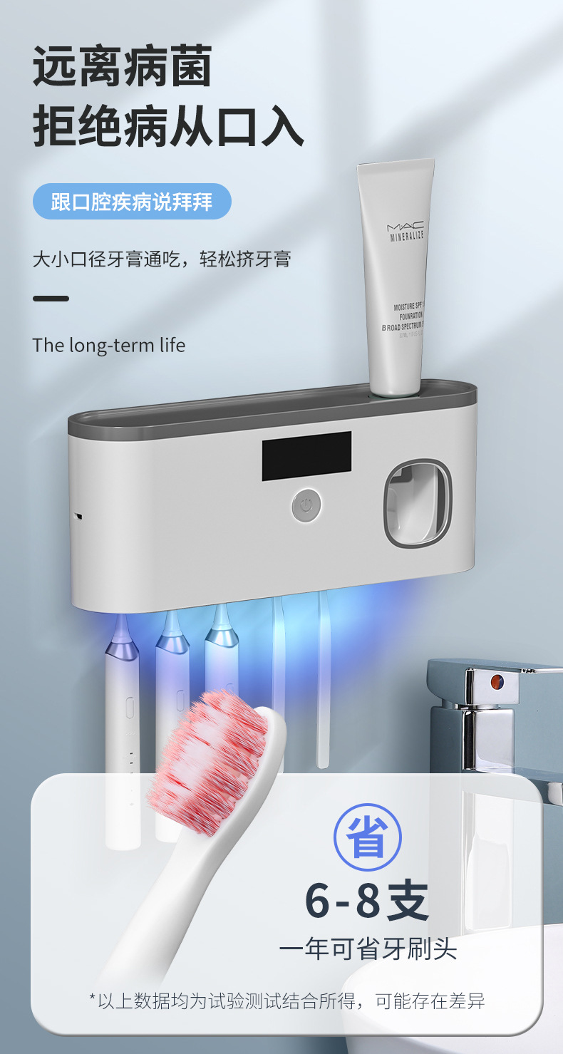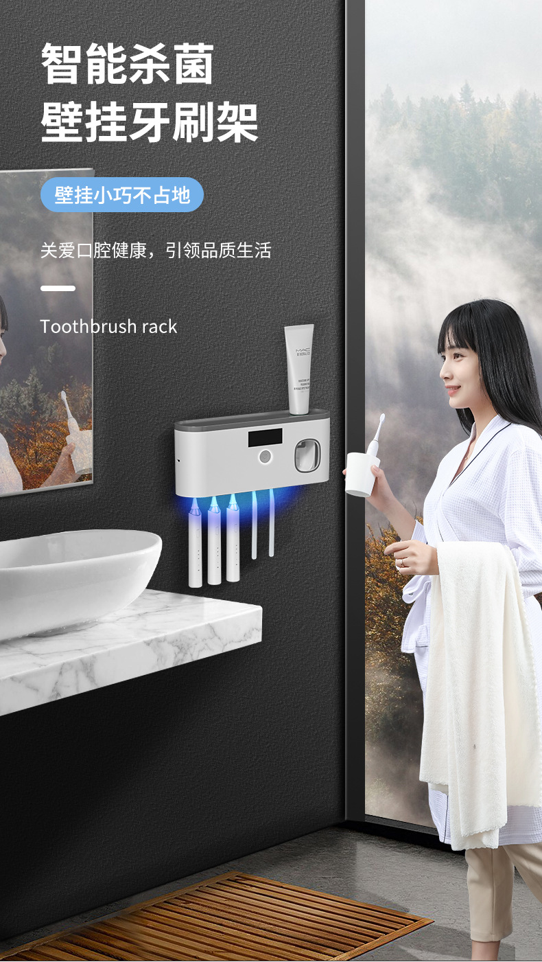 Беспроводная зарядка через USB, стерилизатор для зубных щеток с ультрафиолетовой обработкой без сверления, настенный умный держатель для зубных щеток с функцией стерилизации