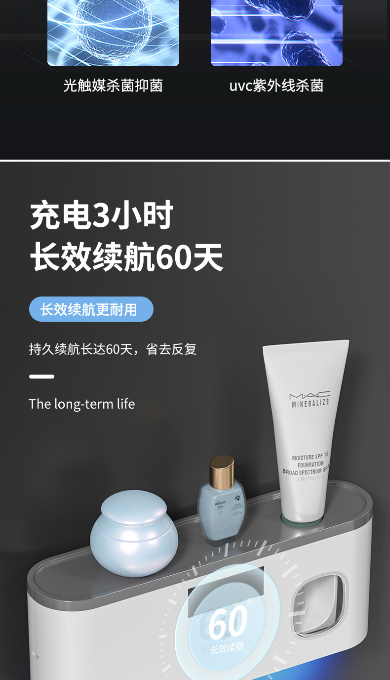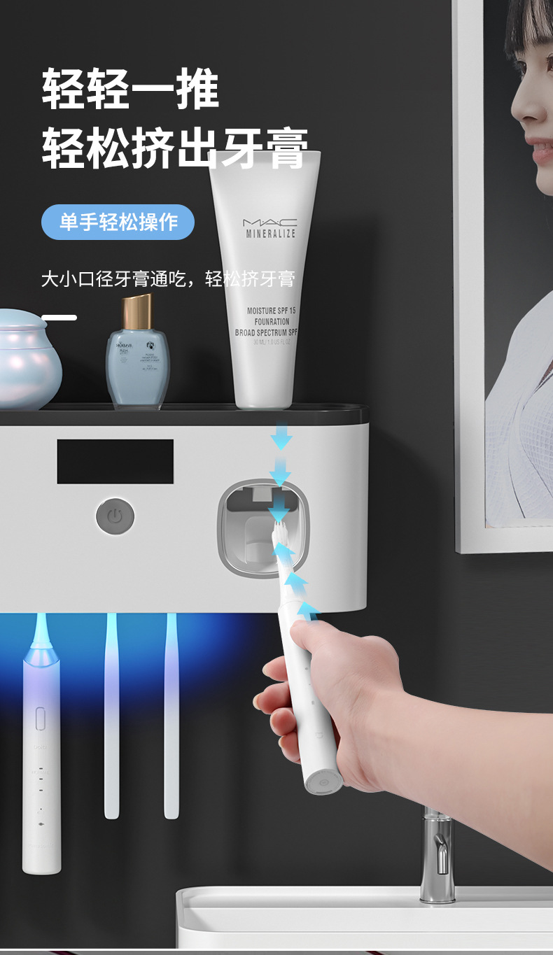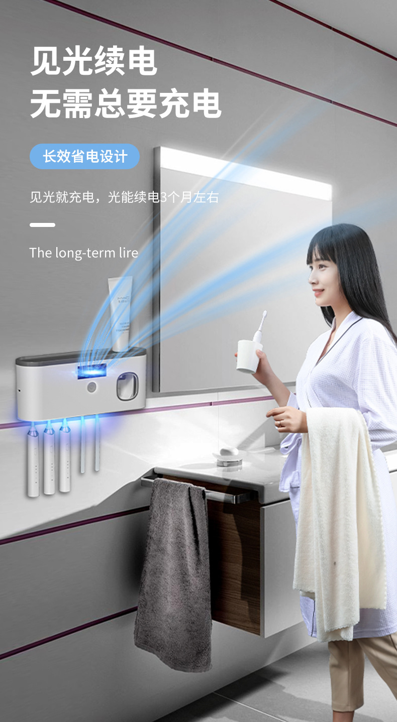 Беспроводная зарядка через USB, стерилизатор для зубных щеток с ультрафиолетовой обработкой без сверления, настенный умный держатель для зубных щеток с функцией стерилизации