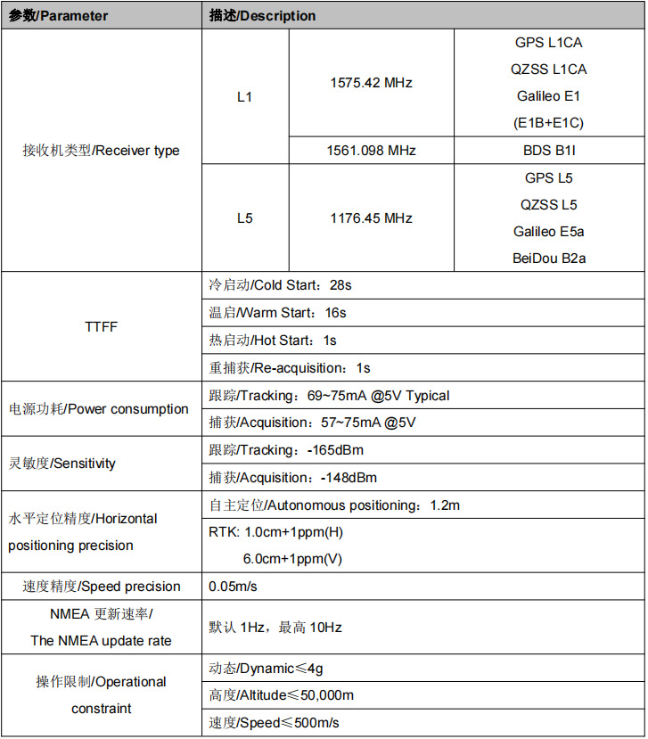 - 高性能双频(L1+L5)多系统定位终端,内置高精度RTK模组+双频GNSS高精度天线,集成RTK算法,并支持输出GNSS原始观测量,配合全国北斗增强网的高精度定位服务,定位精度实现厘米级,是最具性价比的高精度定位GNSS终端。