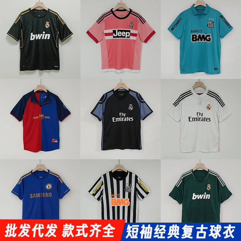 Ретро Реал Мадрид Париж Манчестер Юнайтед Барселона Франция Португалия Классическая Ностальгия Ретро с короткими рукавами Джерси для взрослых Футбольный костюм