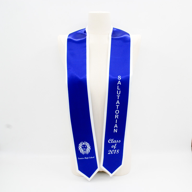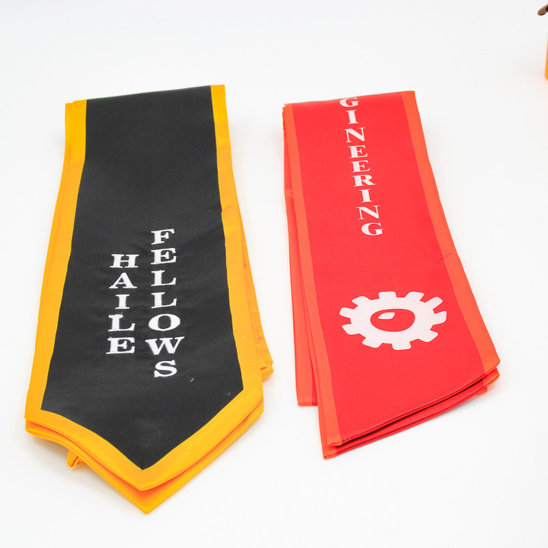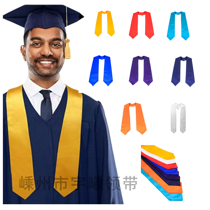 Эксклюзивные трансграничные поставки: шали для выпускников, атласные однотонные ленты, детские ленты с принтами для университетов, вышитые атласные ленты.