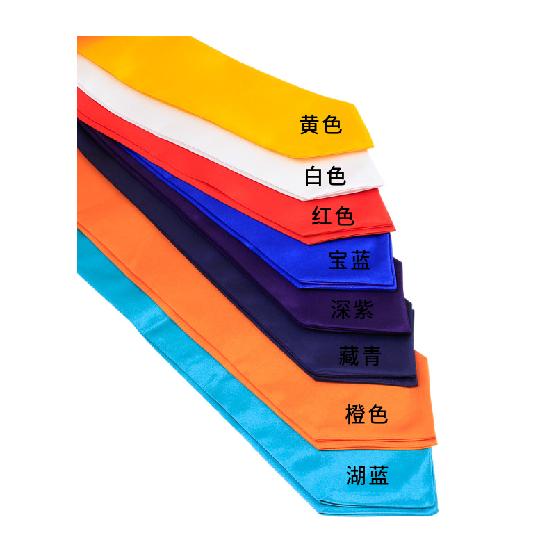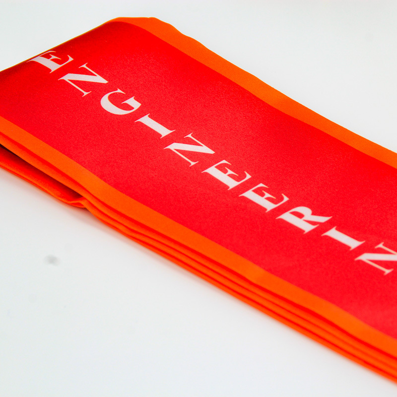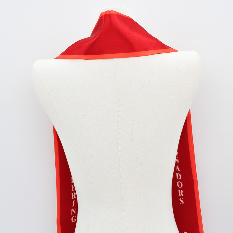 Атласный полиэстер, атласный материал, заостренная V-образная лента, золотая окантовка, печать логотипа, выпускные палантин G