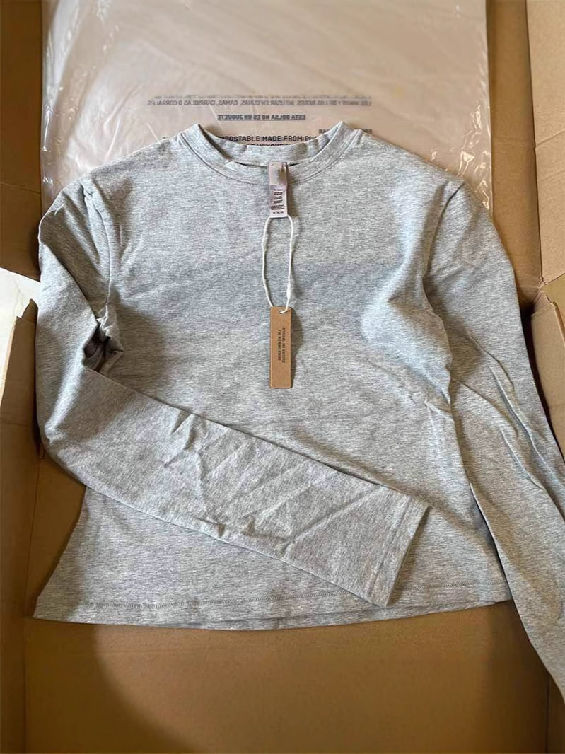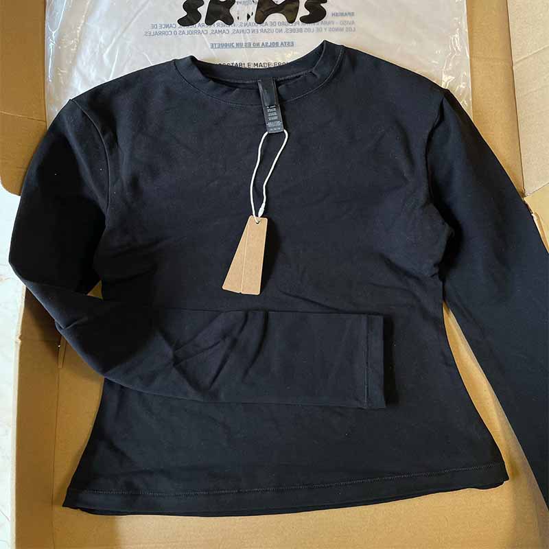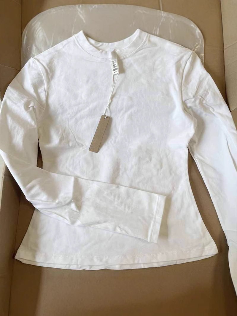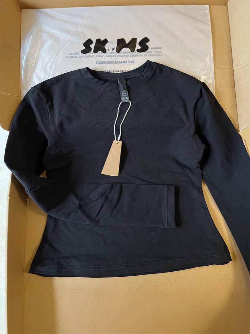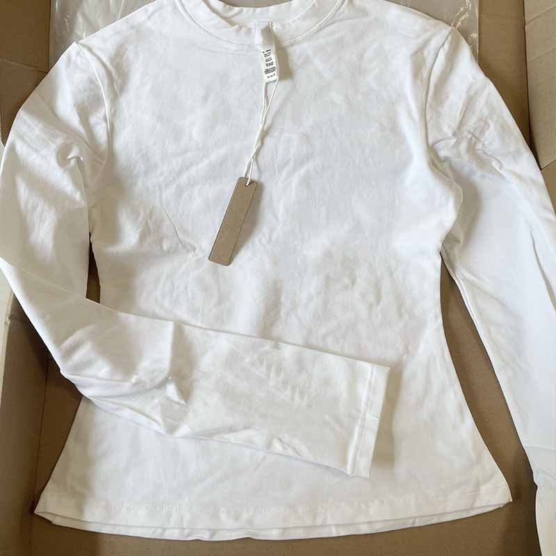 Skim Кардашьян стиль чистый цвет с круглым вырезом и длинными рукавами, тонкая женская футболка на правое плечо, тонкая эластичная футболка с длинными рукавами