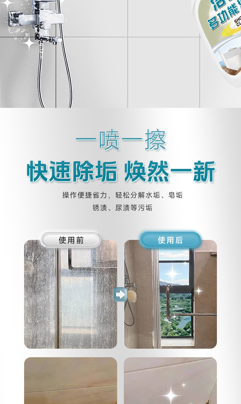 Очиститель для ванной комнаты для удаления накипи Очистка душевой кран