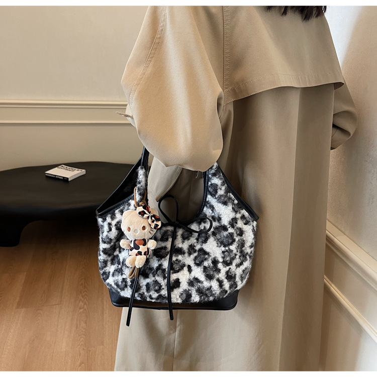 Корейская версия ретро плюшевая сумка с леопардовым принтом Tott новая сумка с бантом большой емкости