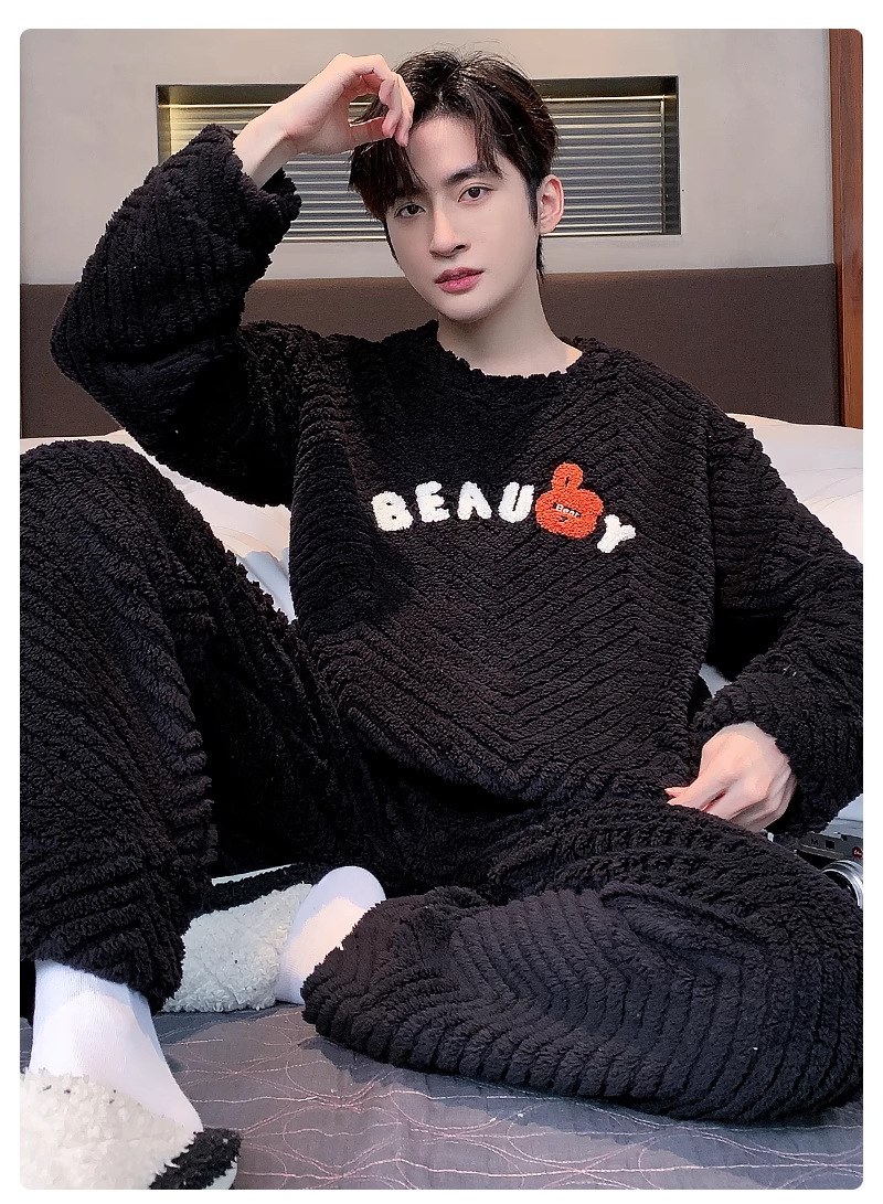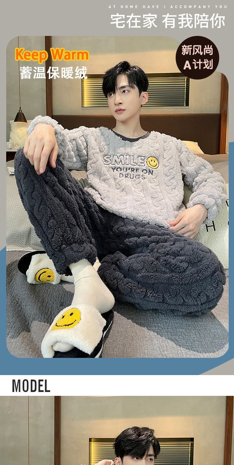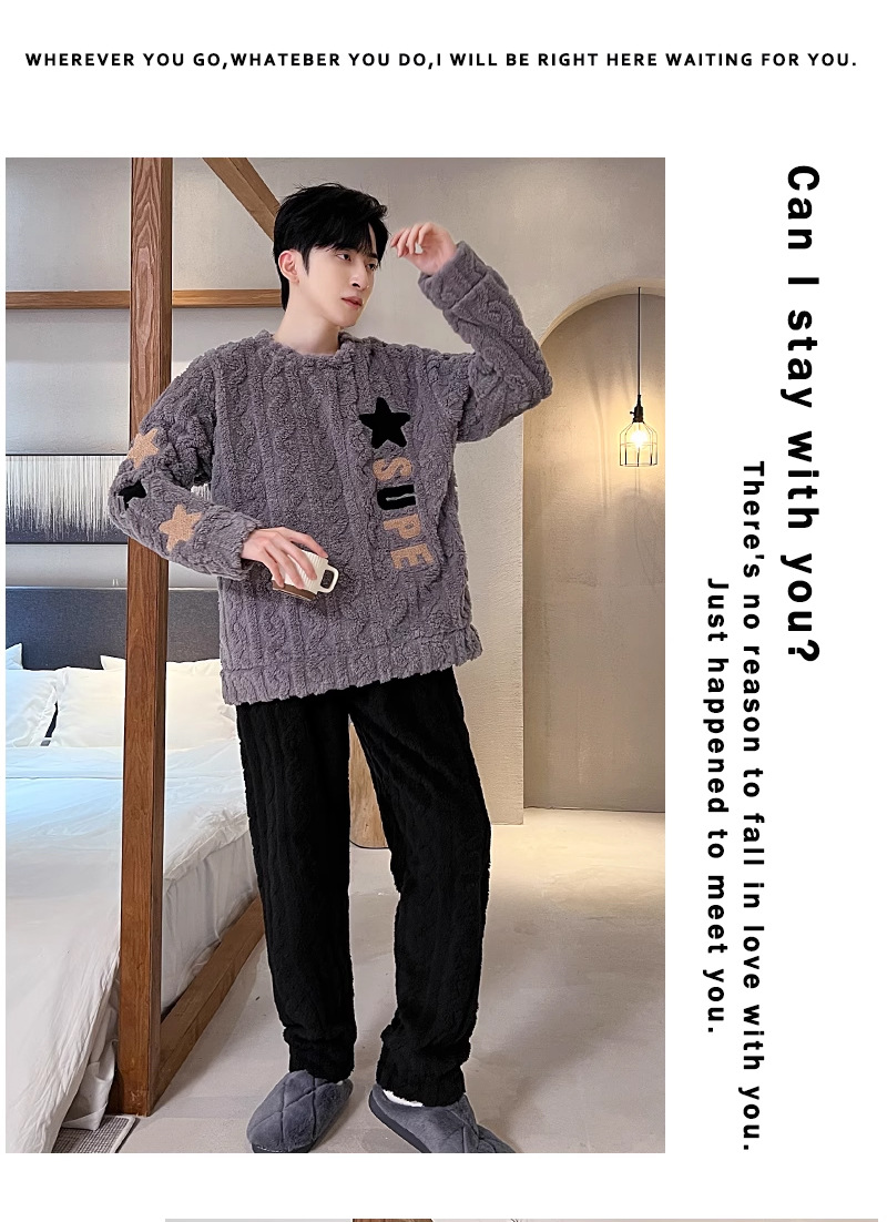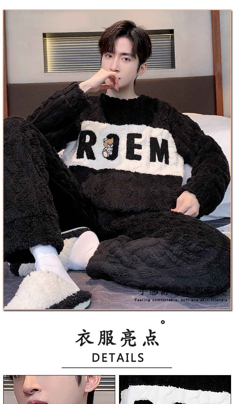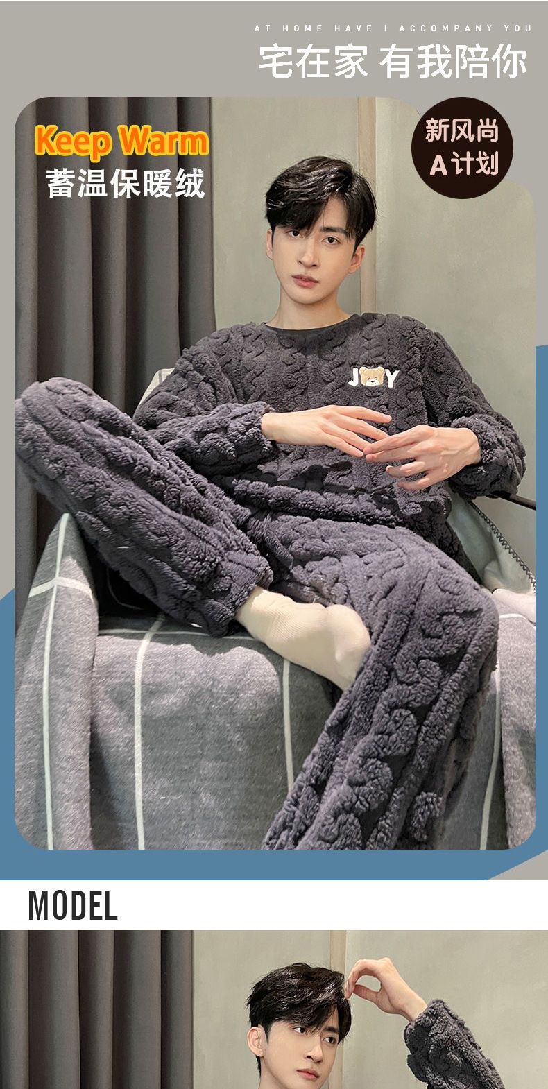 Новый коралловый бархатный пижама для мужчин осенний и зимний утолщение набор фланелевый мужской зимний домашний костюм большой размер