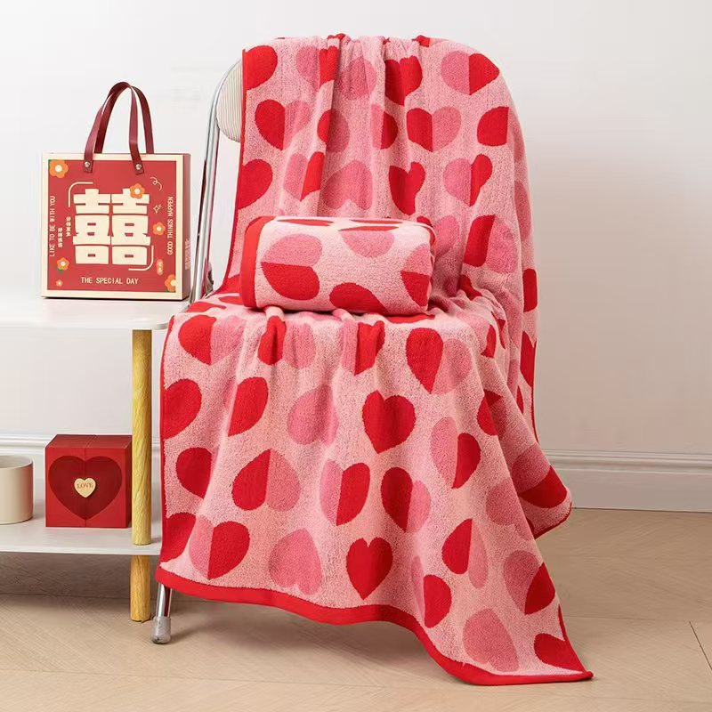 Свадебное банное полотенце, свадебный подарок на свадьбу, красный символ двойного счастья, свадебный подарок невесты, свадебный сувенир, хлопковое свадебное банное полотенце.