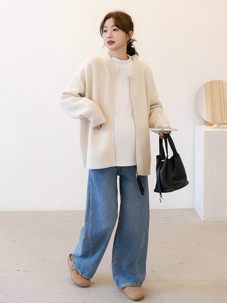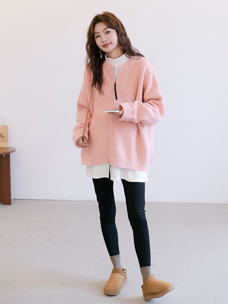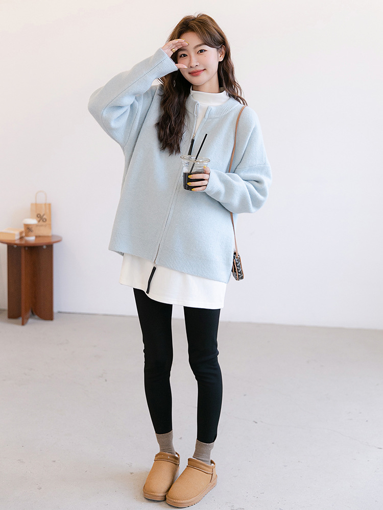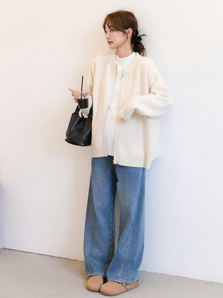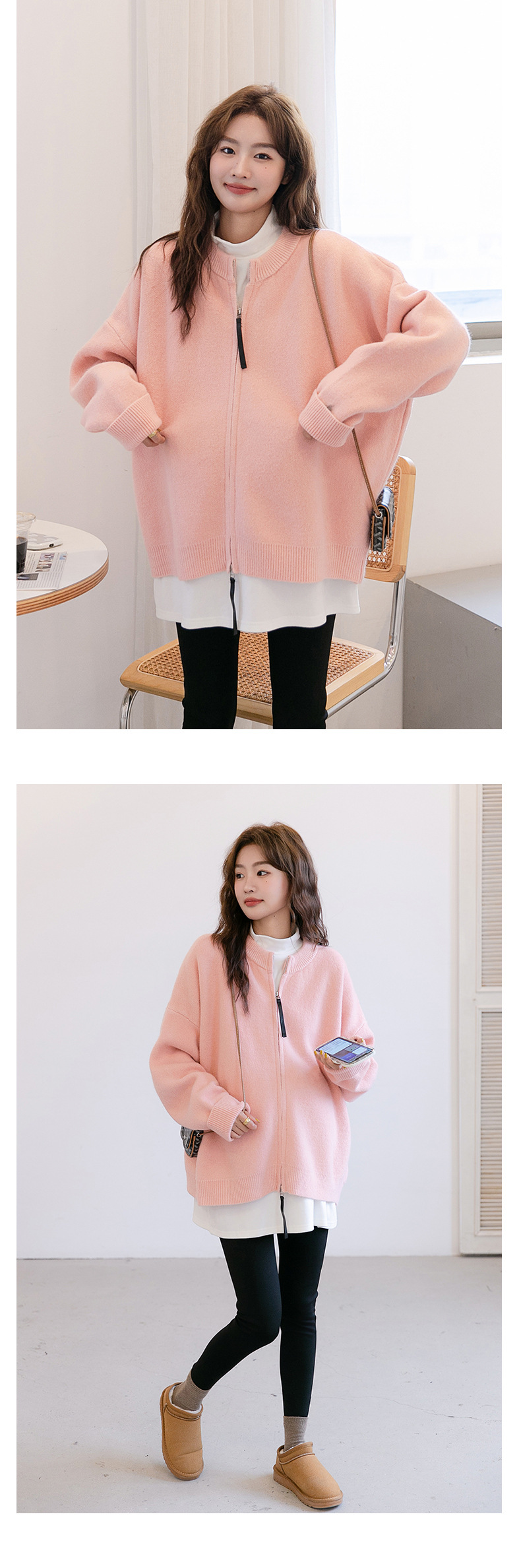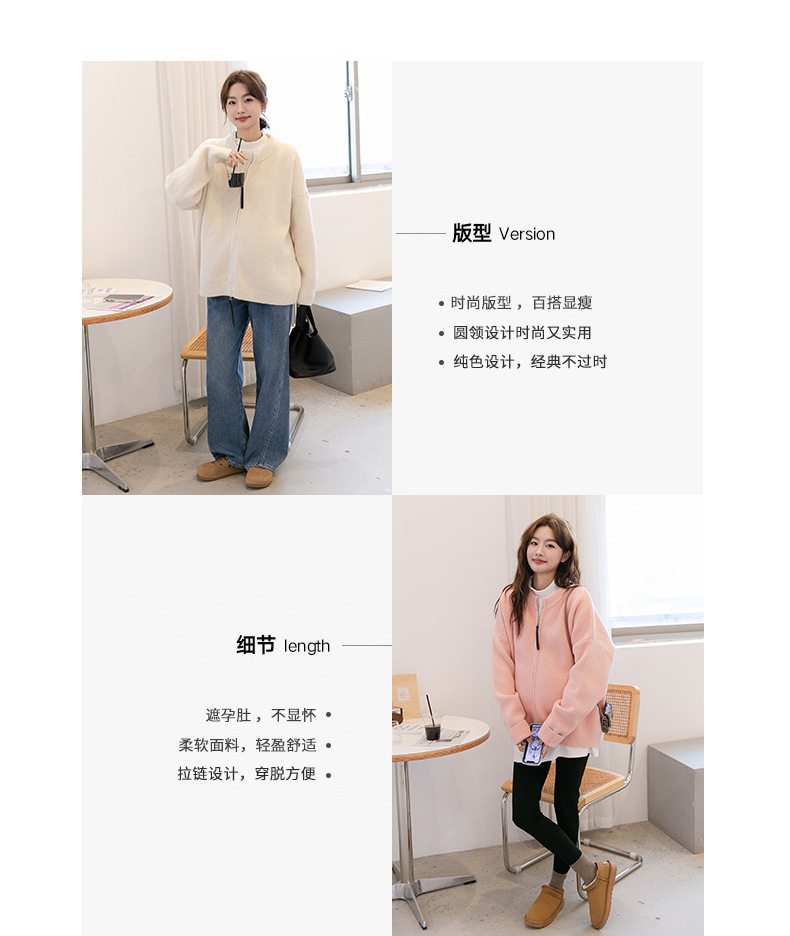 Осенняя и зимняя одежда для беременных корейская версия свитера на молнии кардиган куртка с круглым вырезом свободный большой размер повседневный вязаный свитер для беременных