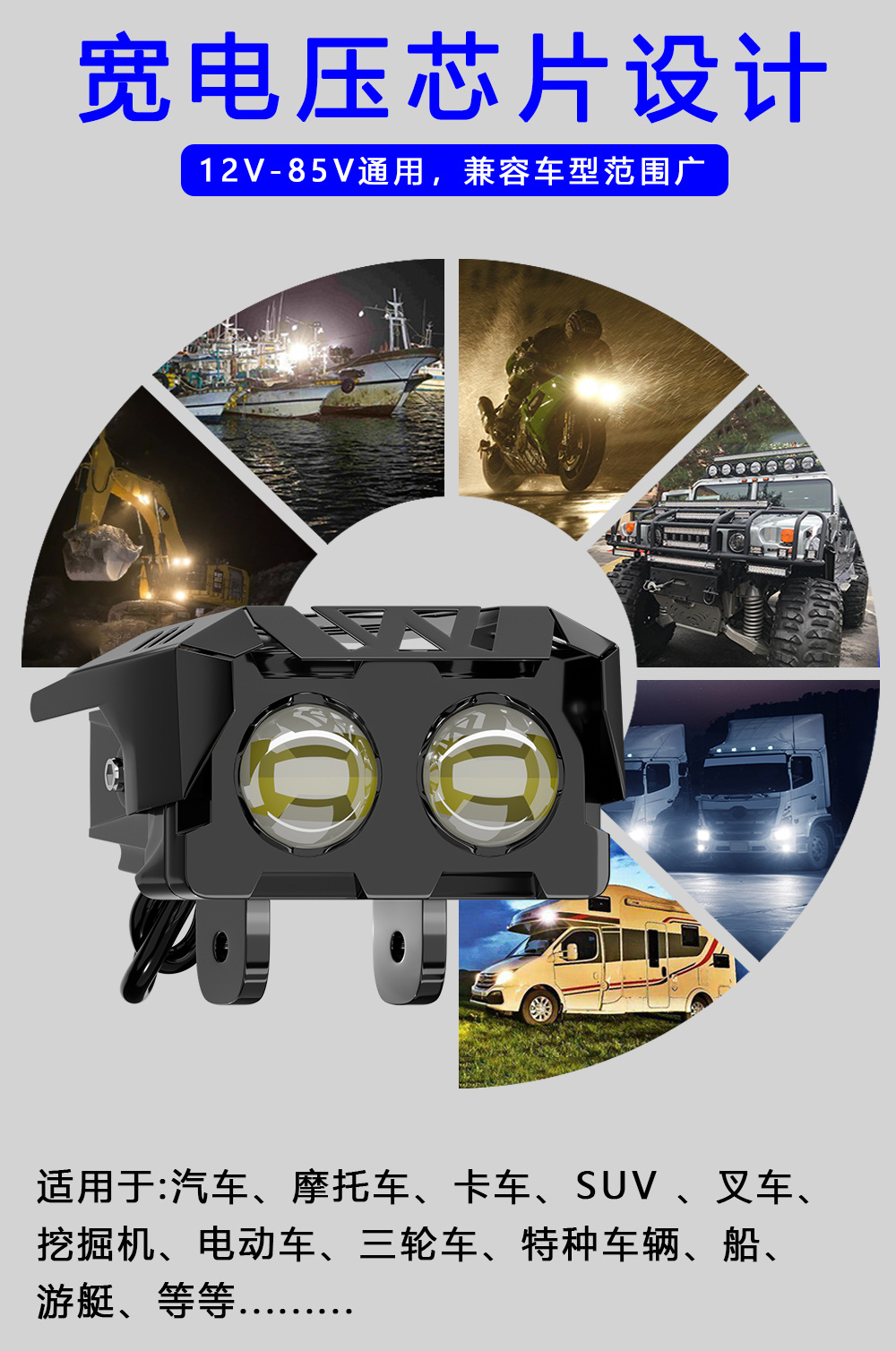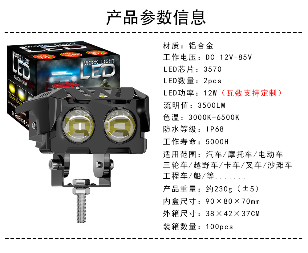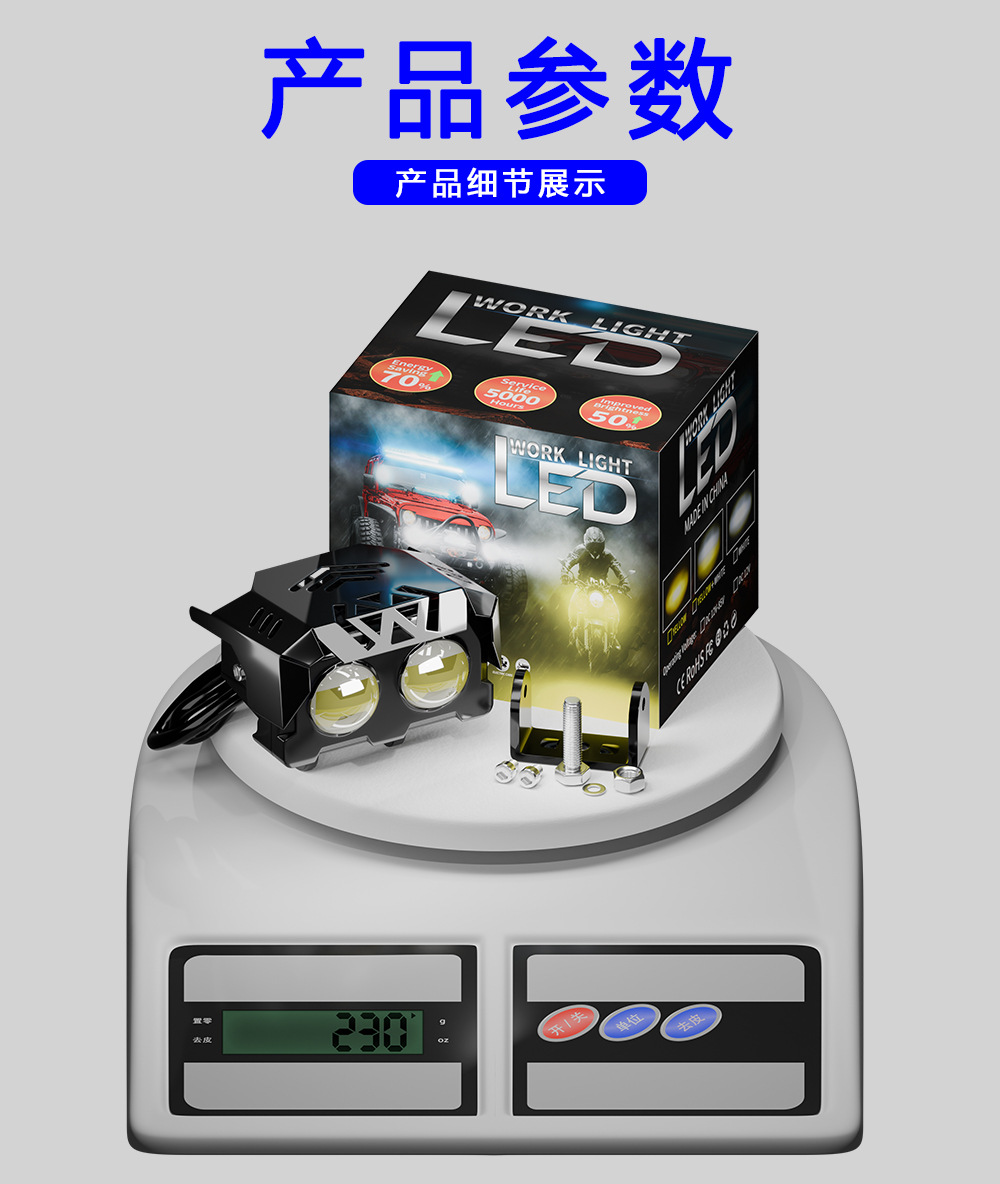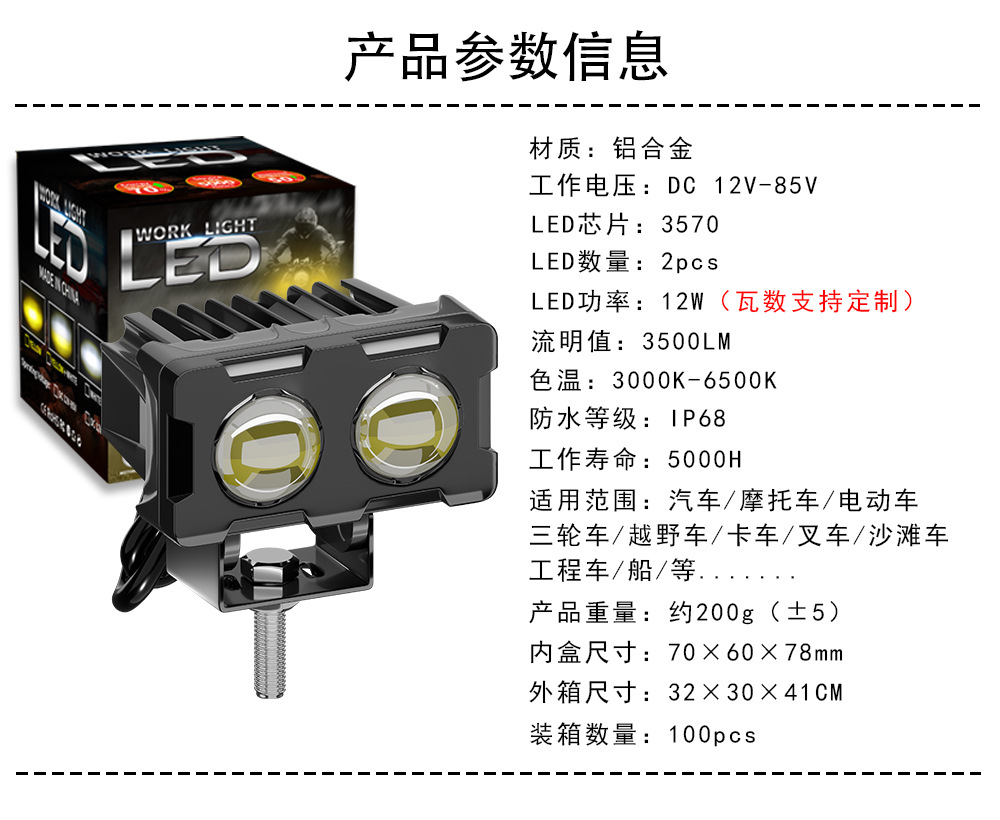 Трансграничные горячие продажи мотоциклетные фары автомобильные светодиодные рабочие фонари модифицированные внедорожные аккумуляторные трехколесные электрические фары