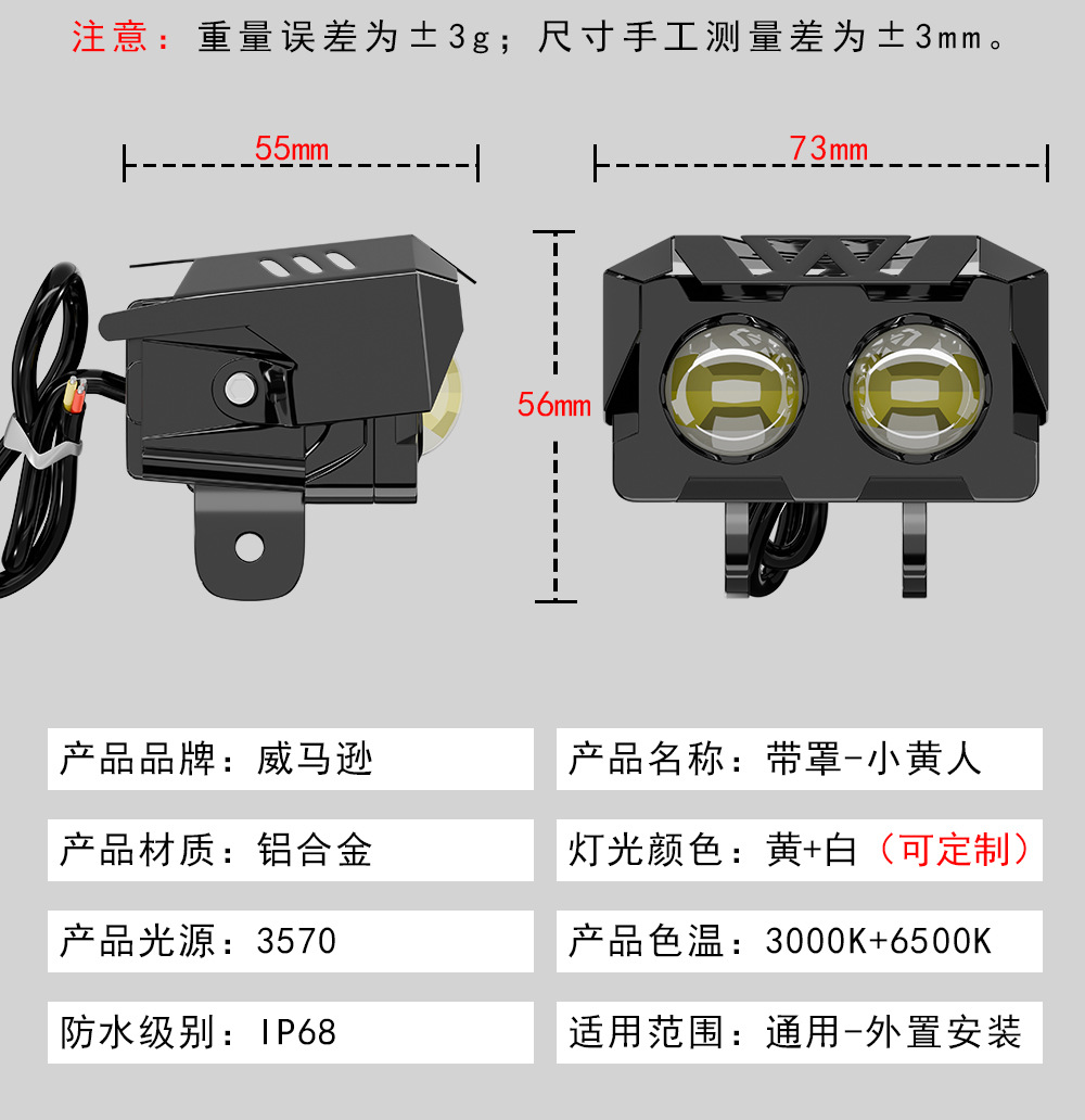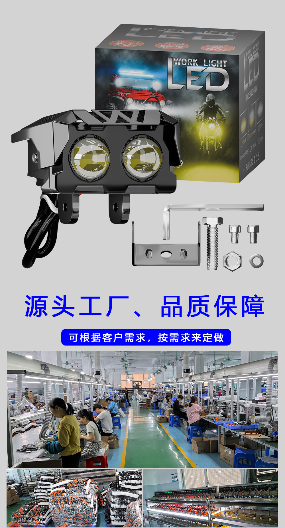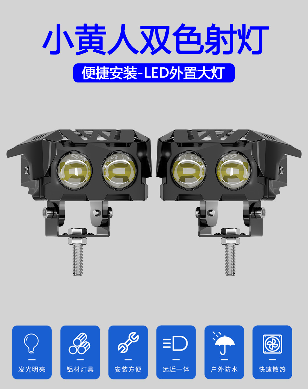 Трансграничные горячие продажи мотоциклетные фары автомобильные светодиодные рабочие фонари модифицированные внедорожные аккумуляторные трехколесные электрические фары