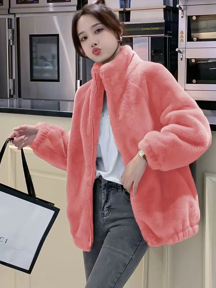 Коралловый бархатный пиджак женский прилив зимний бархат теплый высокий воротник свитер женский кардиган застежка-молния