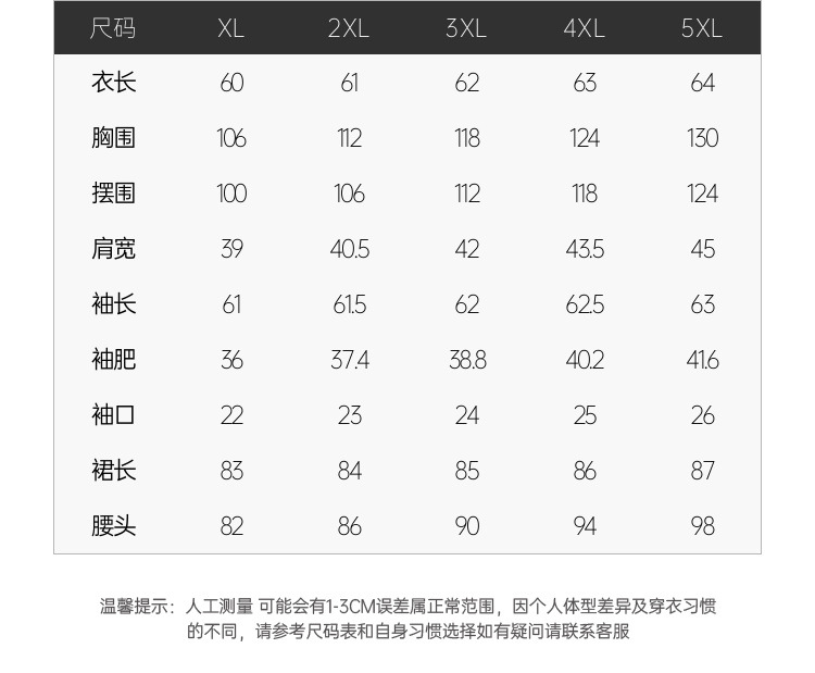XL; 2XL; 3XL; 4XL; 5XL