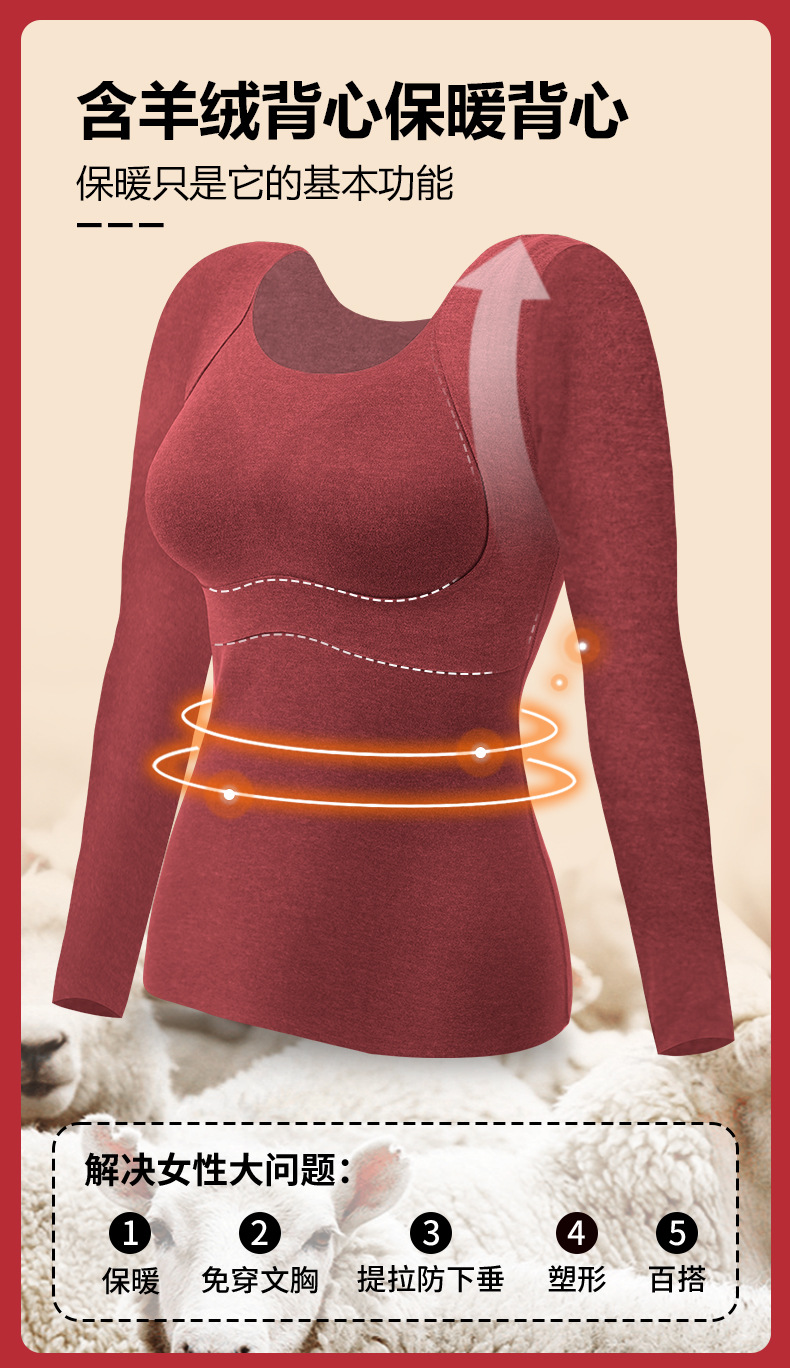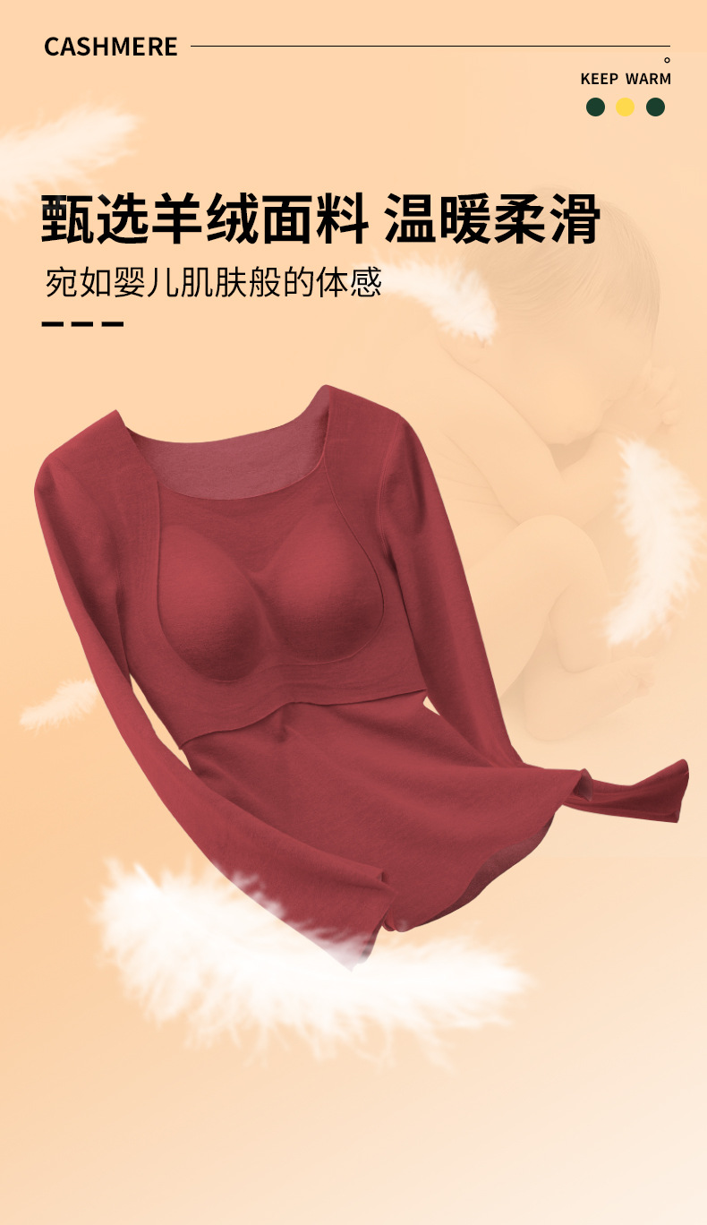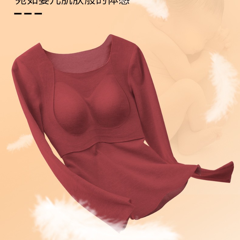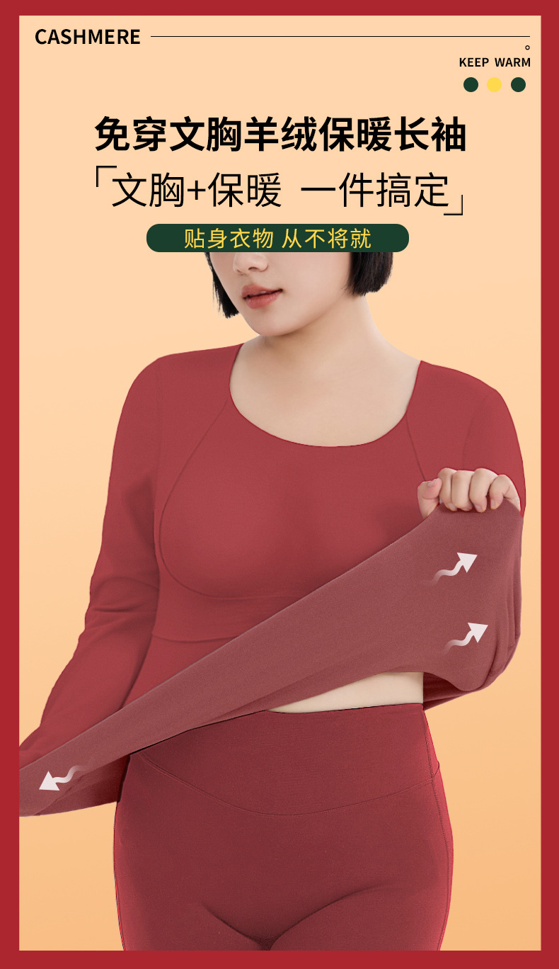 Все включено чашка нижнее белье с длинными рукавами два в одном без бюстгальтера кашемир теплый длинный рукав