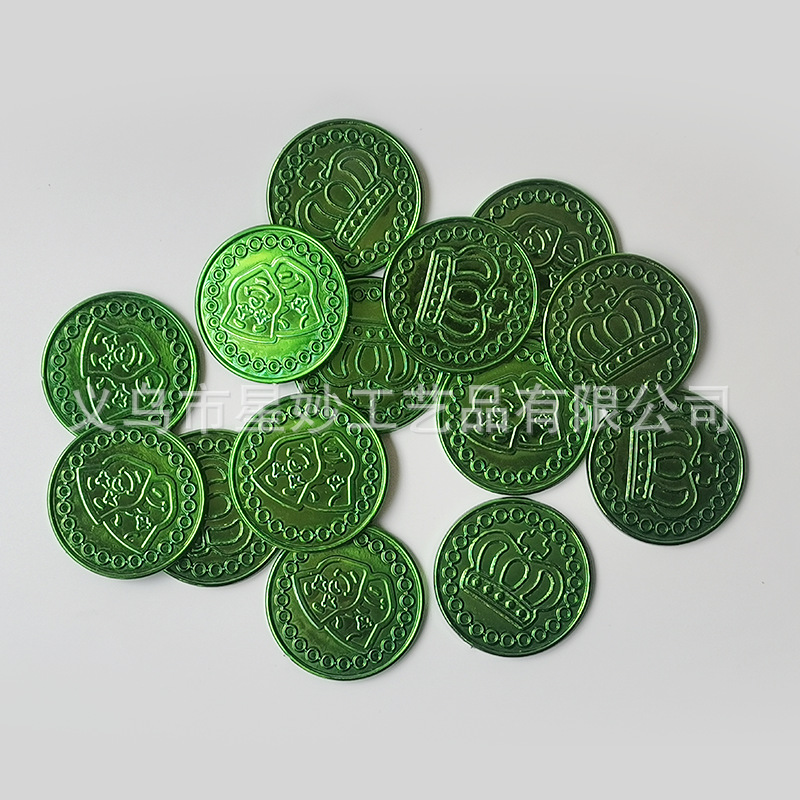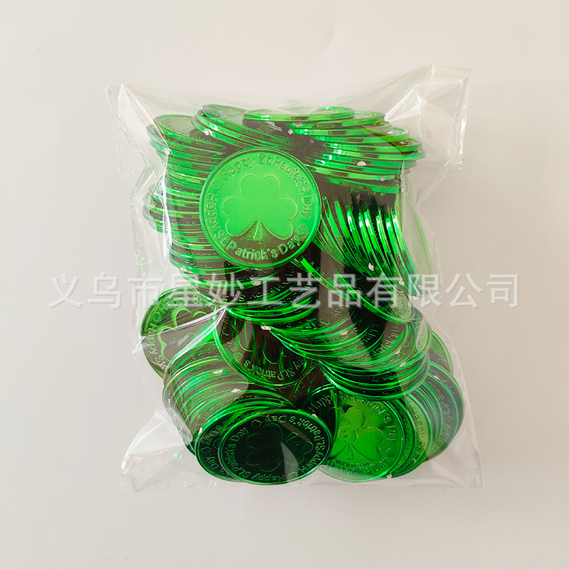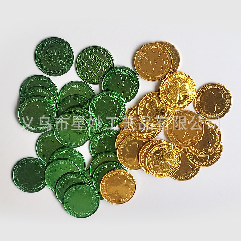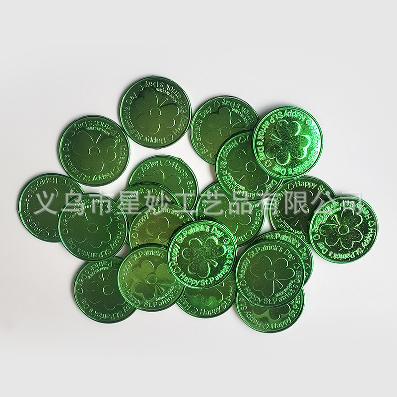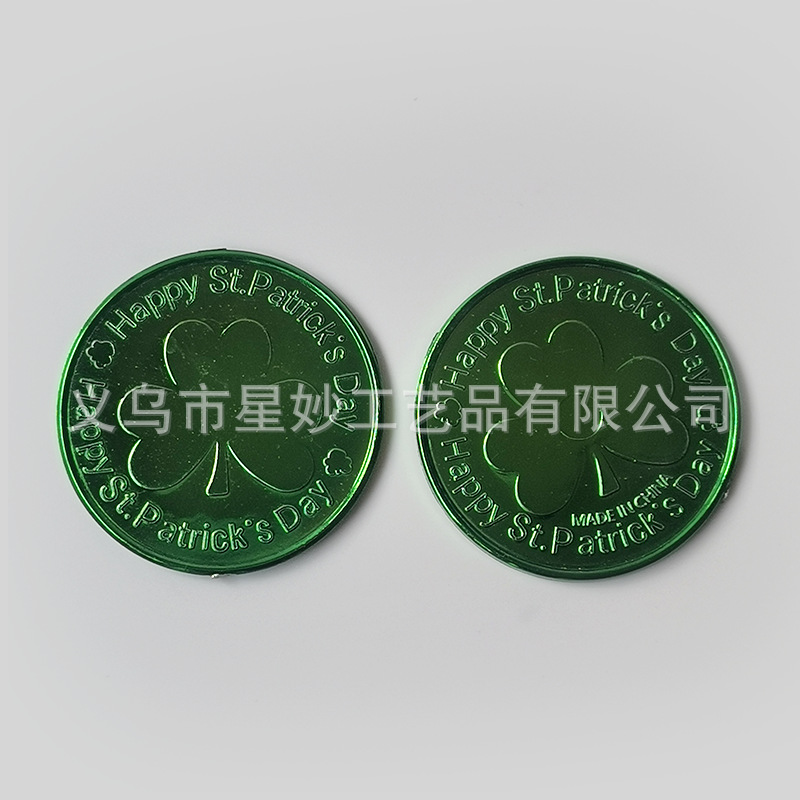 这些塑料硬币符合圣帕特里克节元素,采用绿色和金色三叶草图案设计,可以创造强烈的节日气氛。整个设计表达人们对好运和幸福的期望。