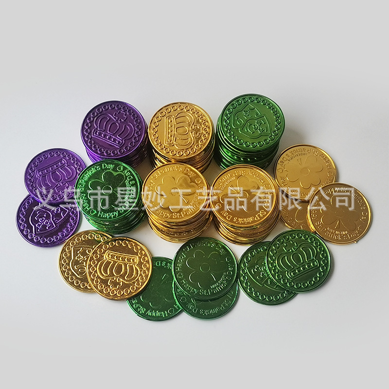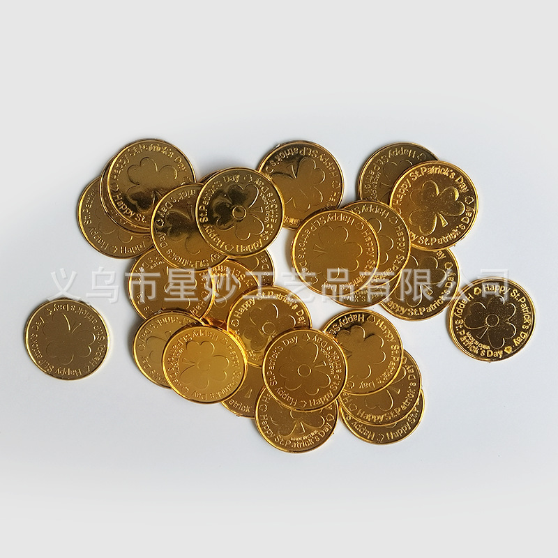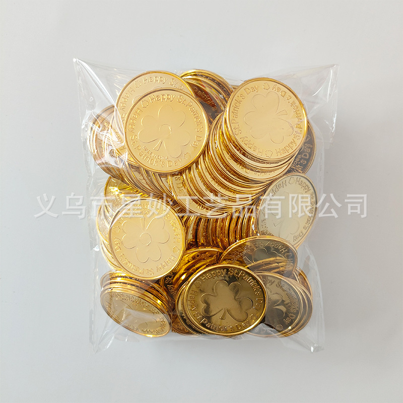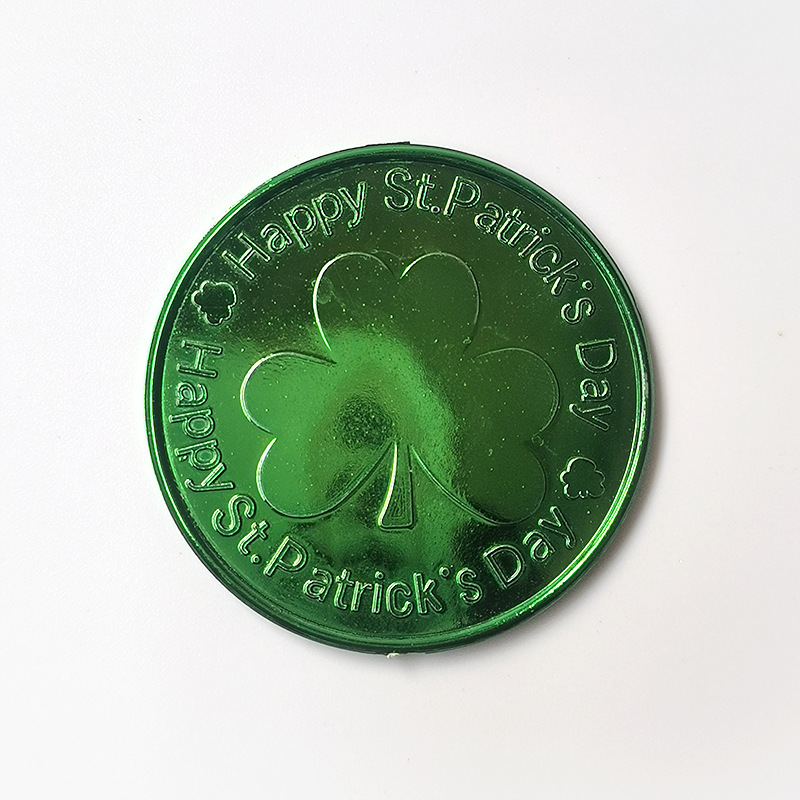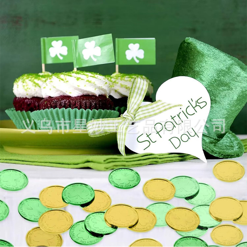 这些塑料硬币符合圣帕特里克节元素,采用绿色和金色三叶草图案设计,可以创造强烈的节日气氛。整个设计表达人们对好运和幸福的期望。