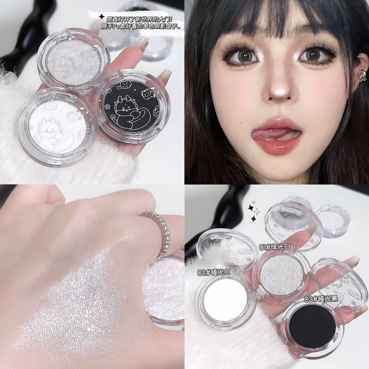 перламутровый белый; матовый белый; матовый черный; Одноцветные тени для век MUGELEEN 03#