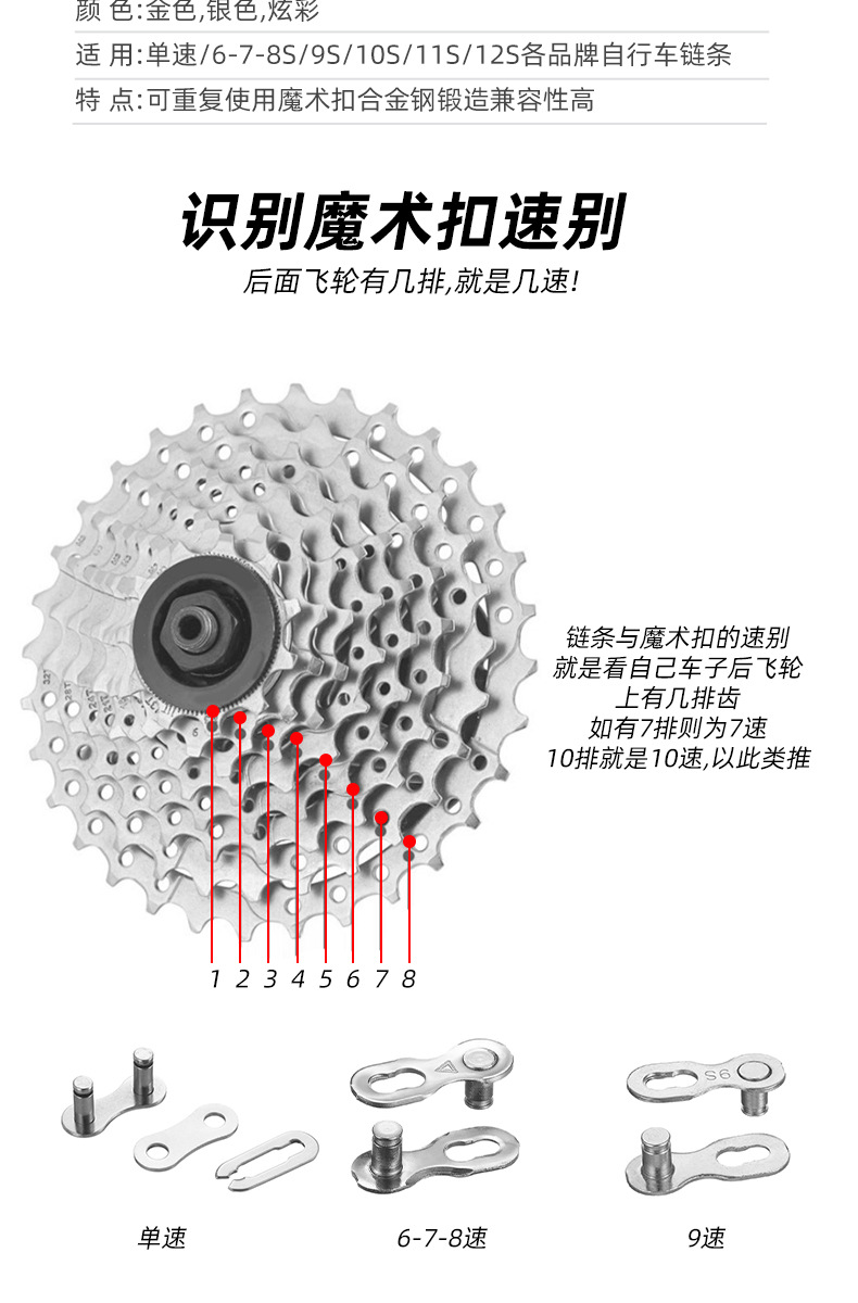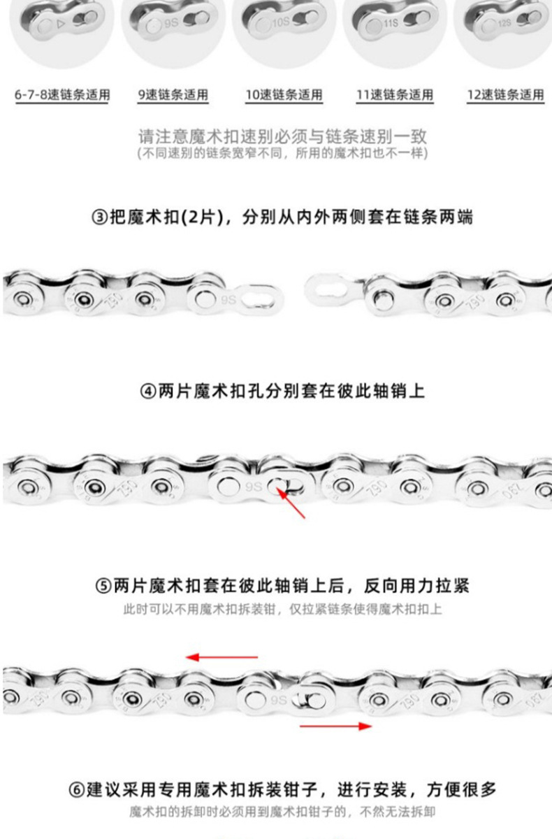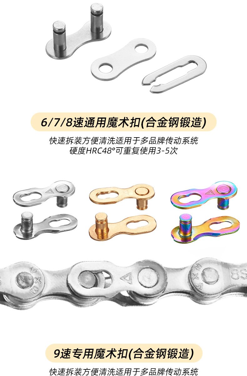 Велосипед Волшебная пряжка Цепь с переменной скоростью Золотой разъем 7/8 9 10 11 Быстрая пряжка 12 Цепная пряжка
