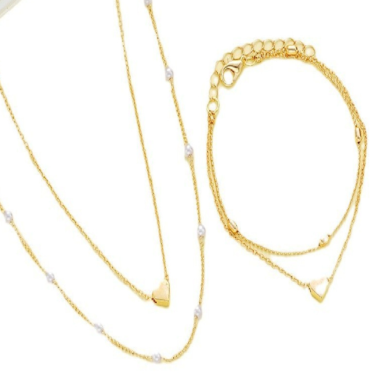 Европейские и американские трансграничные горячие продажи моды дикие двухслойные мешки с круглыми бусинами любви жемчужный браслет ожерелье ювелирный набор оптом