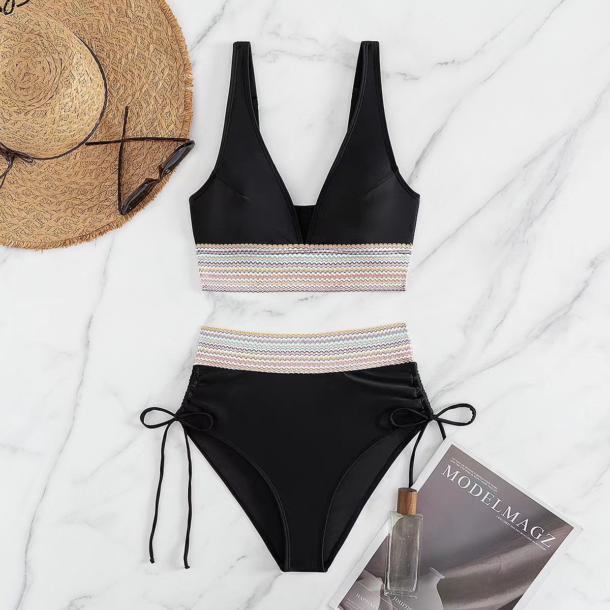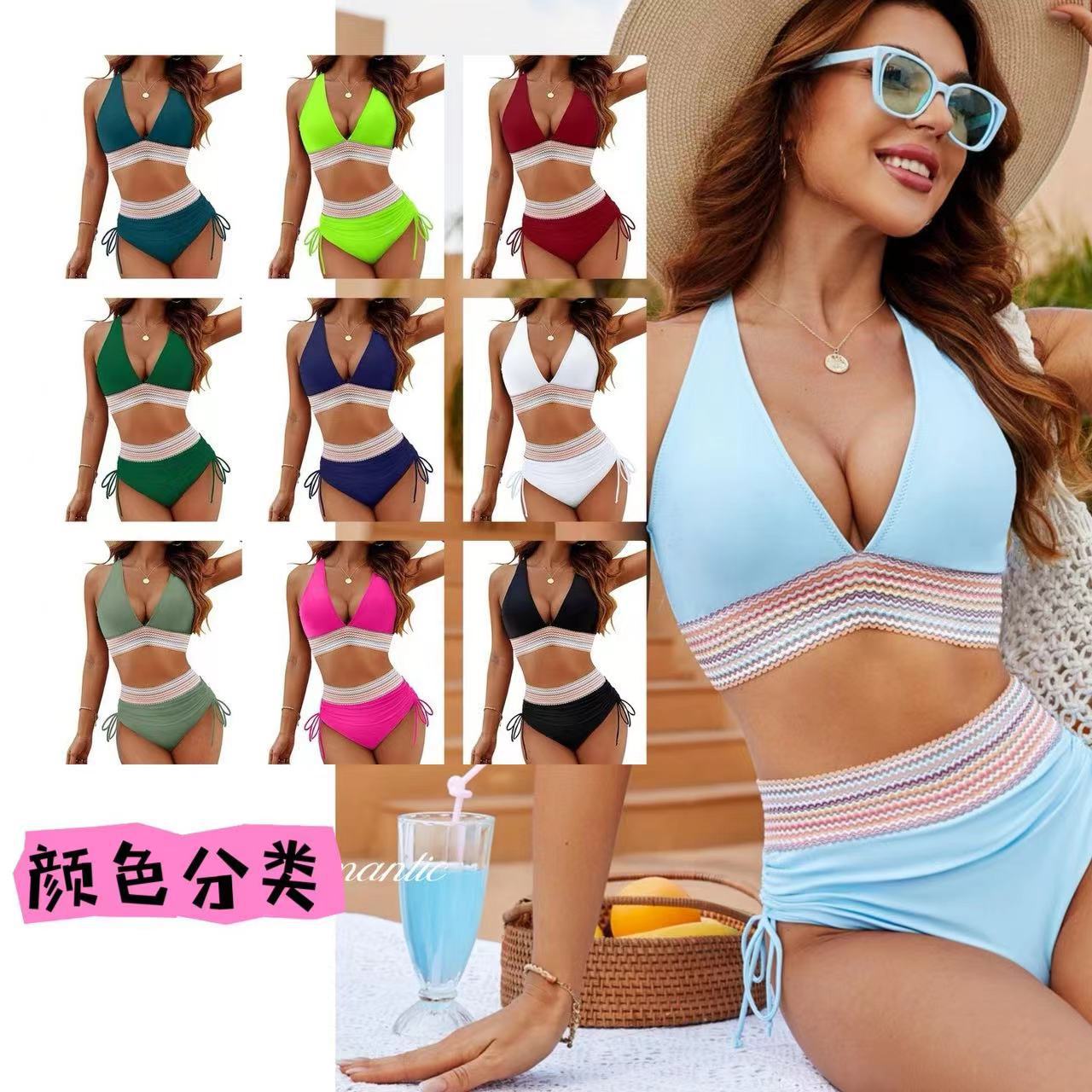 Европейский и американский трансграничный купальник для женщин Сексуальное бикини с высокой талией обтягивая Amazon Разрывный купальник