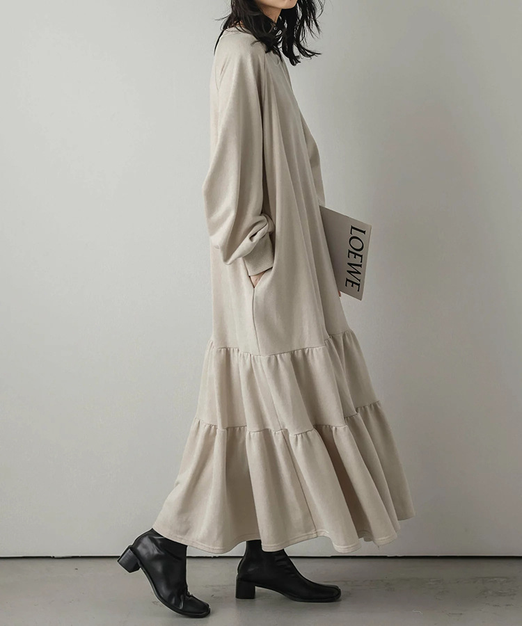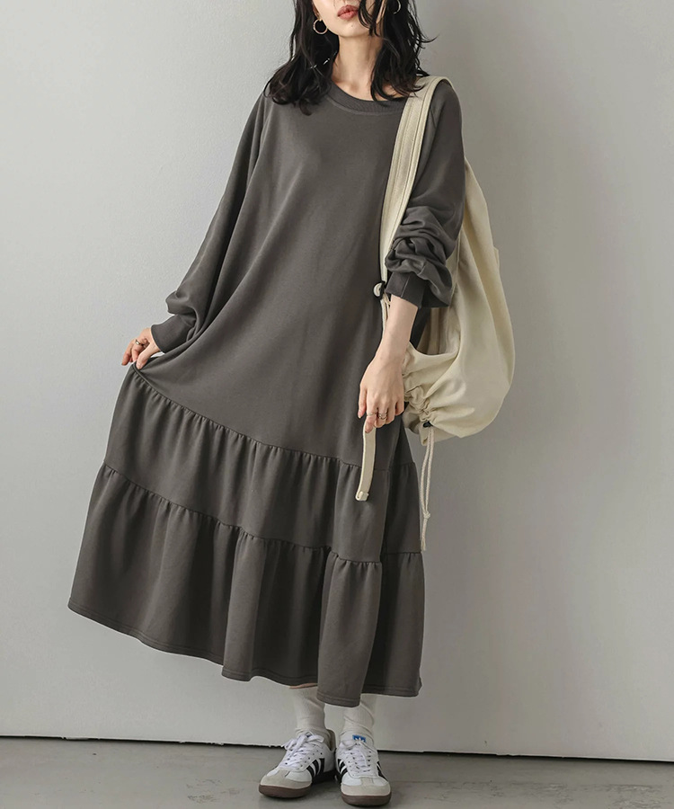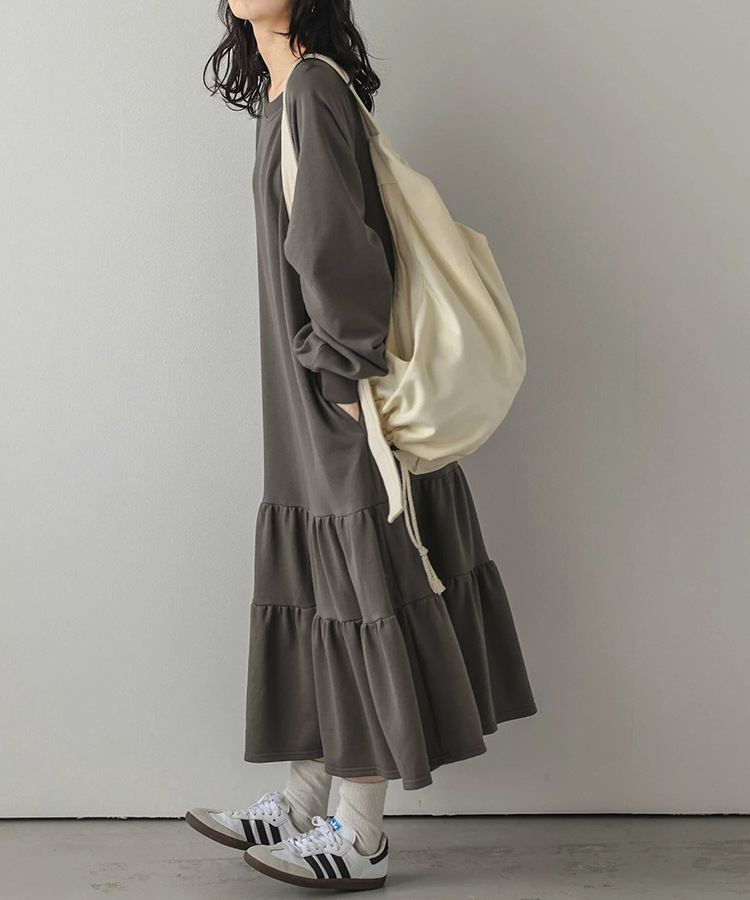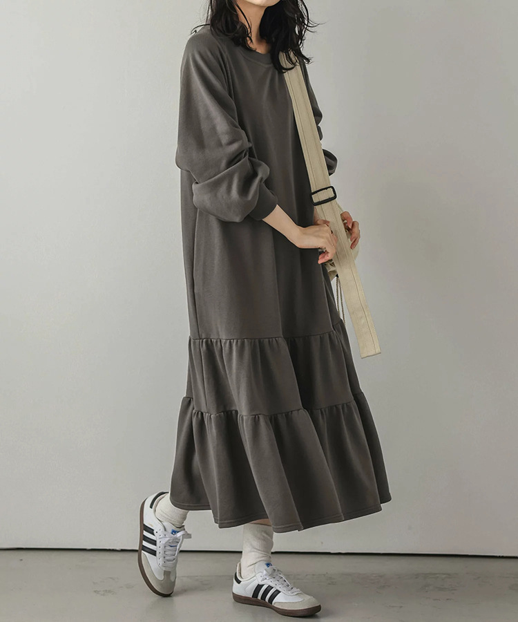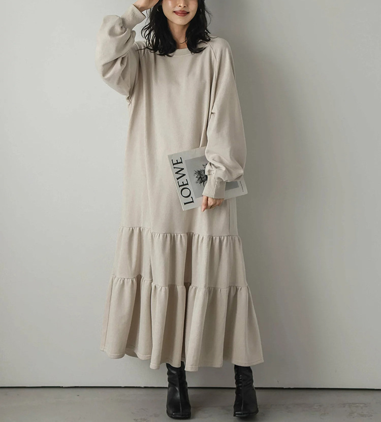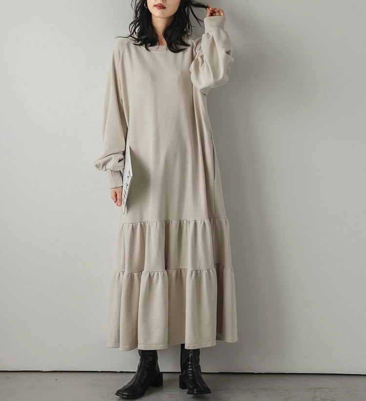 Японский нишевые дизайн свободная средняя длинная сшитая юбка с рюшами свитерская платье с длинными рукавами и длинными коленями