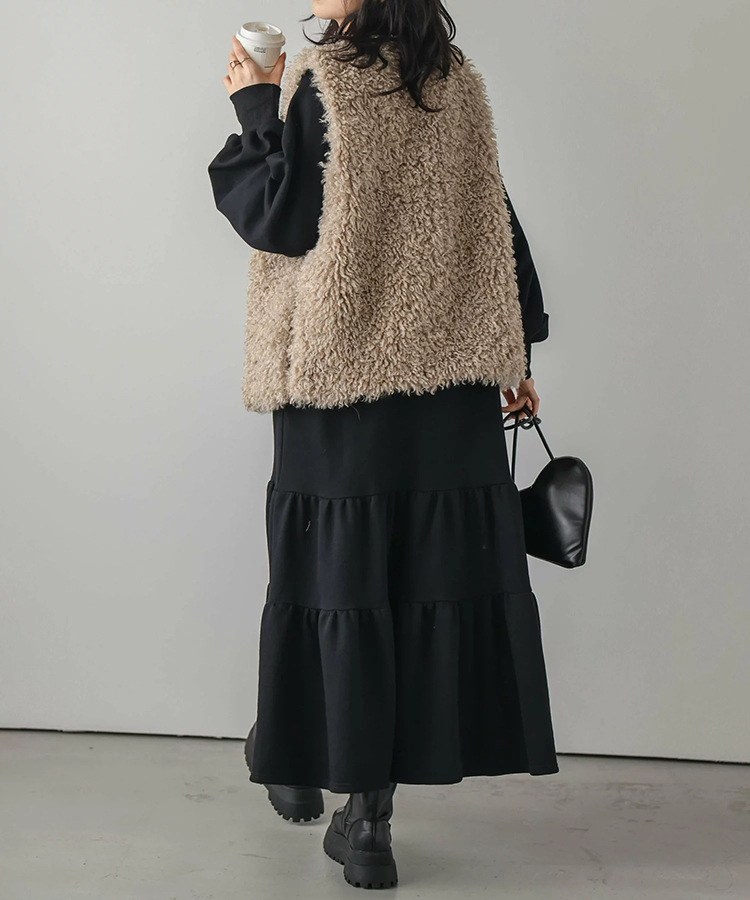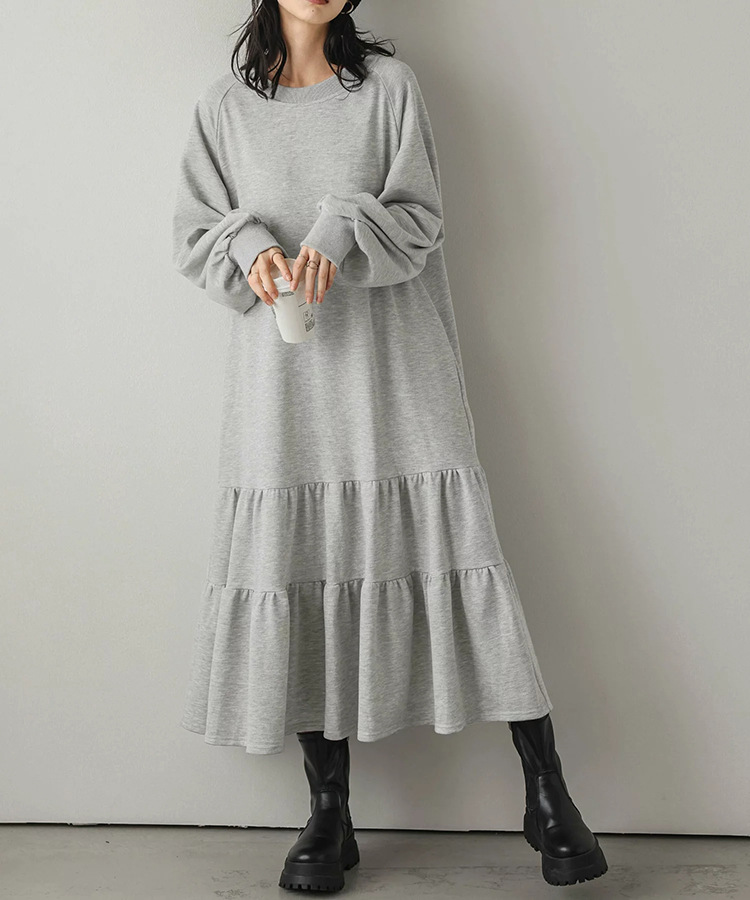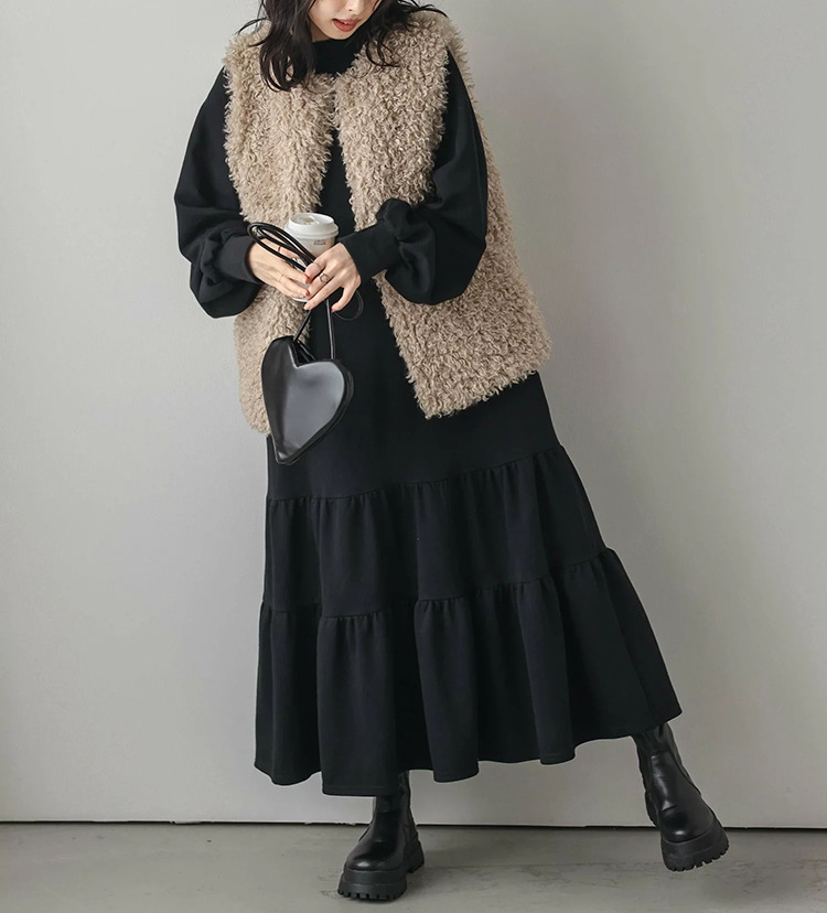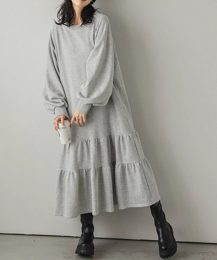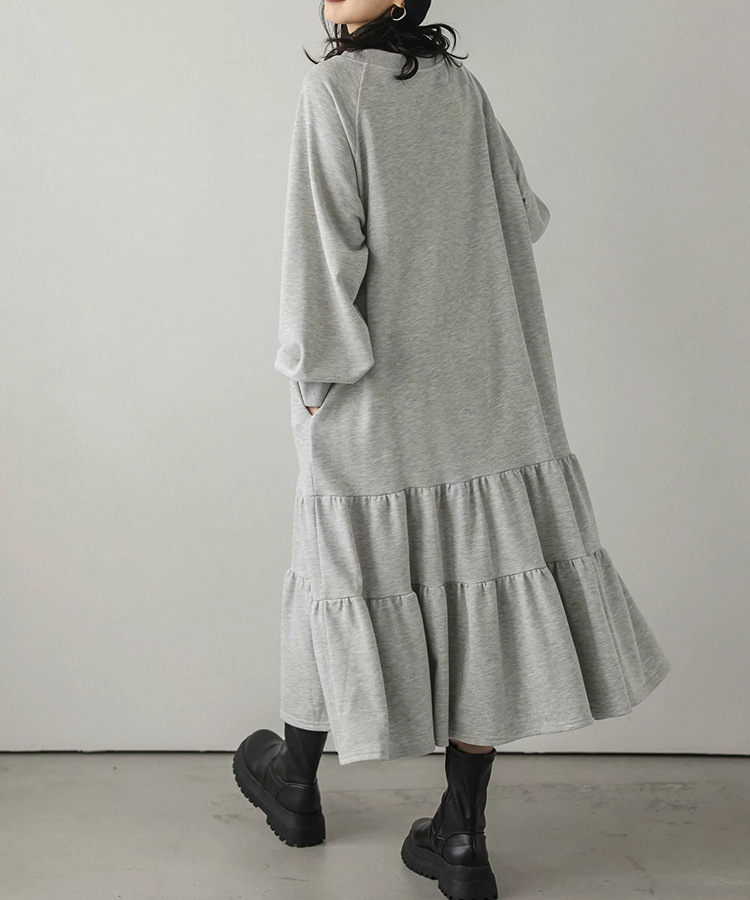 Японский нишевые дизайн свободная средняя длинная сшитая юбка с рюшами свитерская платье с длинными рукавами и длинными коленями