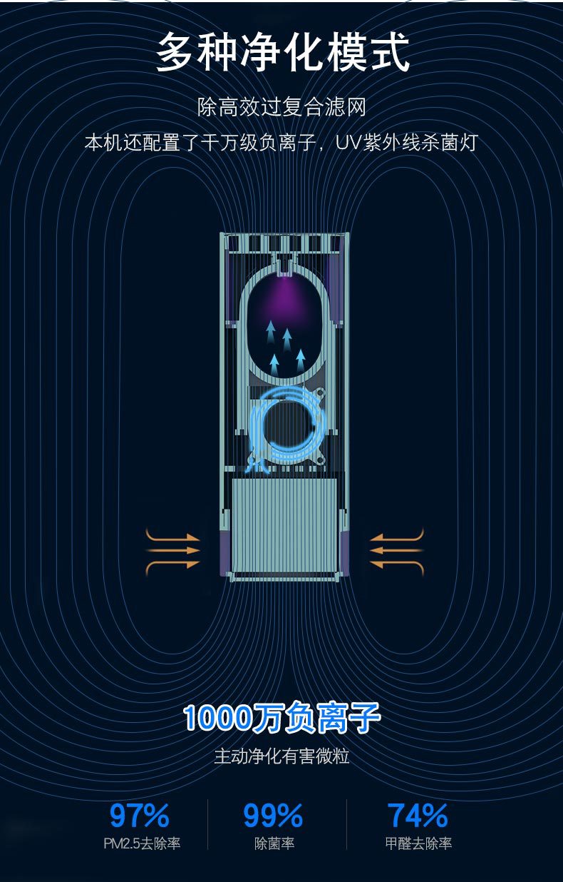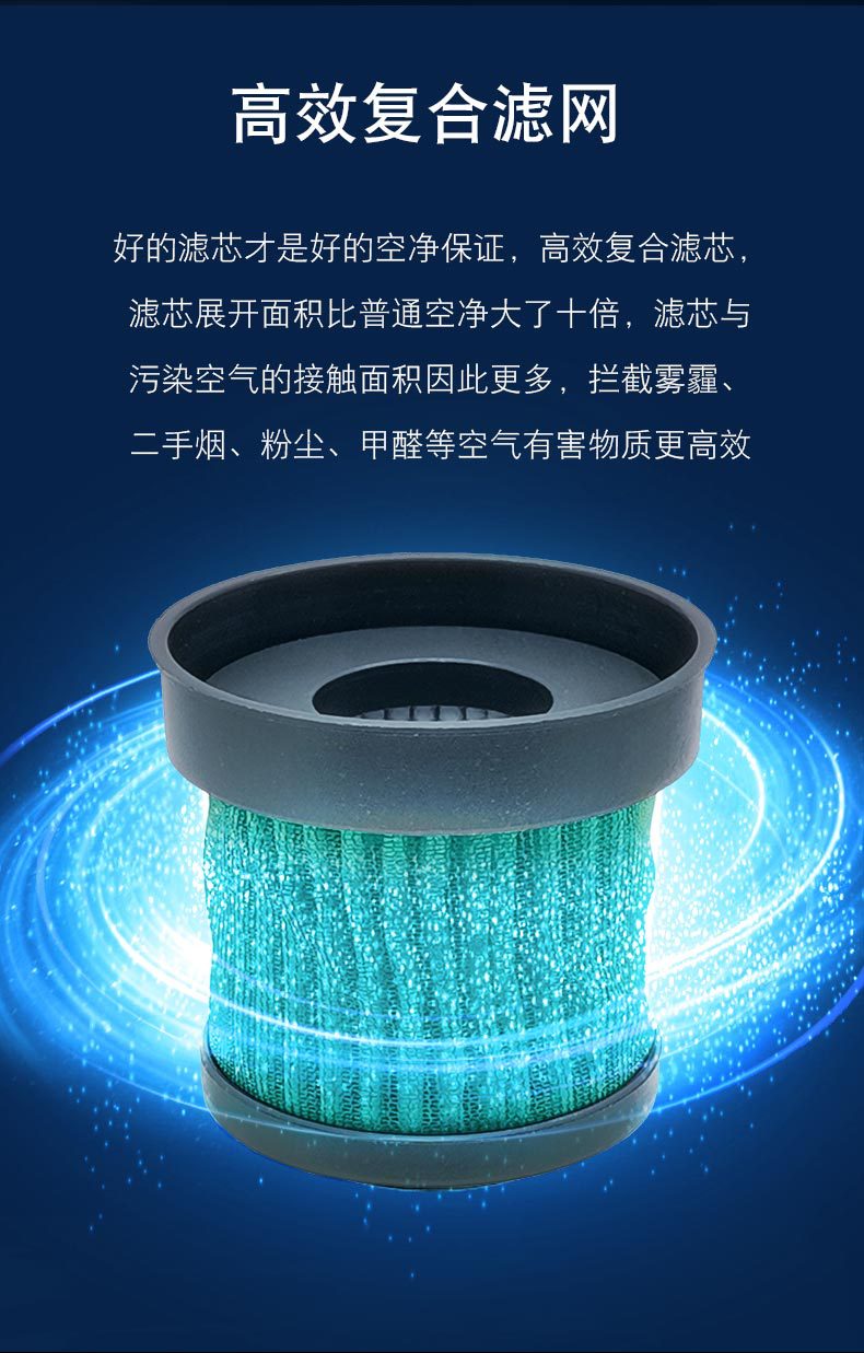 ▲高效去高效去除PM2.5、异味、二手烟、甲醛、TVOC和细菌;